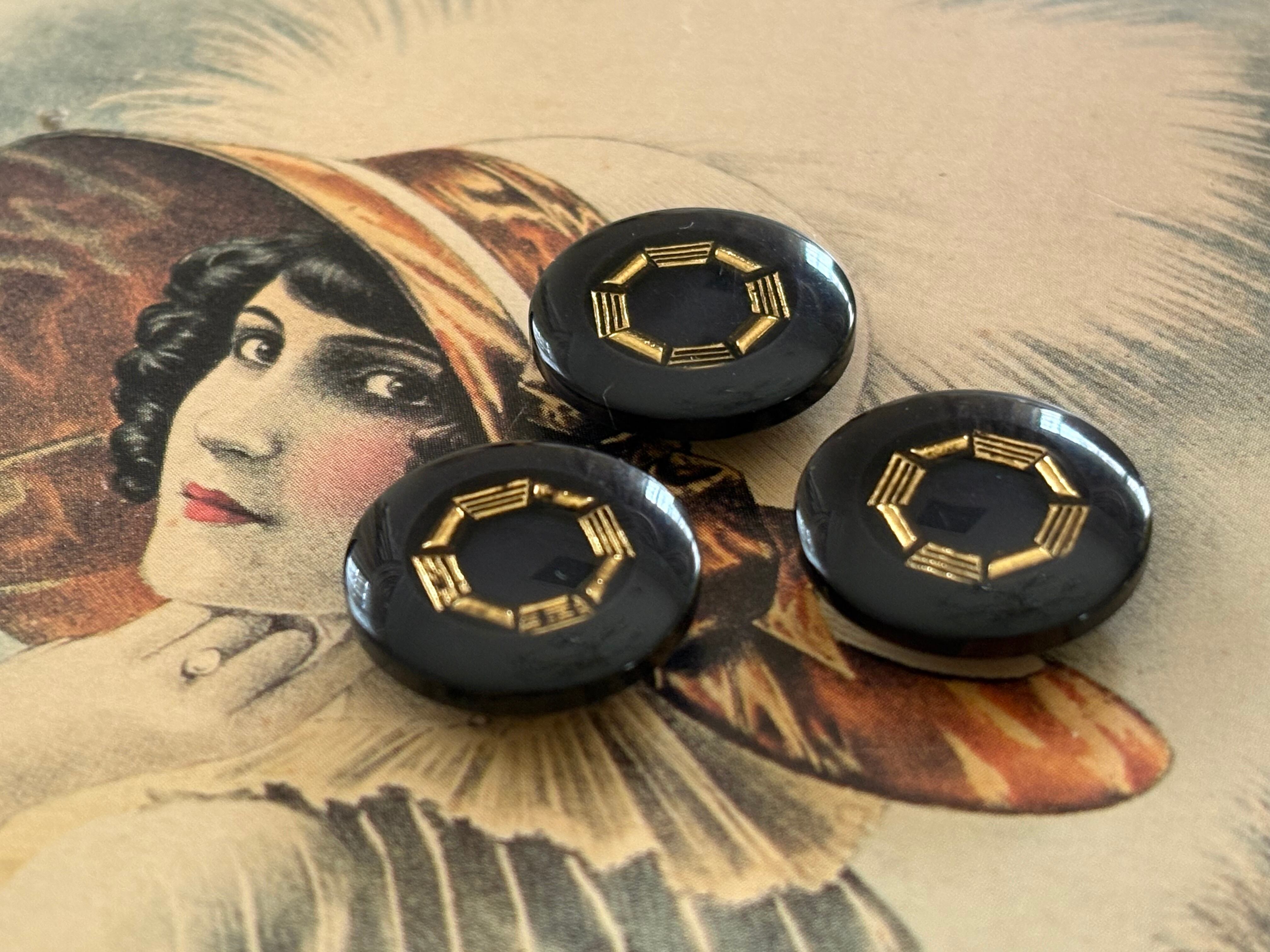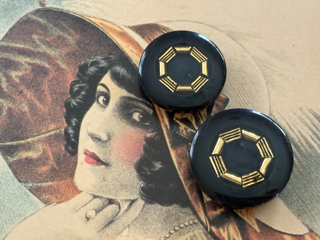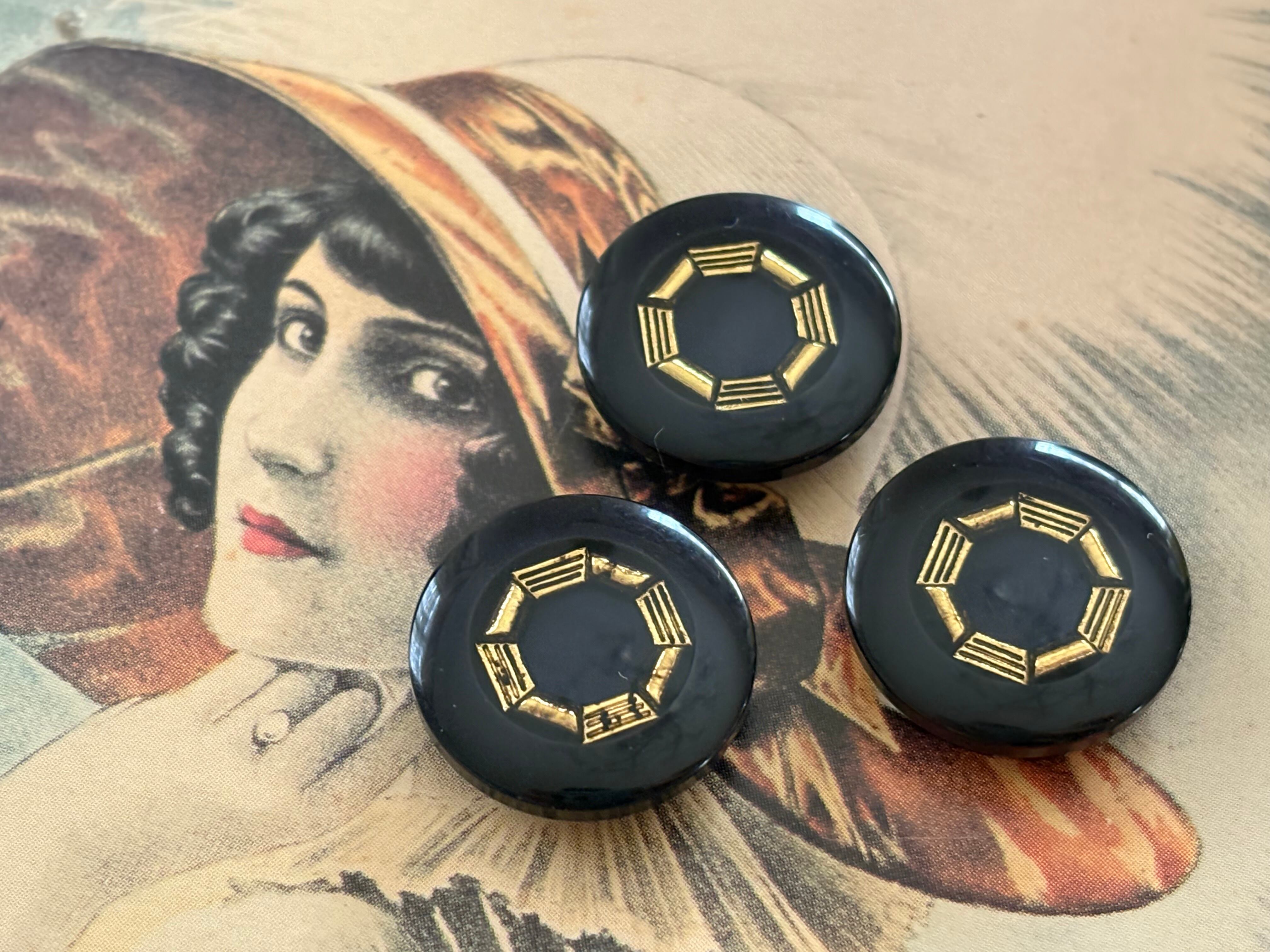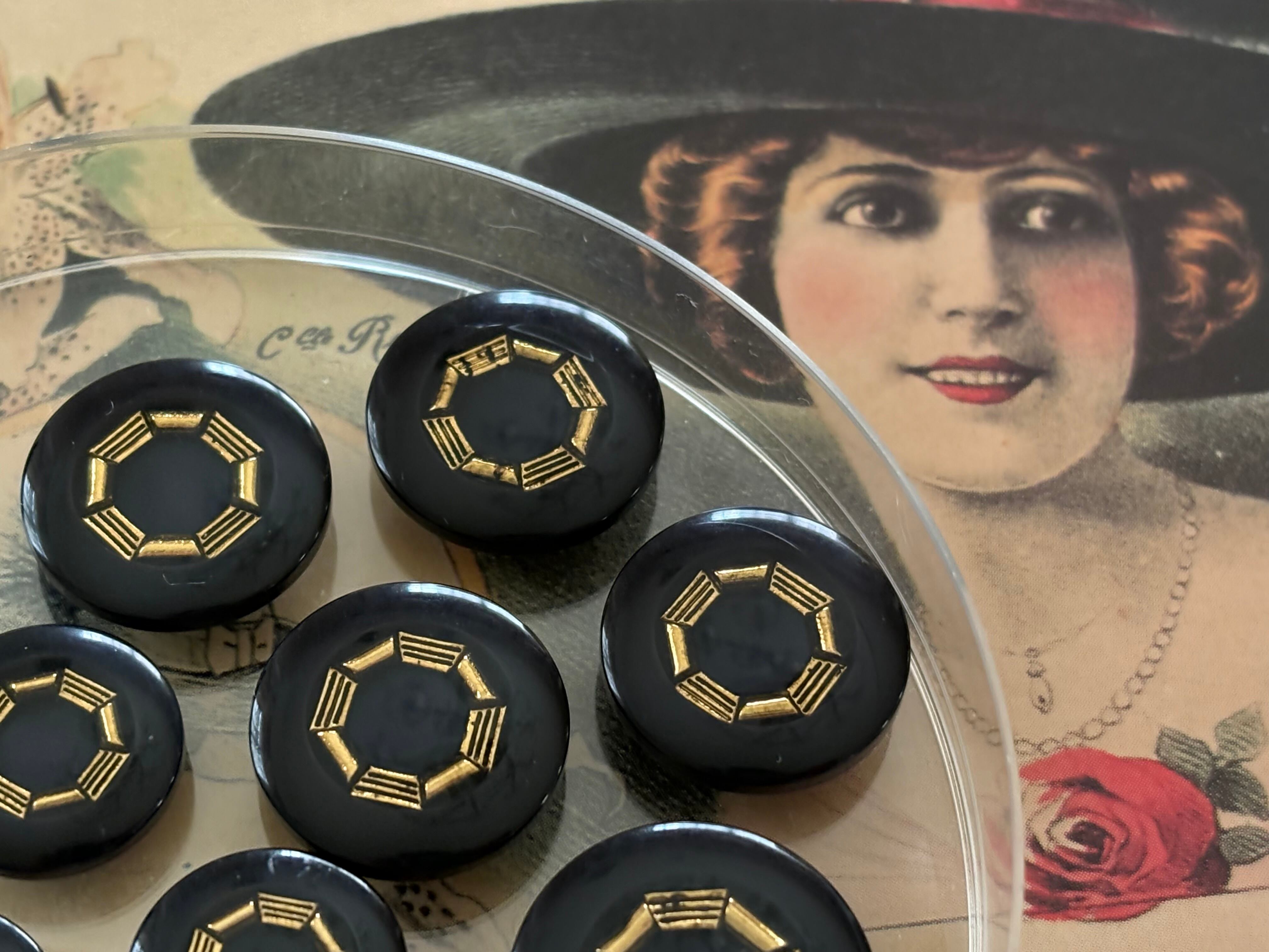 Japanese Vintage ボタン 17mm ブラック×ゴールド 昭和レトロ アクセサリーパーツ 装飾材 カルトナージュ