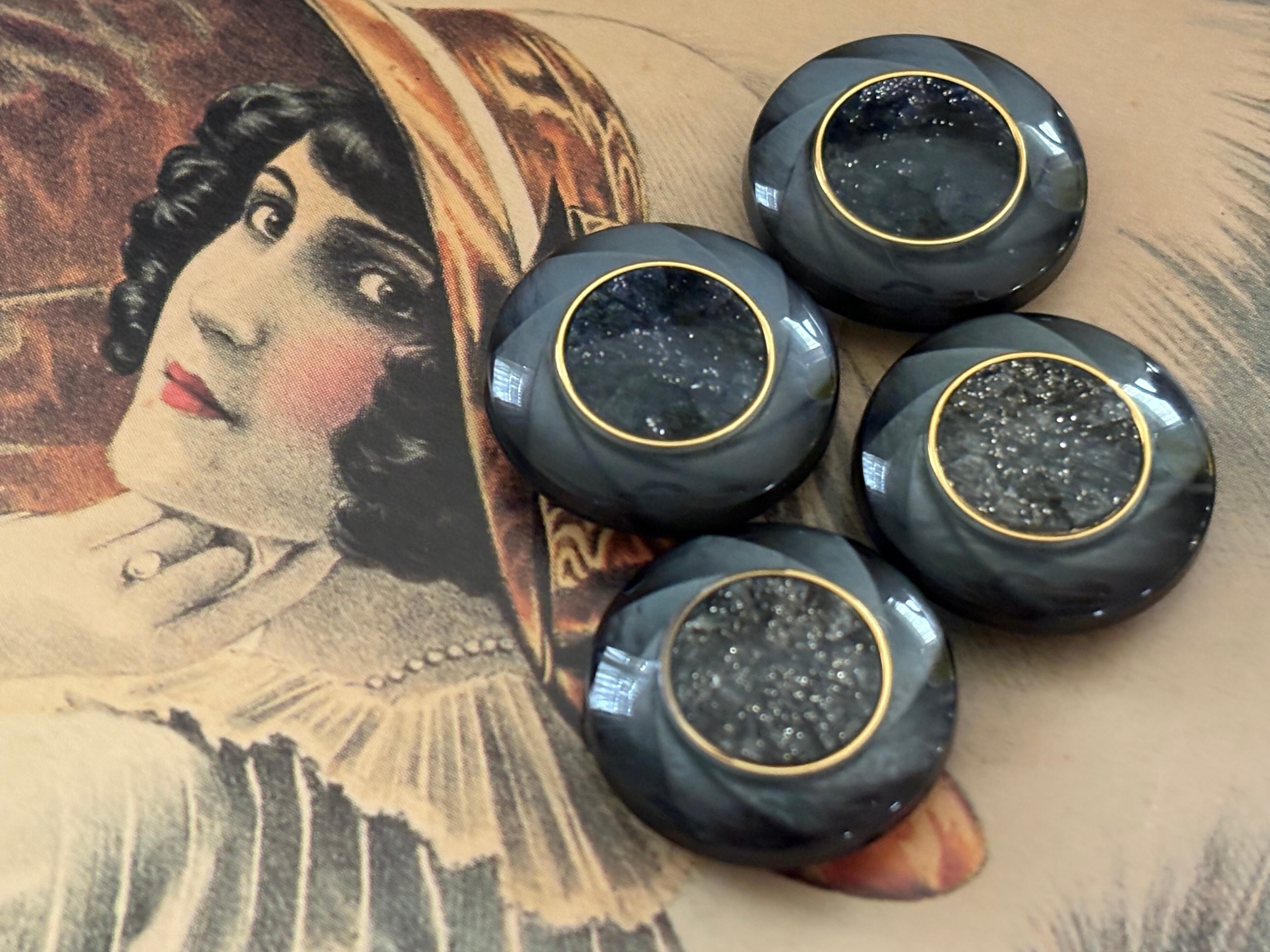 Japanese Vintage ボタン ブラック・シルバー系 グリッター 渦 19mm レトロ アクセサリーパーツ 装飾材 カルトナージュ