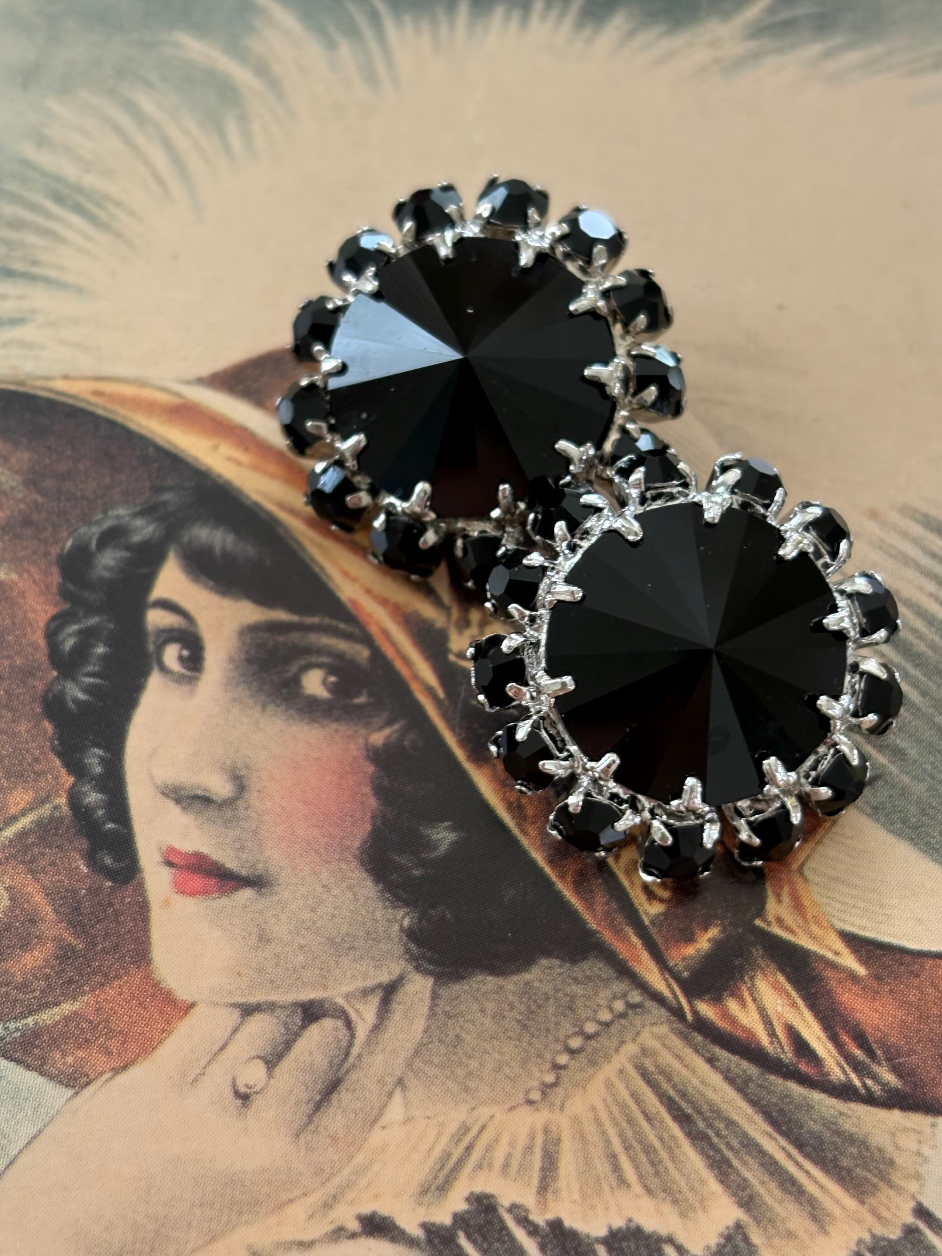 Japanese Vintage メタルボタン メタル×カボション シルバー× ブラック 22mm アクセサリーパーツ 装飾材