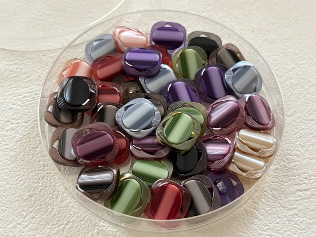 飾りボタンとしては勿論のことアクセサリーパーツとして、カルトナージュのデコレーション材になど様々な用途でお役立て下さいませ。