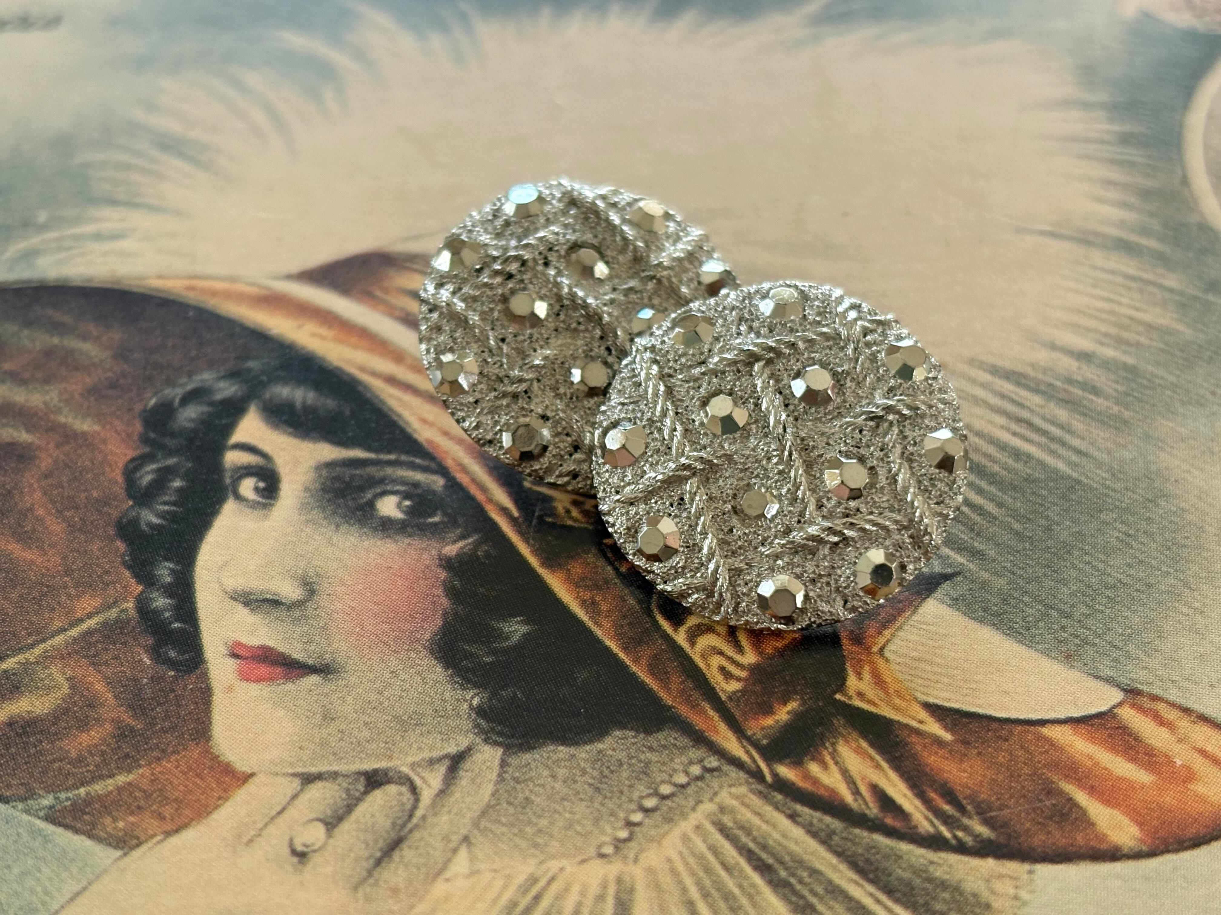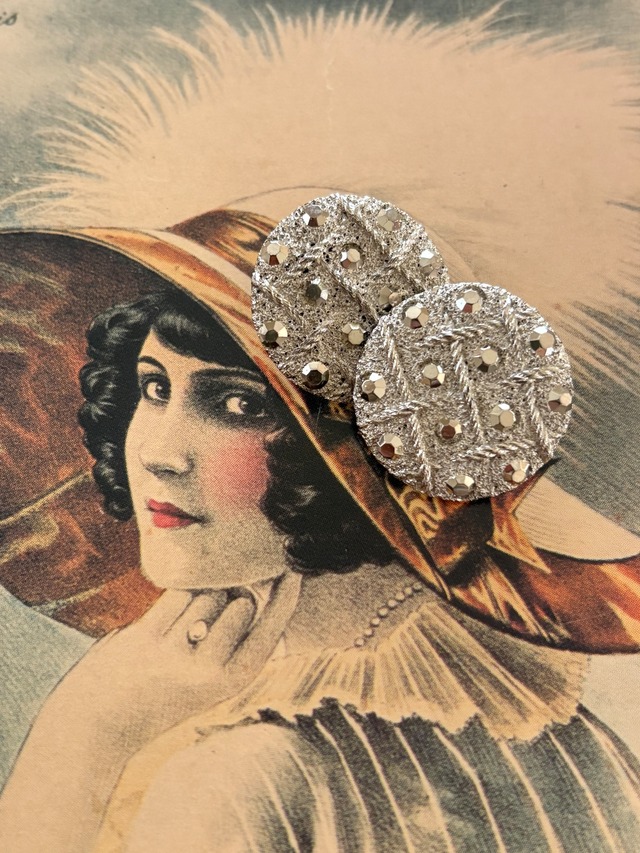 Japanese Vintage ボタン シルバー 19mm 昭和レトロ アクセサリーパーツ 装飾材 カルトナージュ