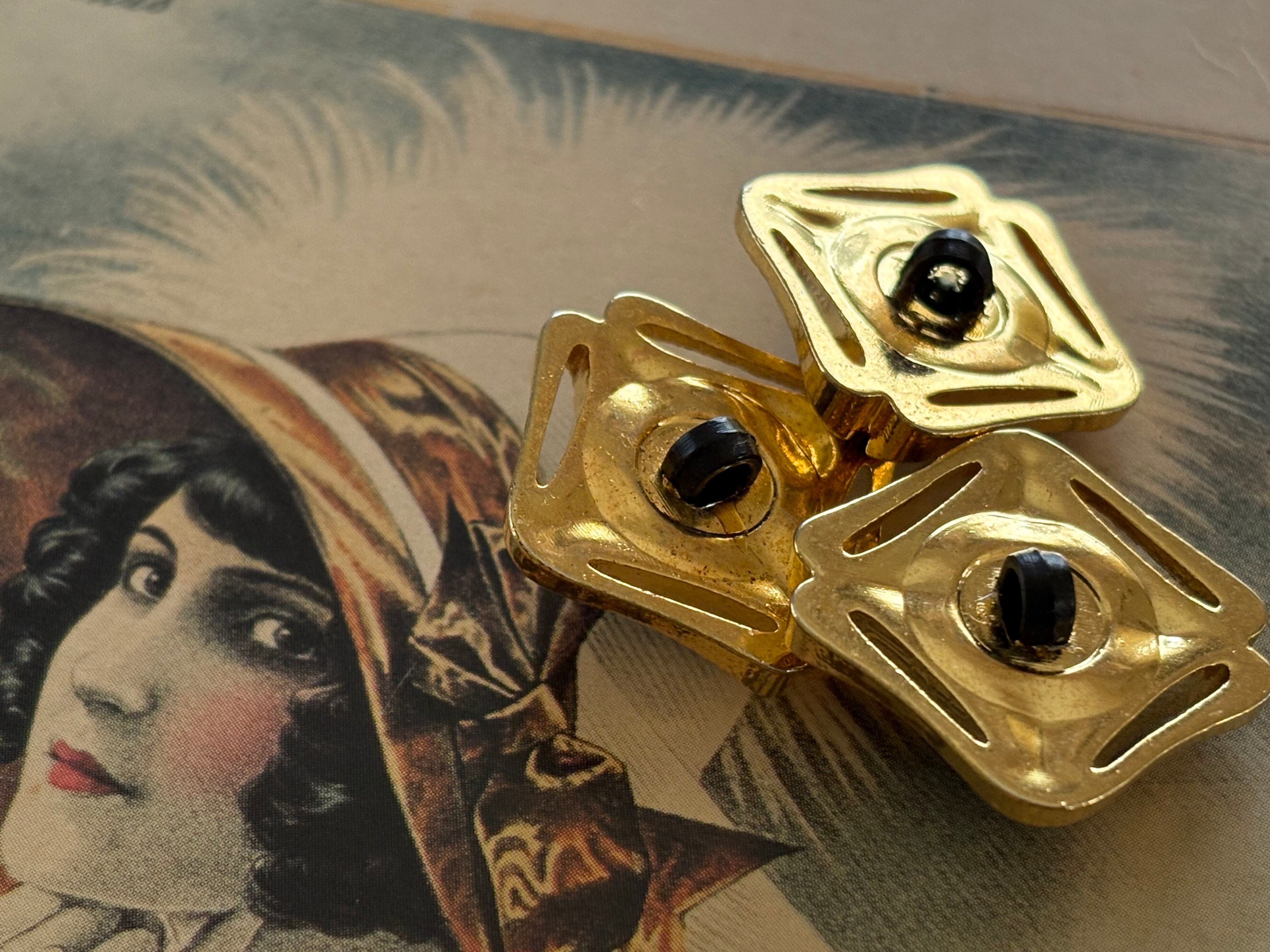 Japanese Vintage ボタン 24mm カボション ゴールド×ゴールド 透かし台座 アクセサリーパーツ 装飾材 カルトナージュ