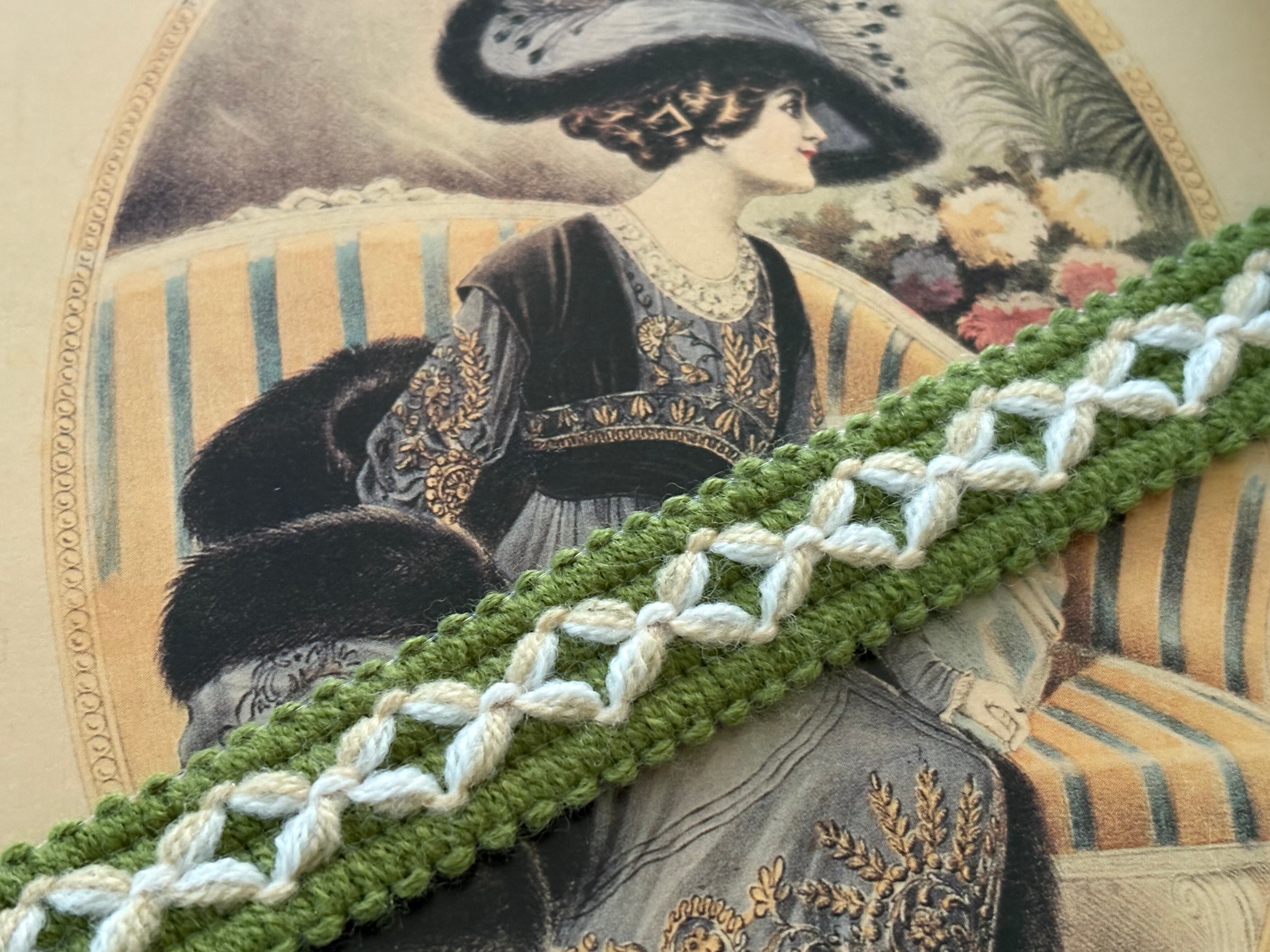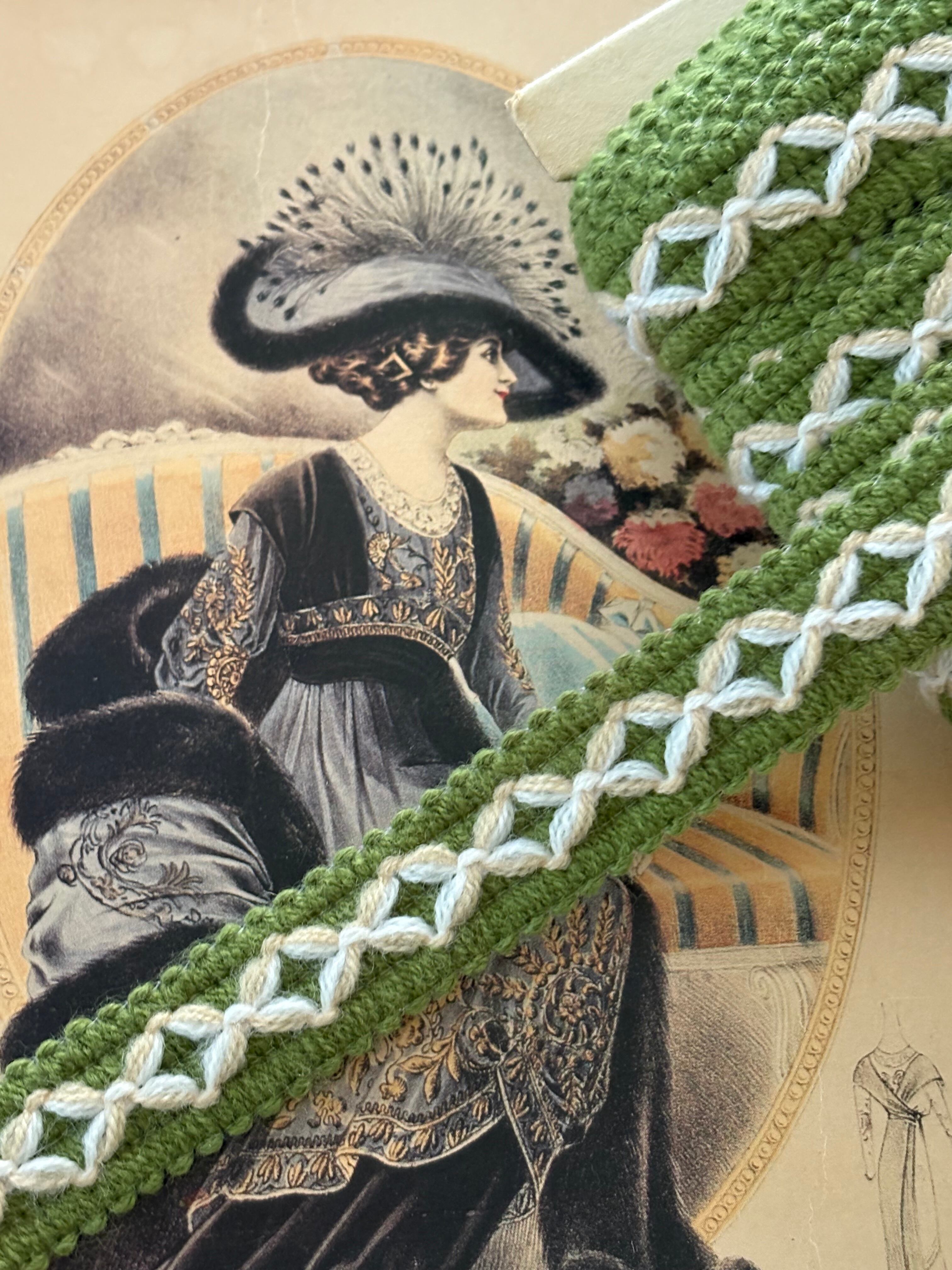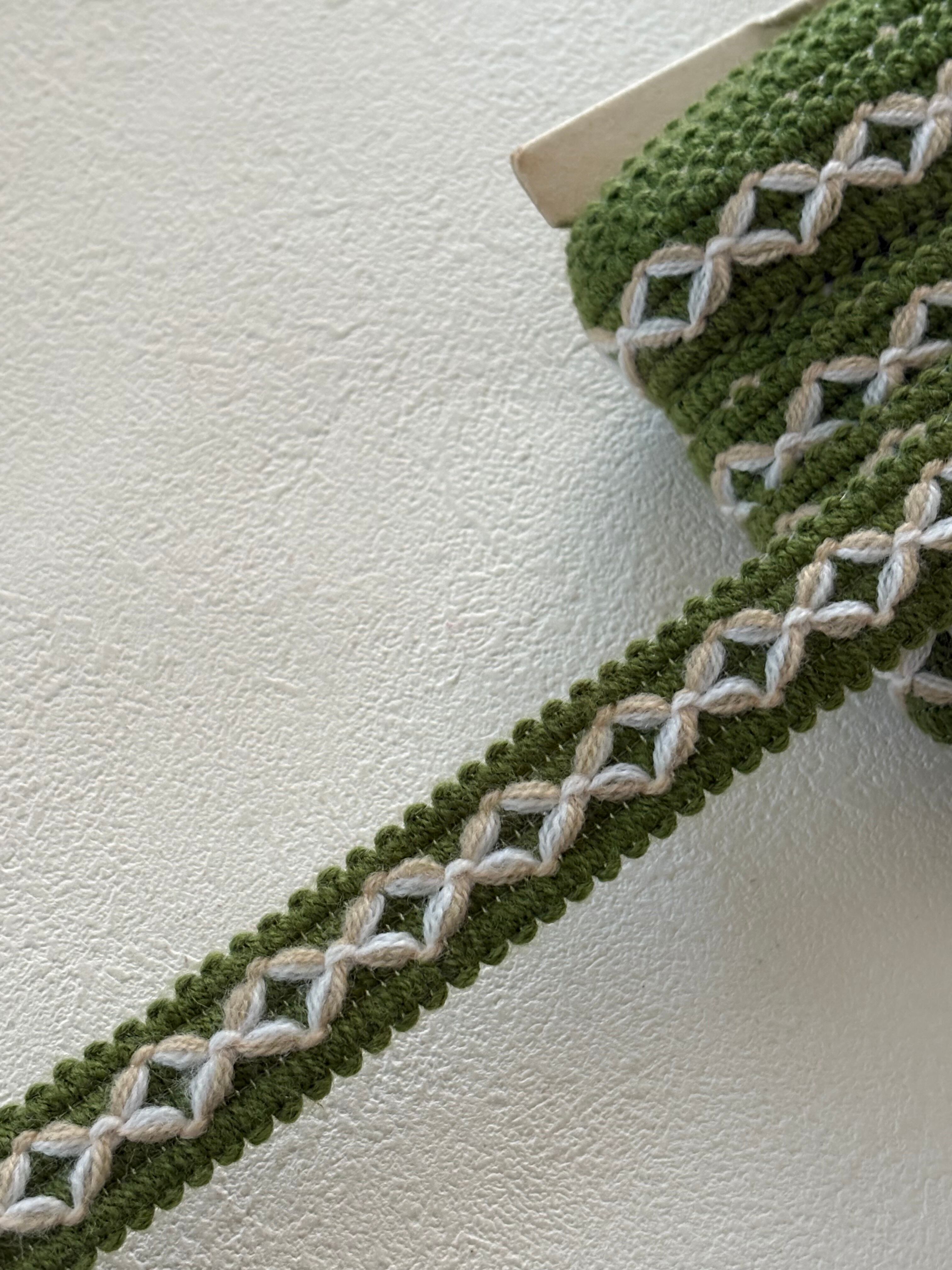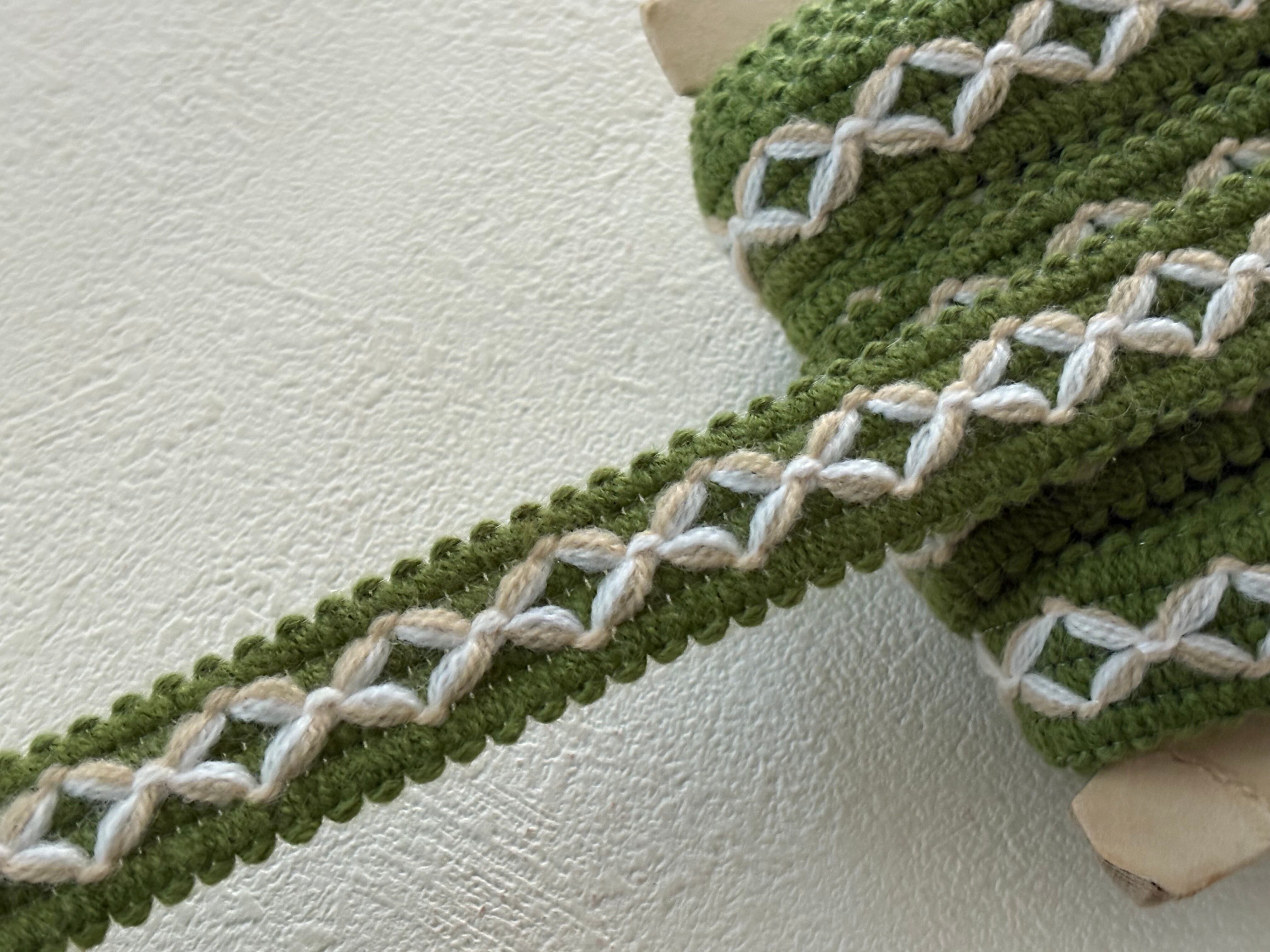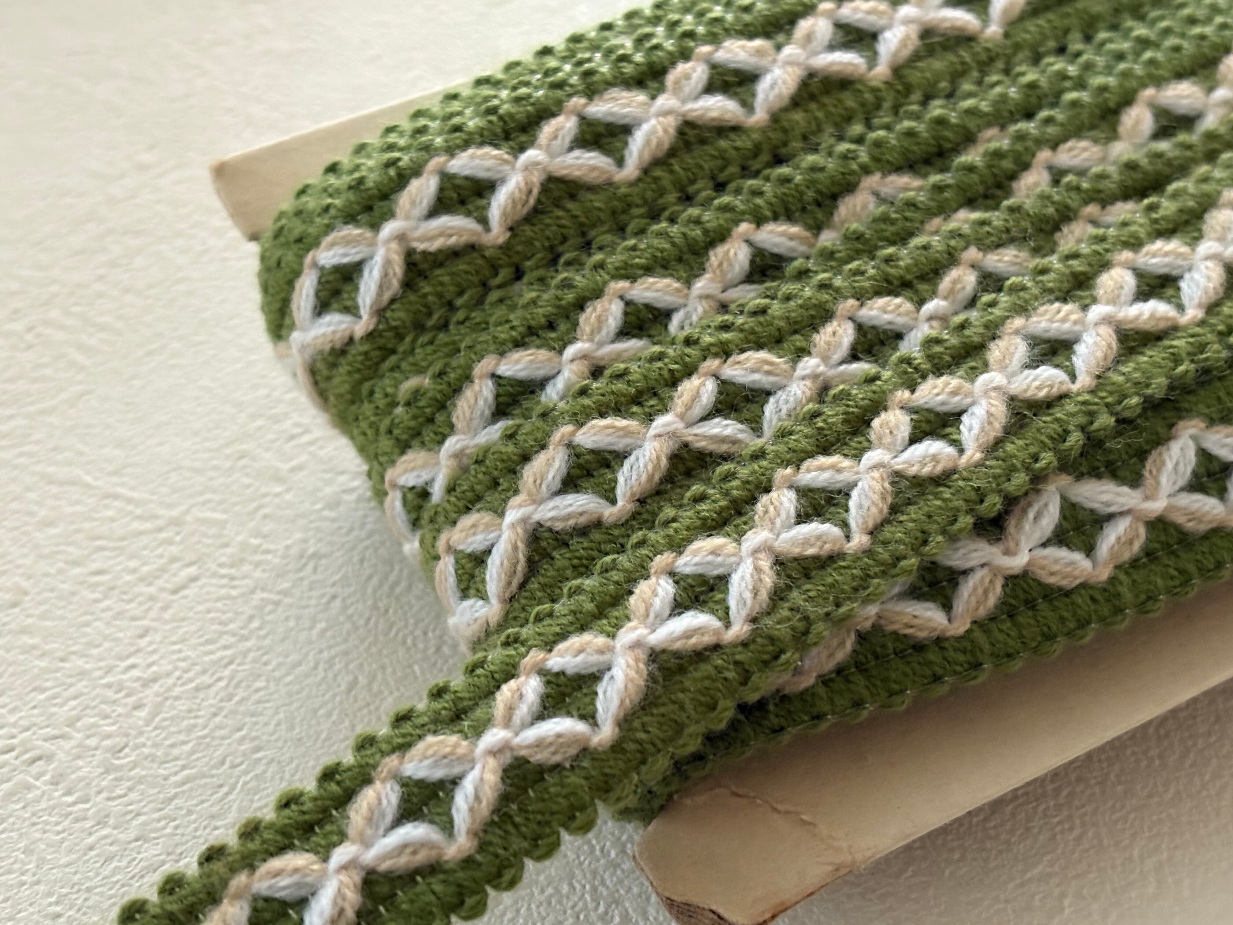 フランスVintage ブレード イエローグリーン×アイボリー×ベージュ 18mm カルトナージュ デコレーション材 ヴィンテージブレード