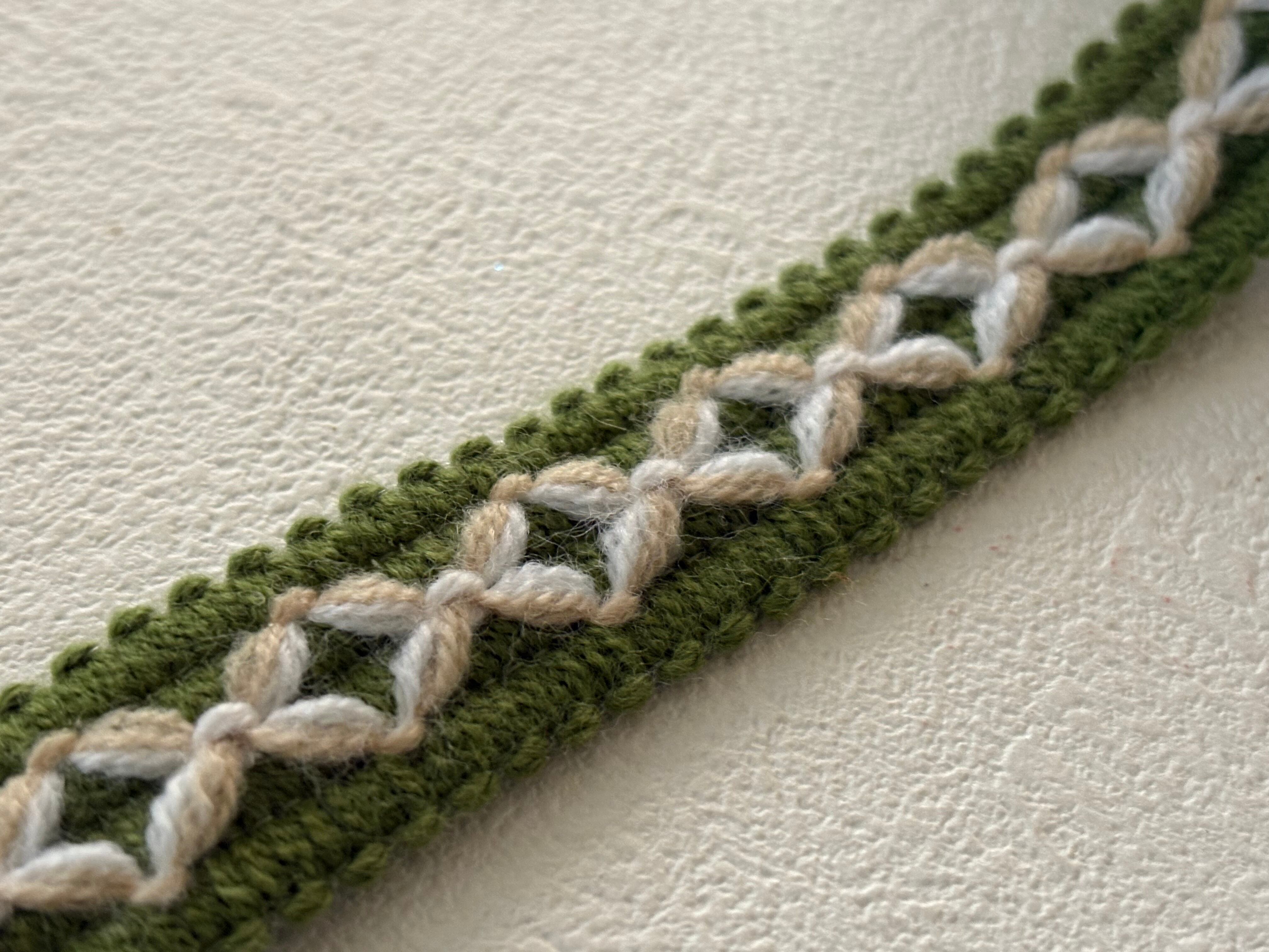 毛糸で編まれたような起毛の優しい温かい風合いのブレード(リボン)です。