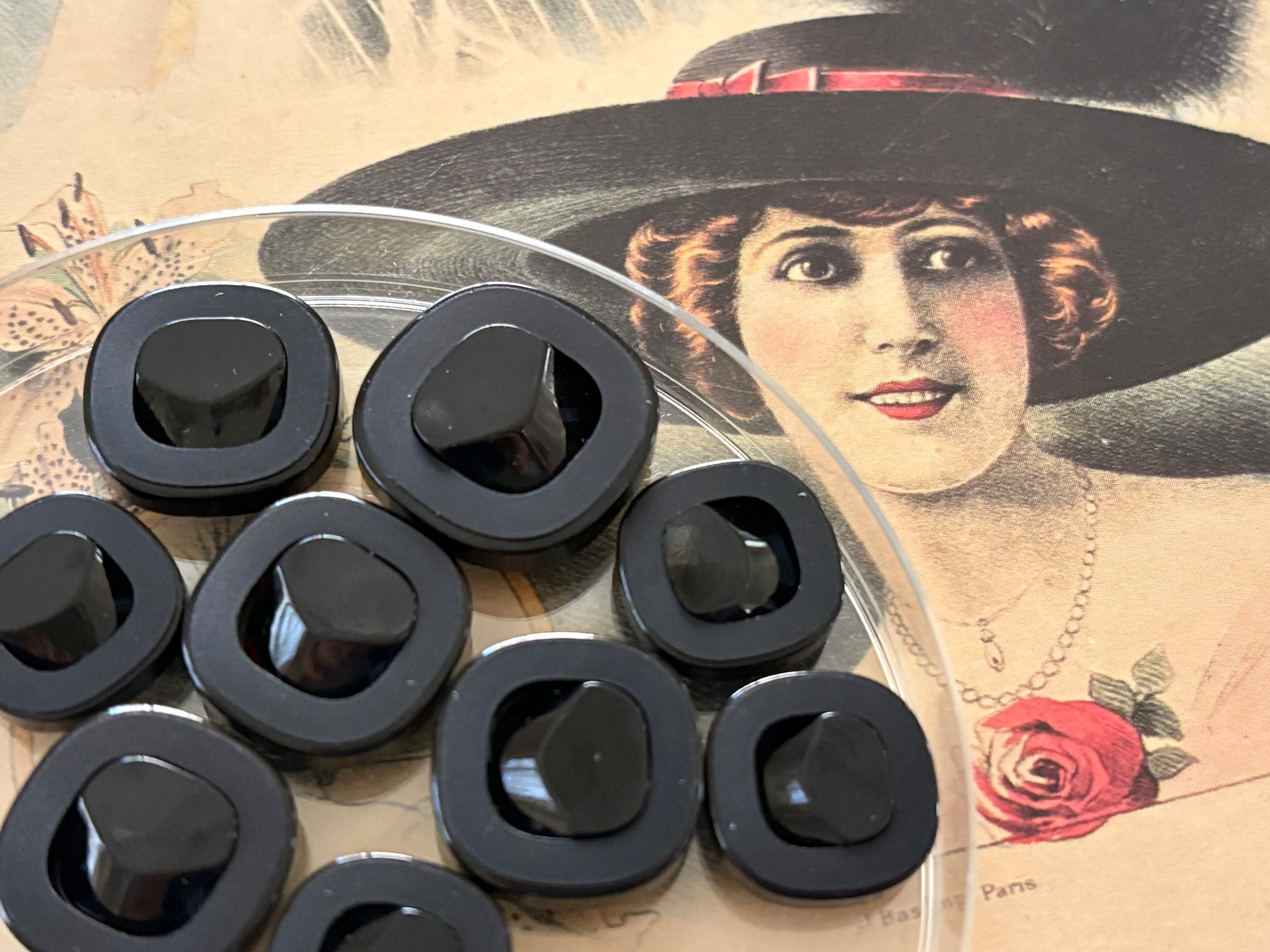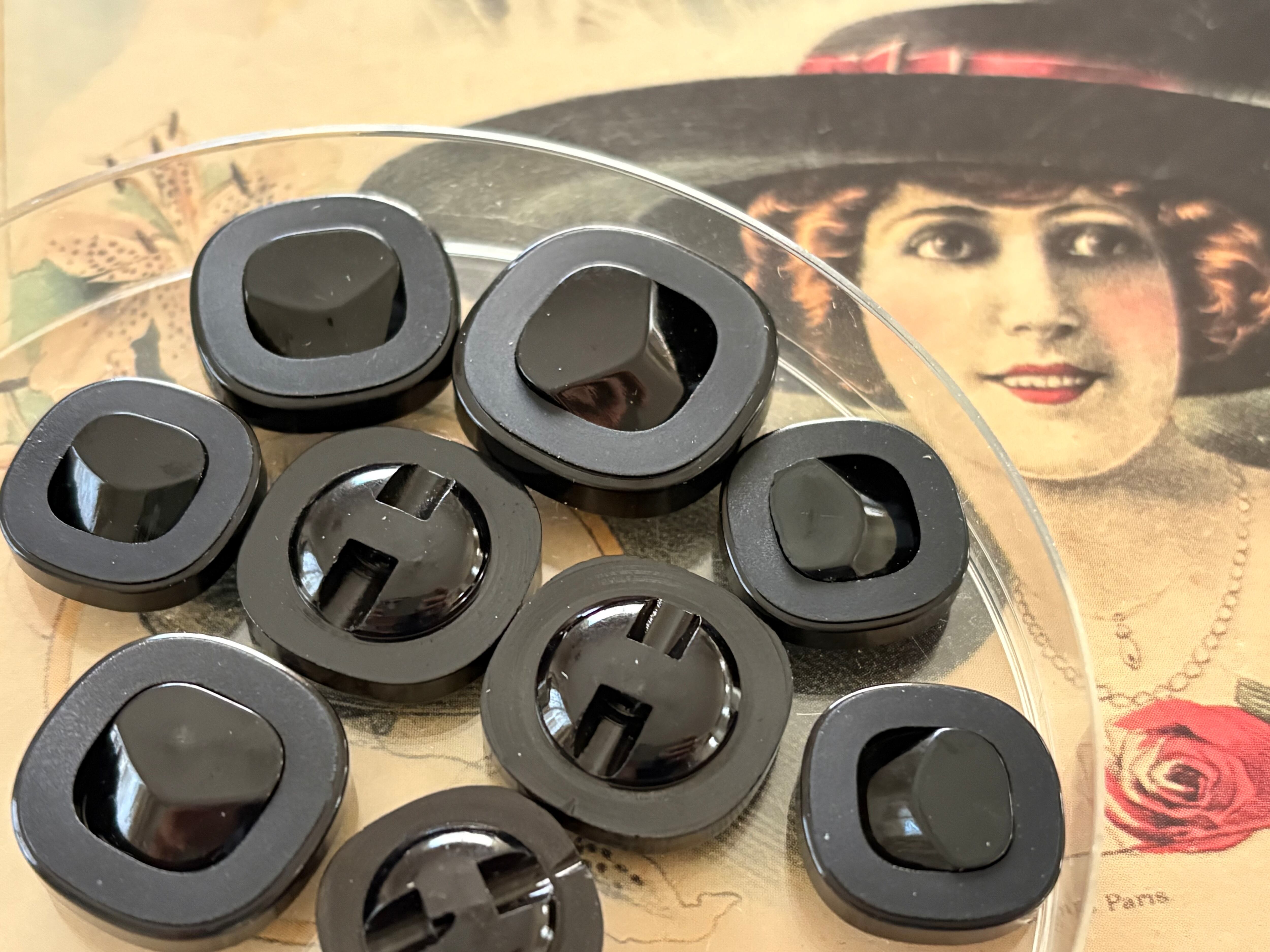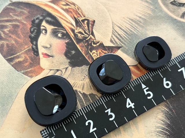 Japanese Vintage ボタン 角なしスクウェア ブラック 18mm カボション 昭和レトロ アクセサリーパーツ 装飾材 カルトナージュ