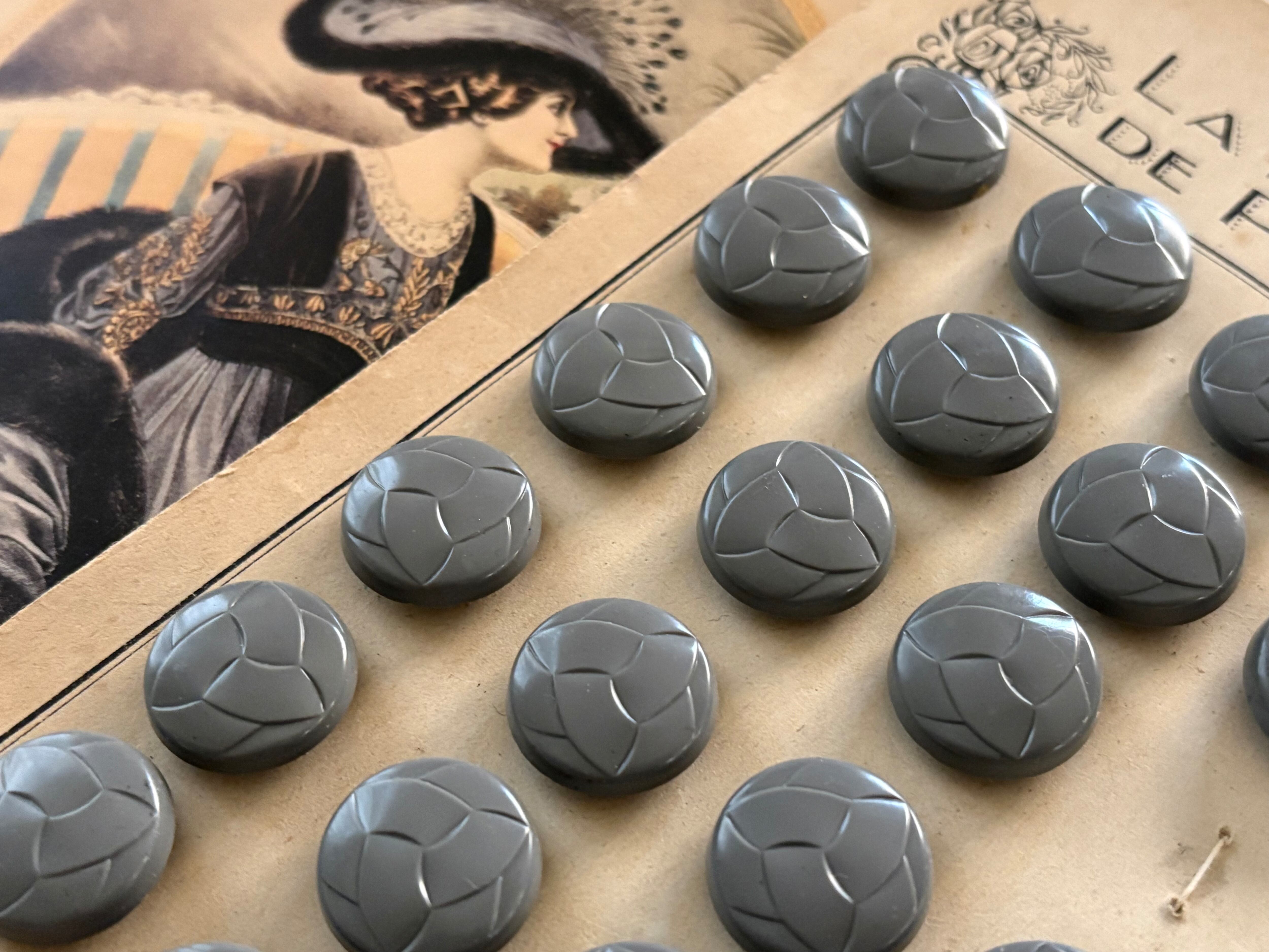 フランスVintageボタン ヴィンテージボタン デッドストック 17mm グレー 網目模様 アクセサリーパーツ デコレーション材
