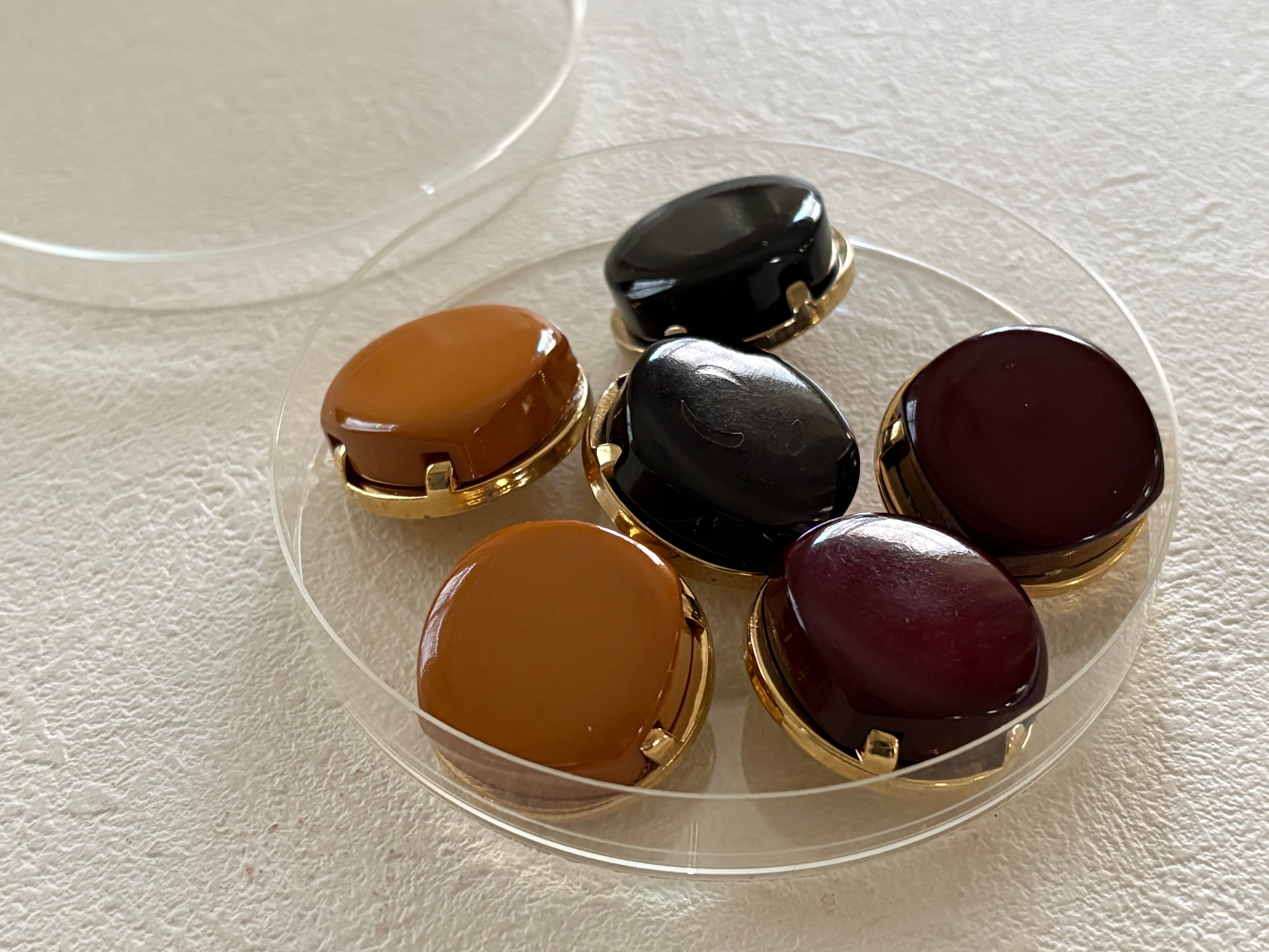 飾りボタンとしては勿論のことアクセサリーパーツとして、カルトナージュのデコレーション材になど様々な用途でお役立て下さいませ。