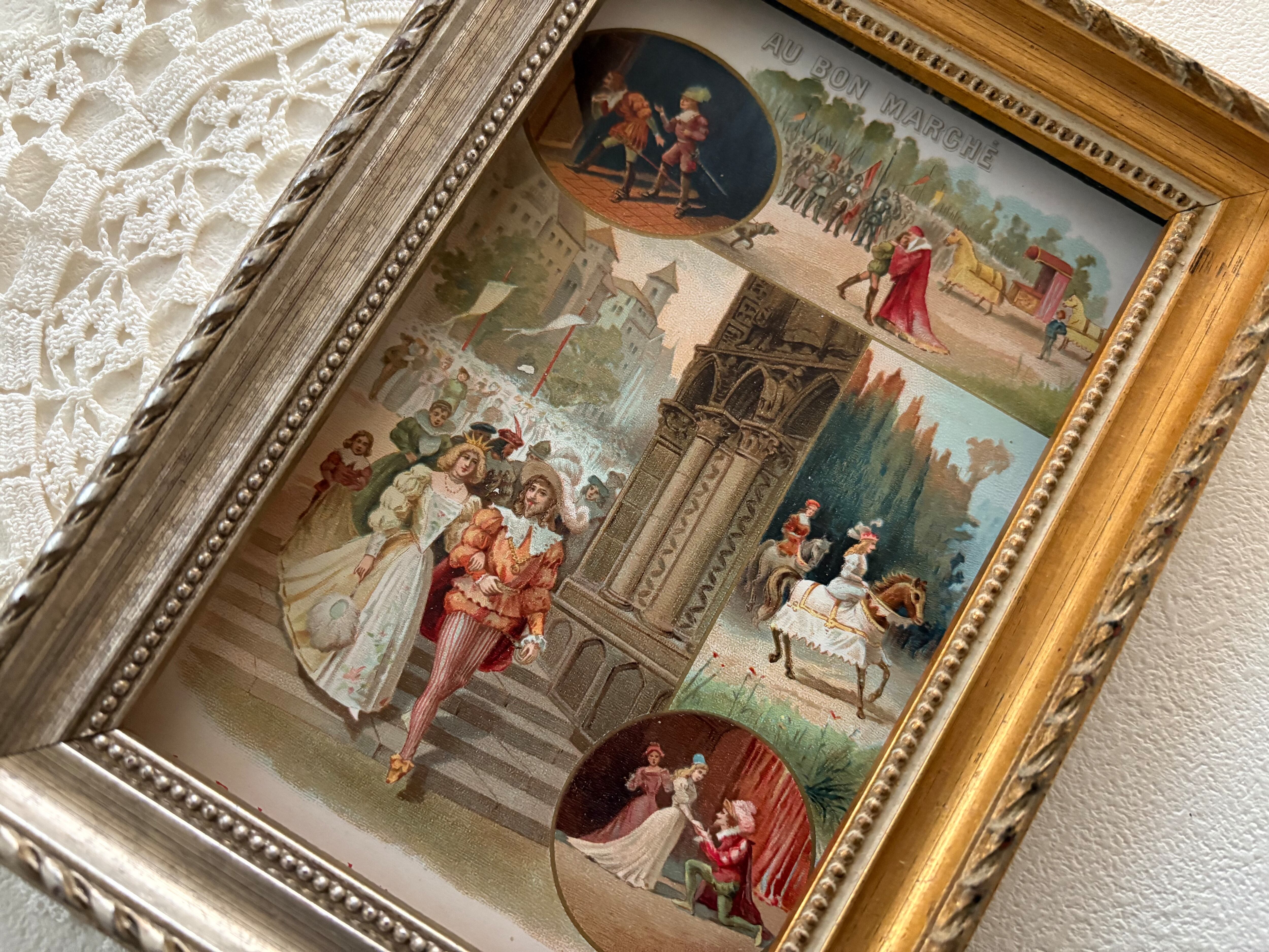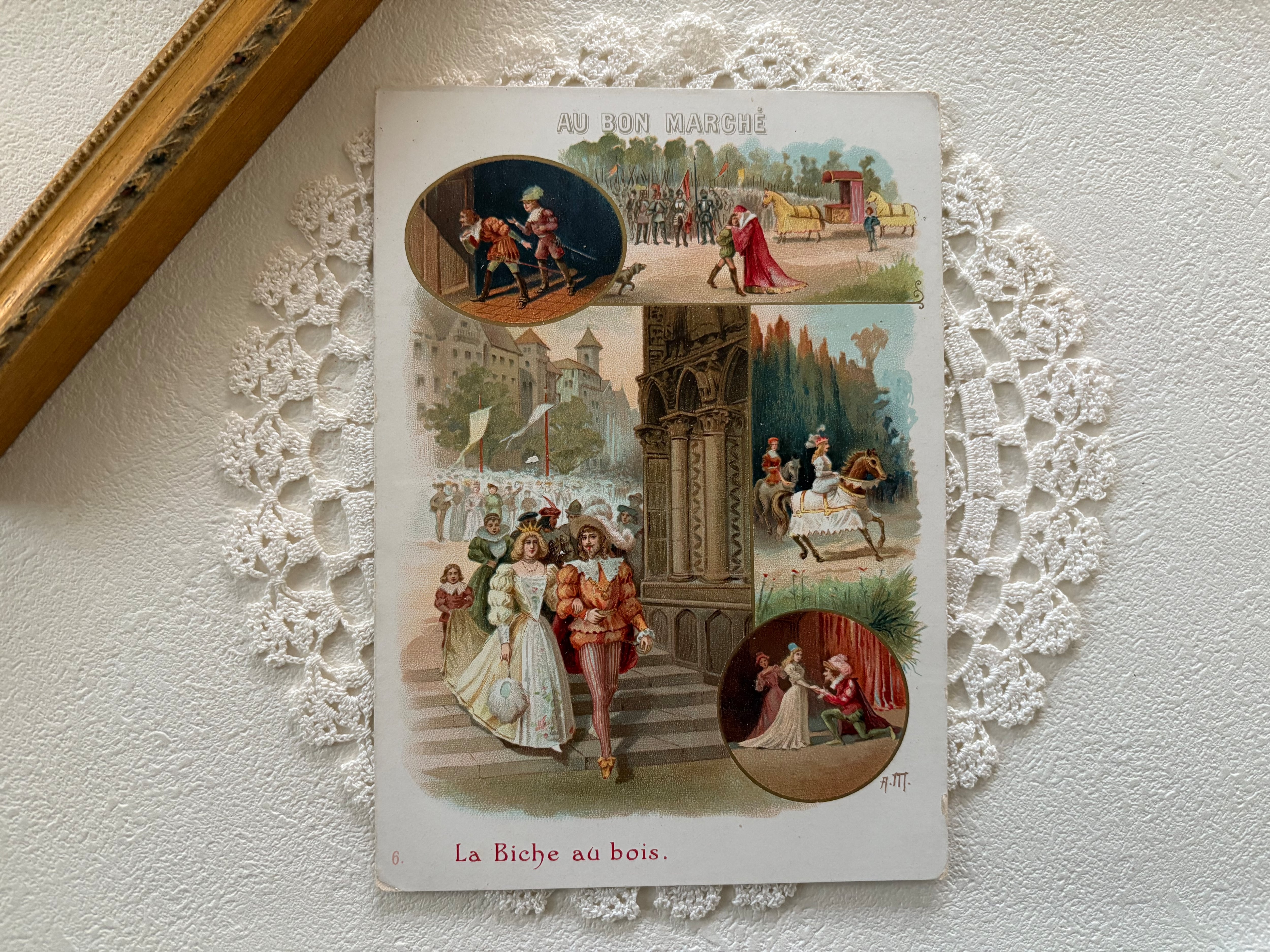 フランスアンティーク クロモカード BON MARCHE ボンマルシェ La Biche au bois 額装 インテリア小物 撮影小物
