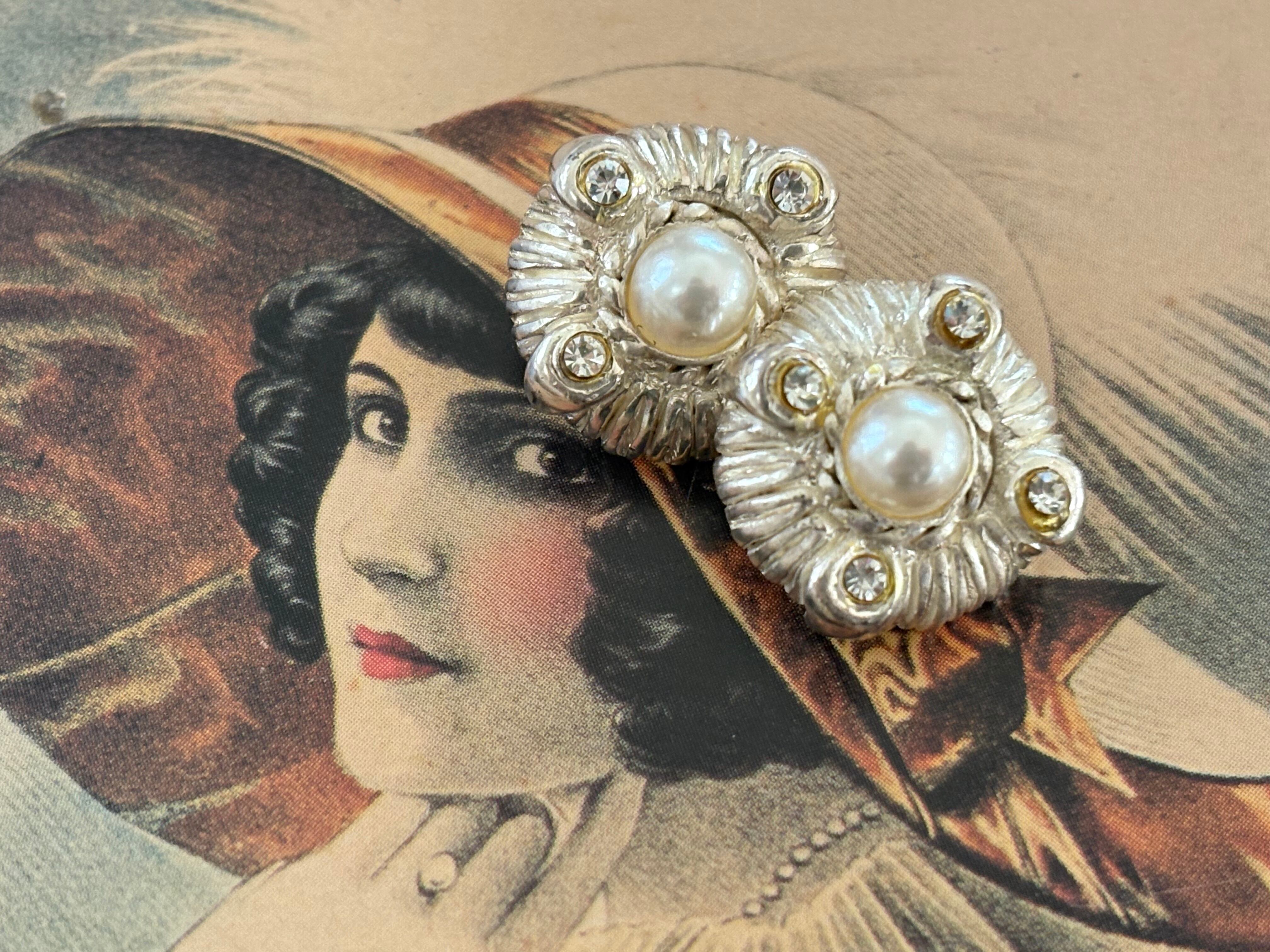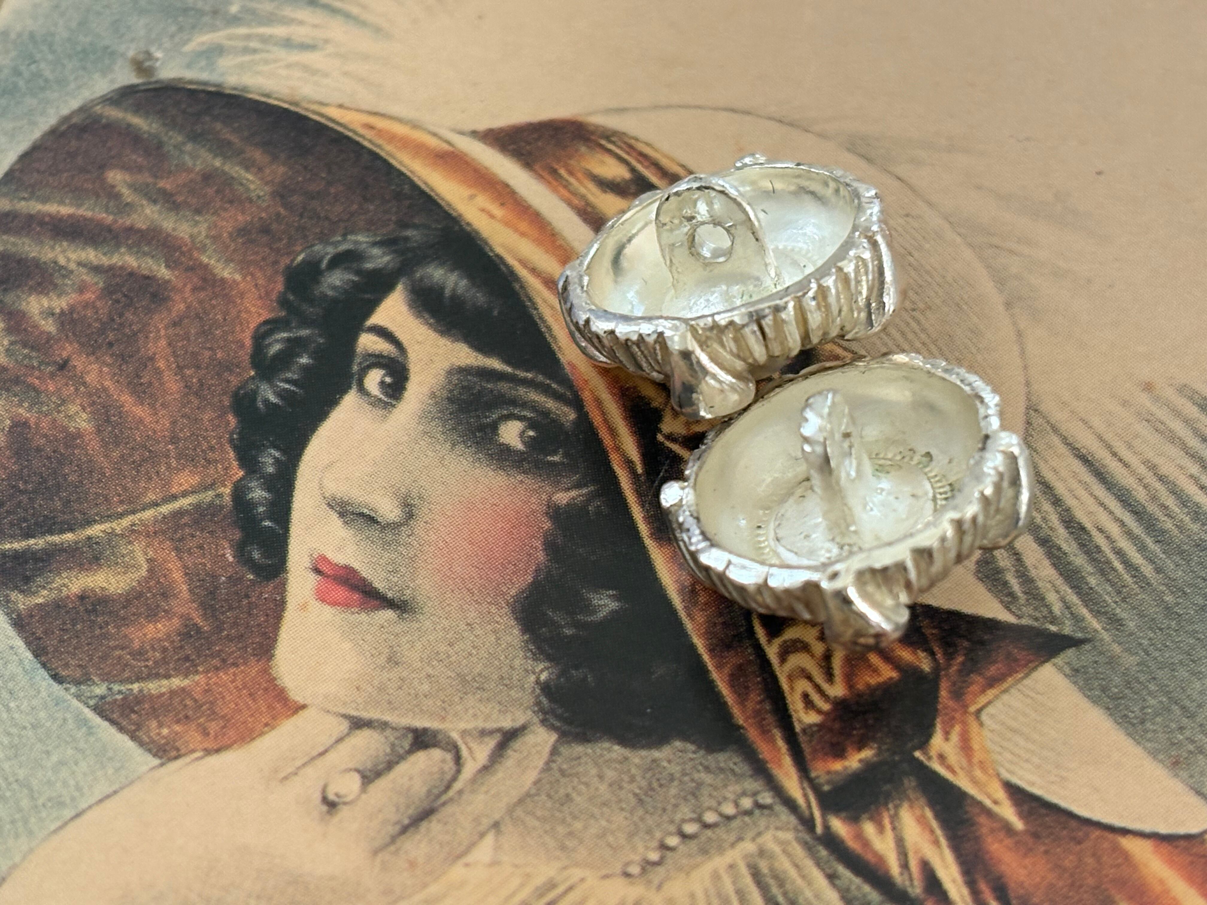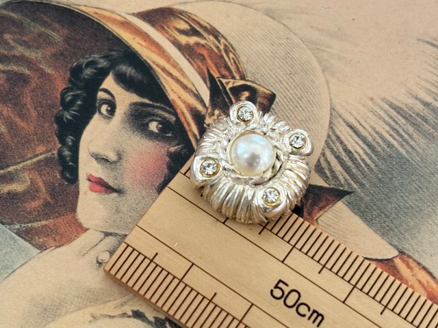 Japanese Vintage ヴィンテージボタン メタル シルバー×パール調カボション×ストーン 17mm 高級ボタン アクセサリーパーツ