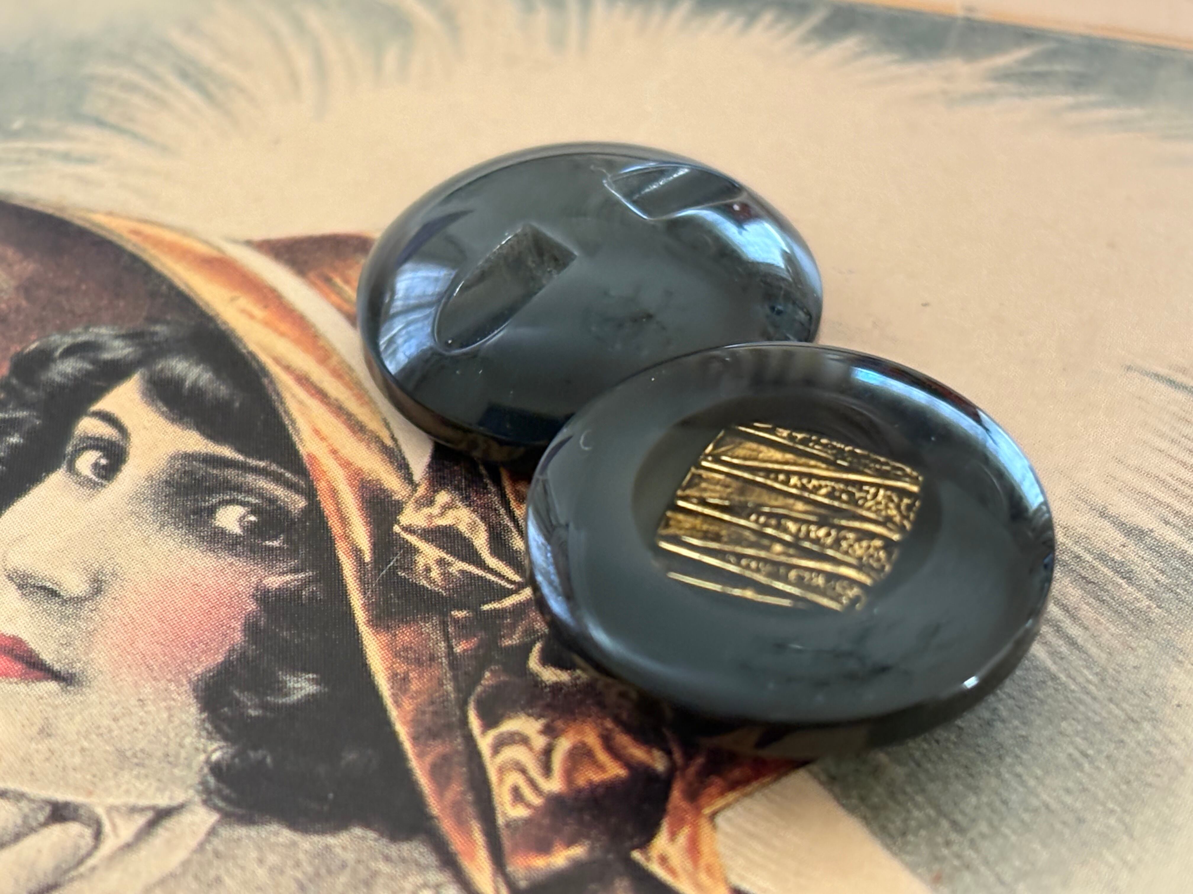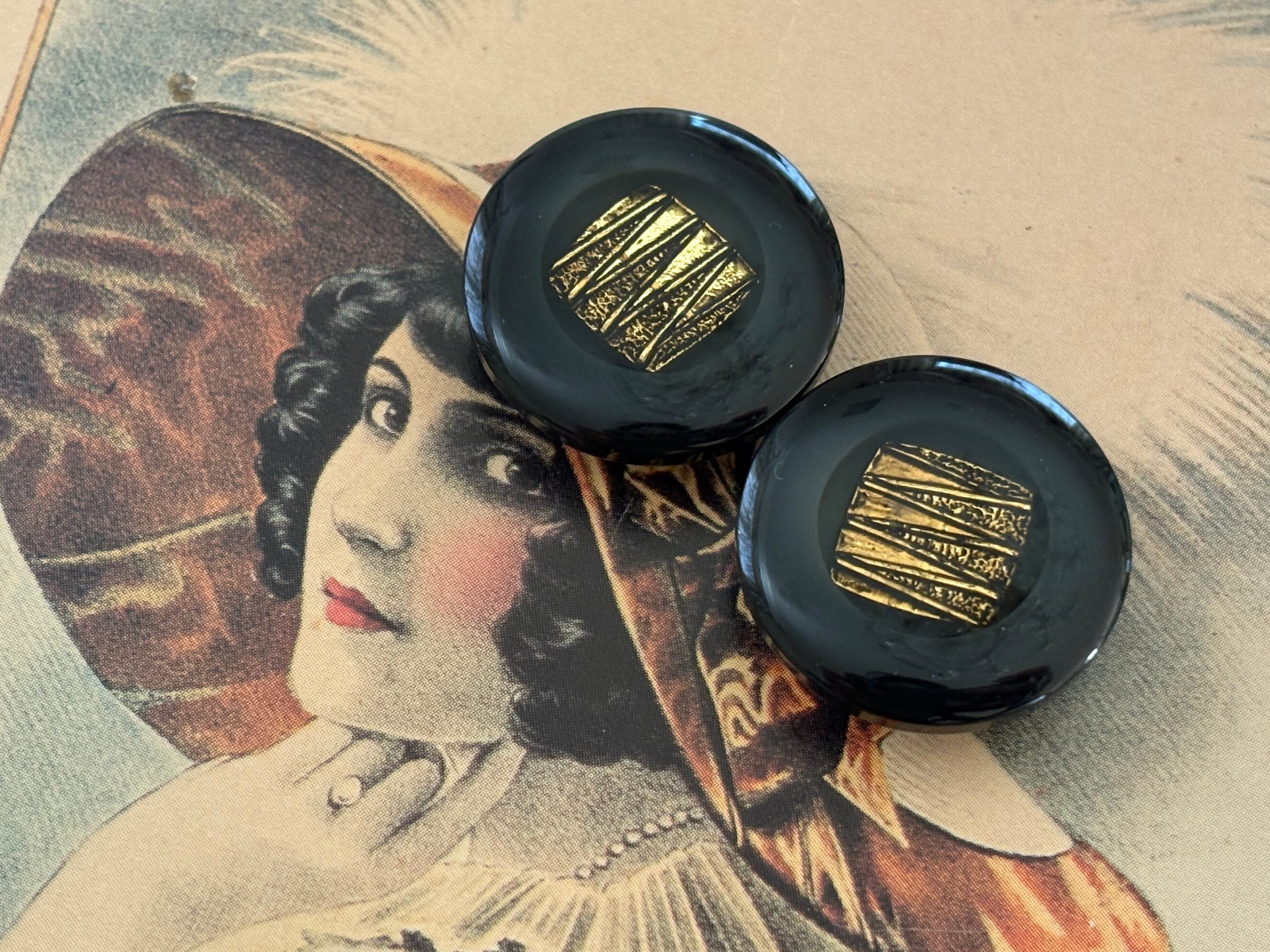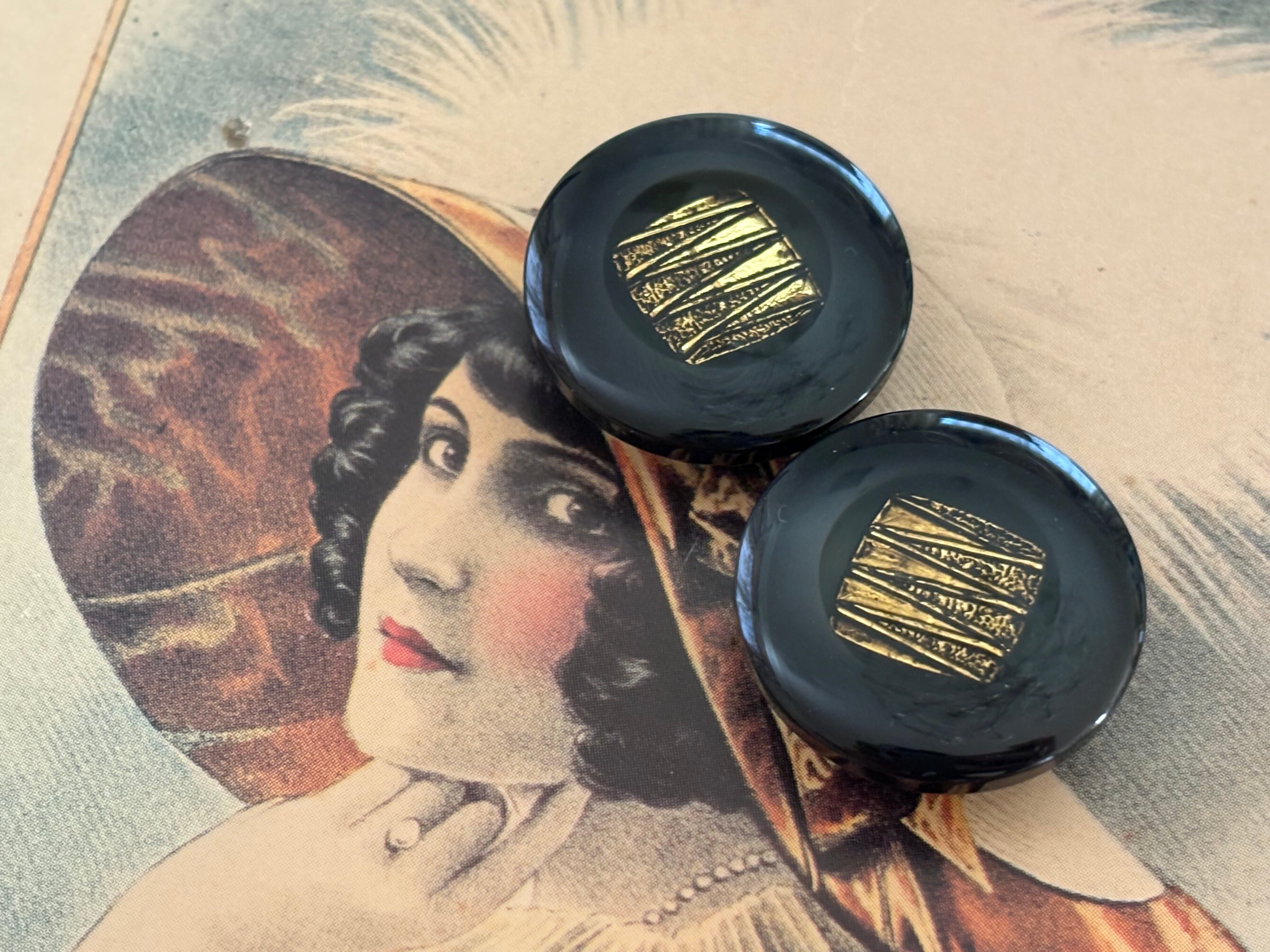 Japanese Vintage ボタン 22mm ブラック×ゴールド 樹脂ボタン 昭和レトロ アクセサリーパーツ 装飾材 カルトナージュ
