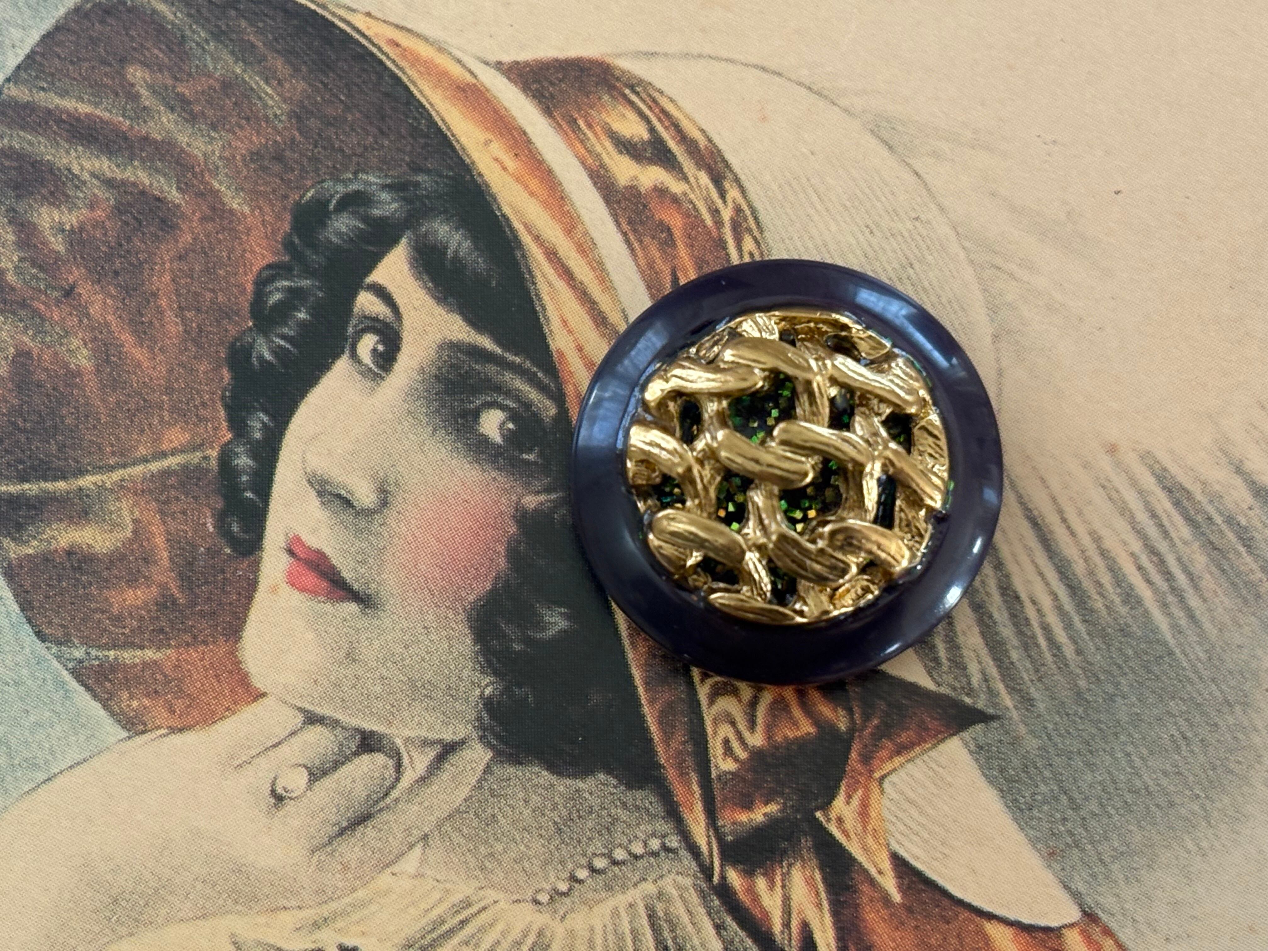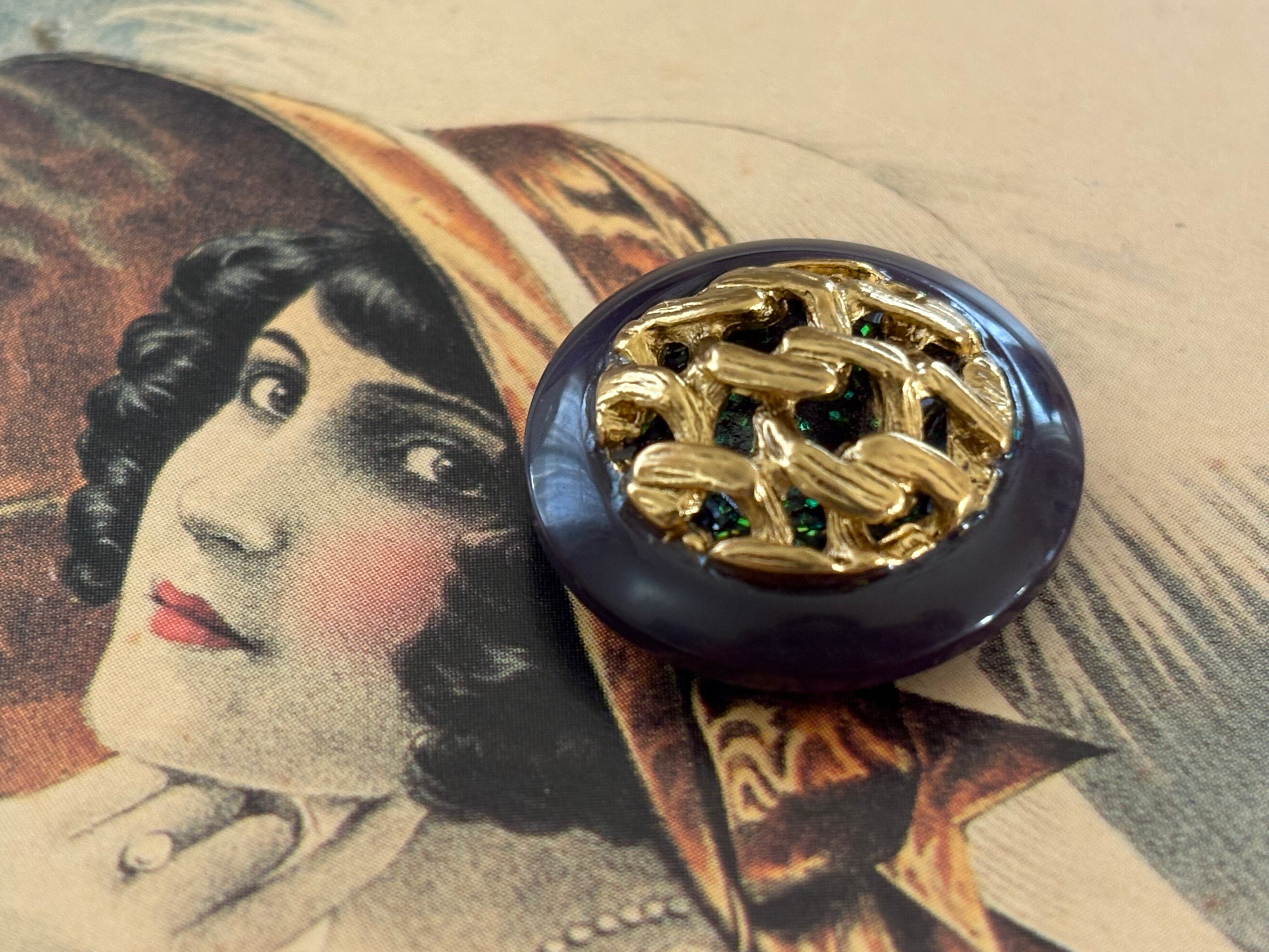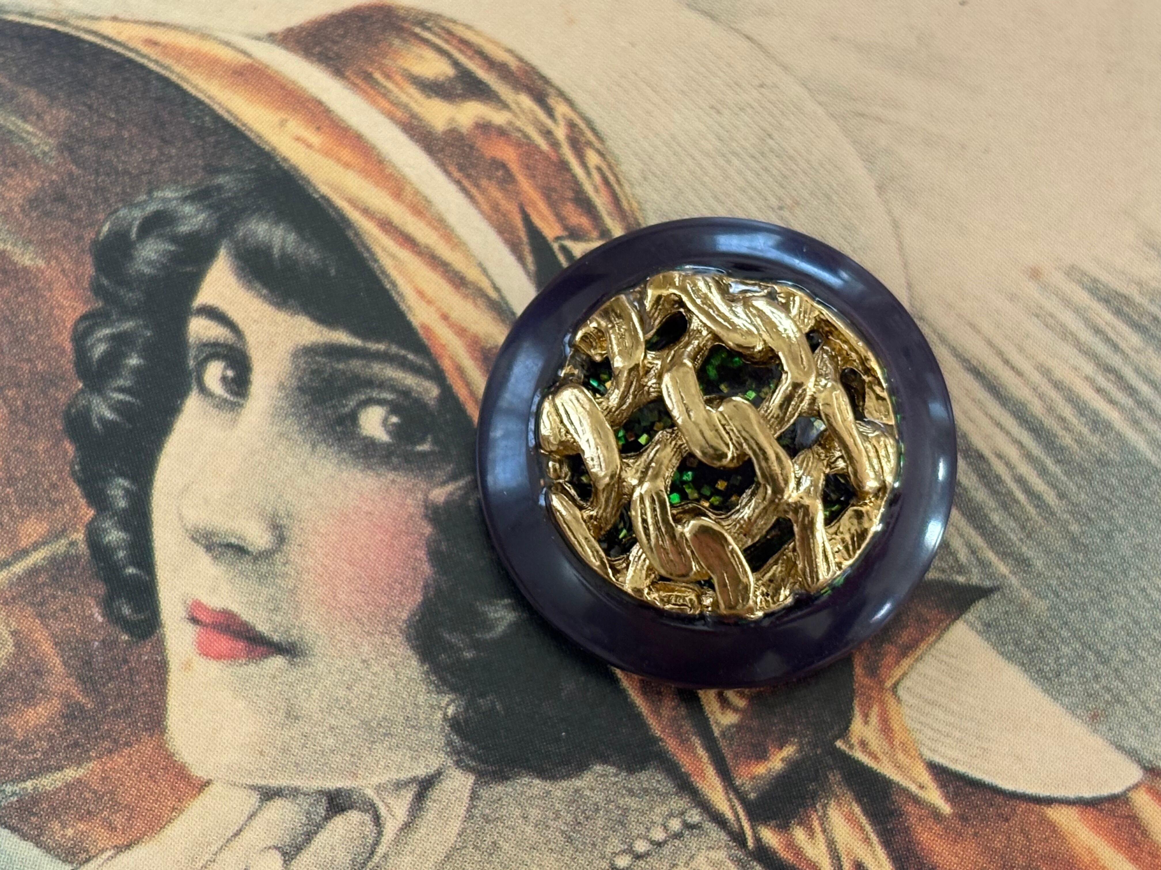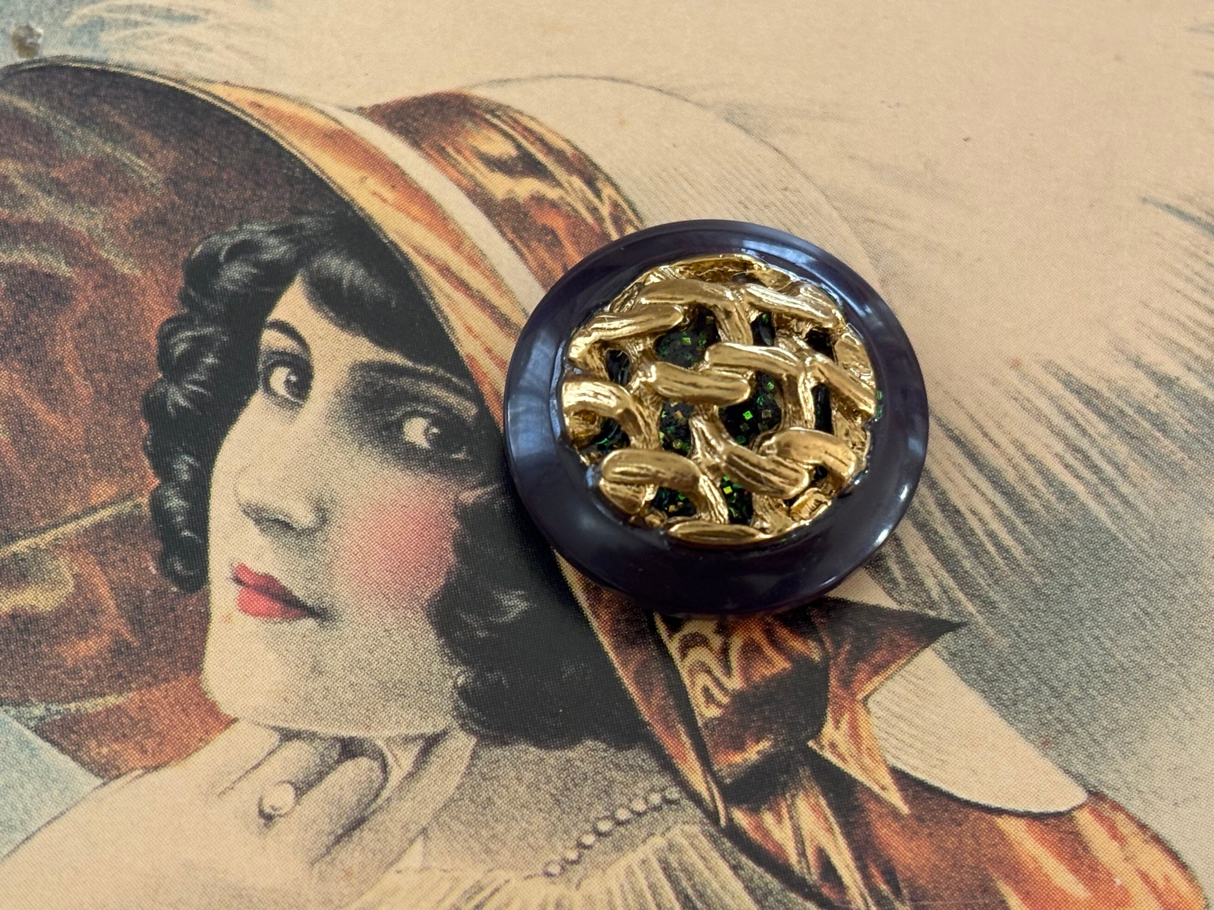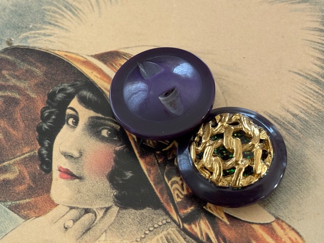 Import Vintage ボタン ドーム型 パープル×ゴールド グリッター 22mm アクセサリーパーツ デコレーション材