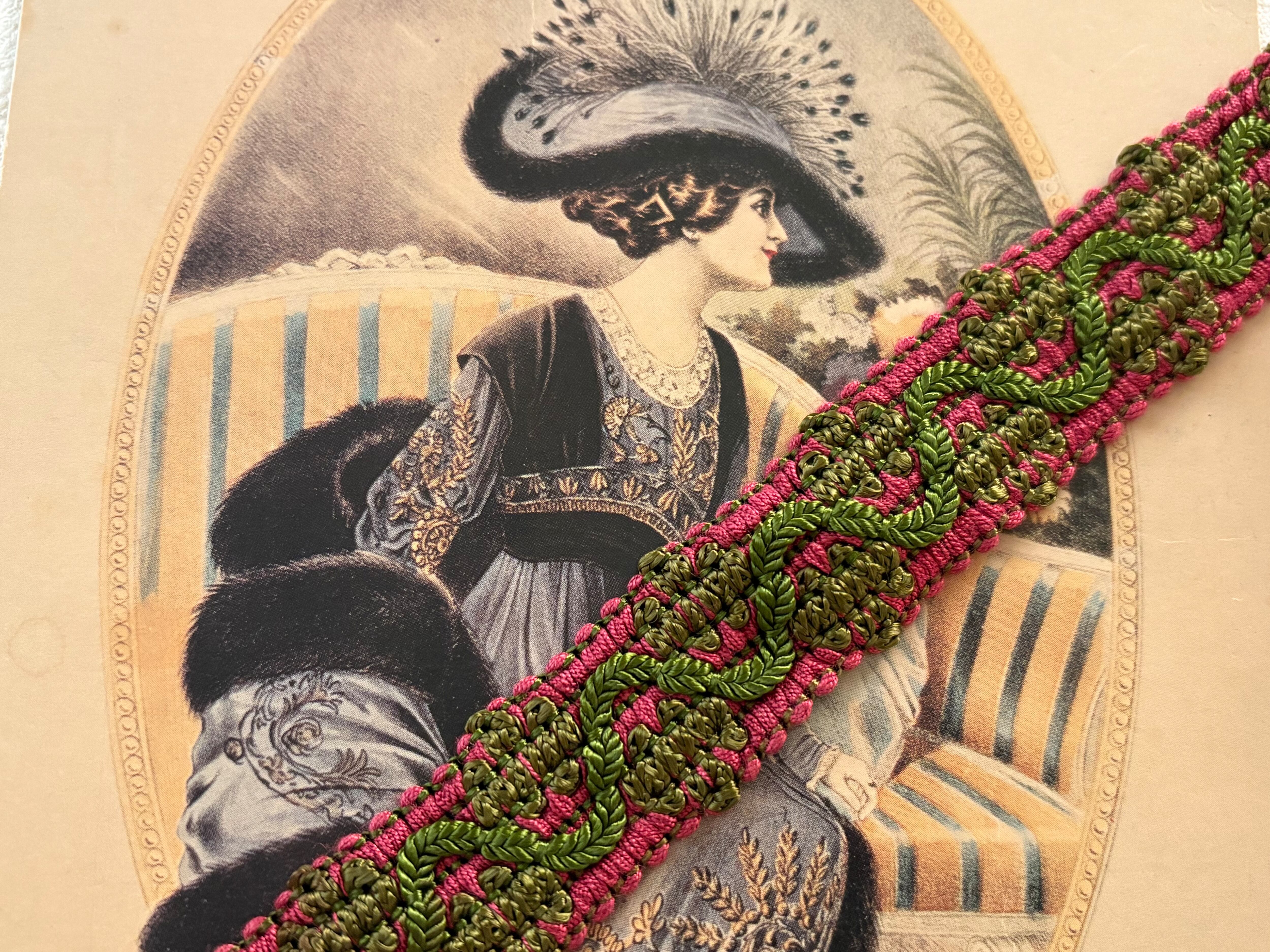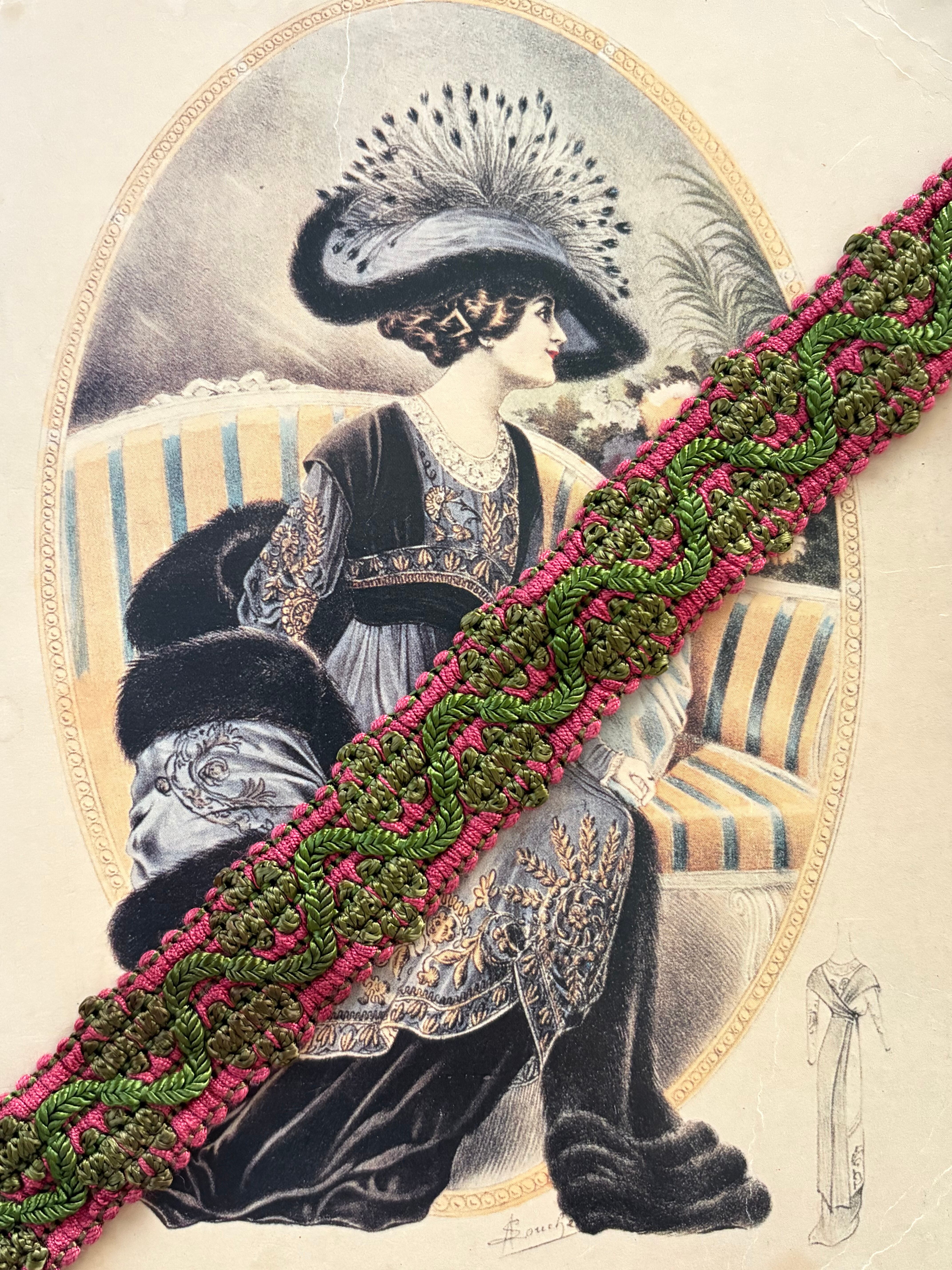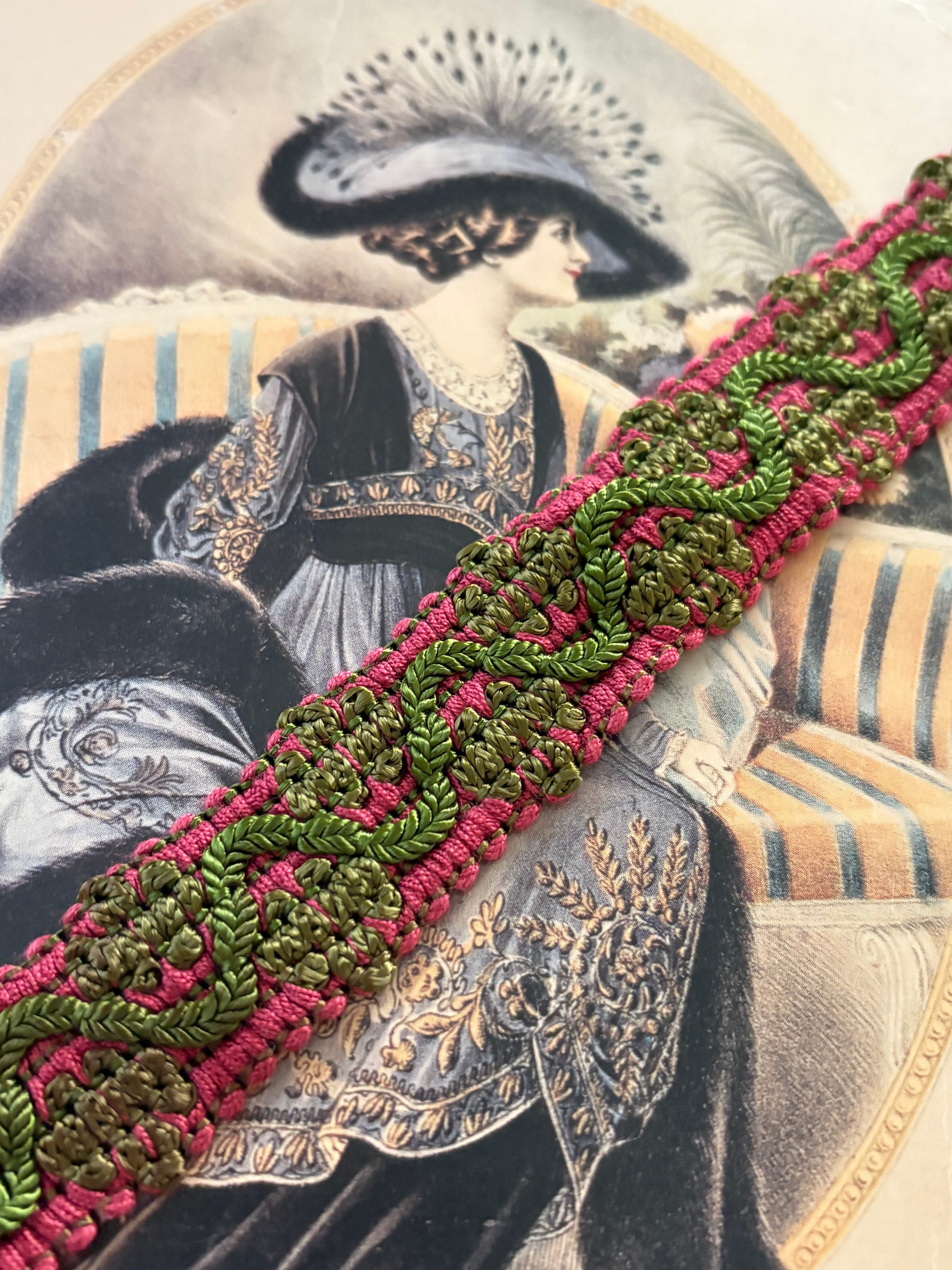 フランスVintage ブレード ピンク×グリーン 22mm 50cm/カット カルトナージュ スツール デコレーション材 ヴィンテージブレード