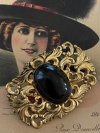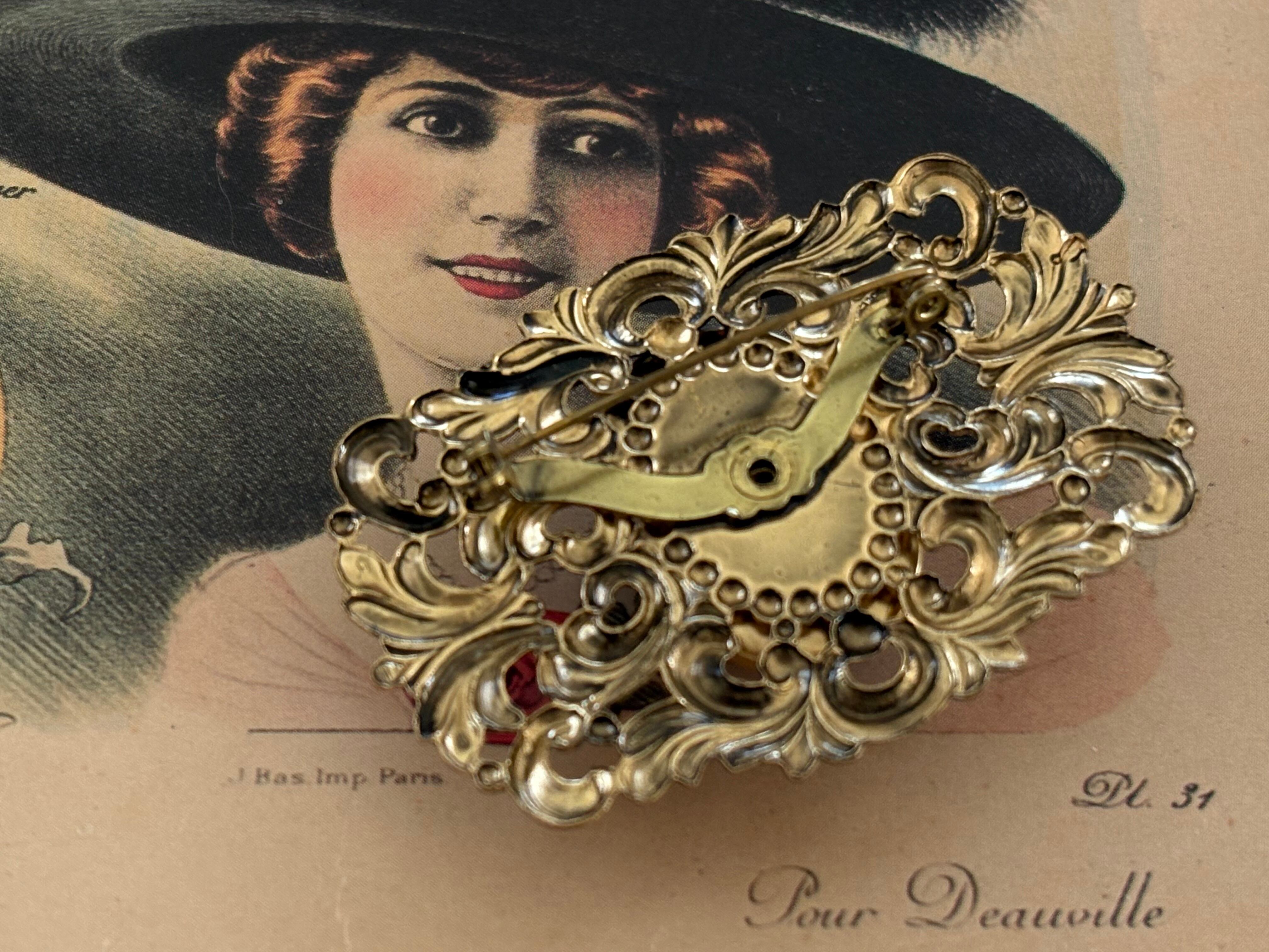 フランスVintage デコラティブでクラシカルな透かしのブローチ カボション アクセサリー ゴールド デコレーション材