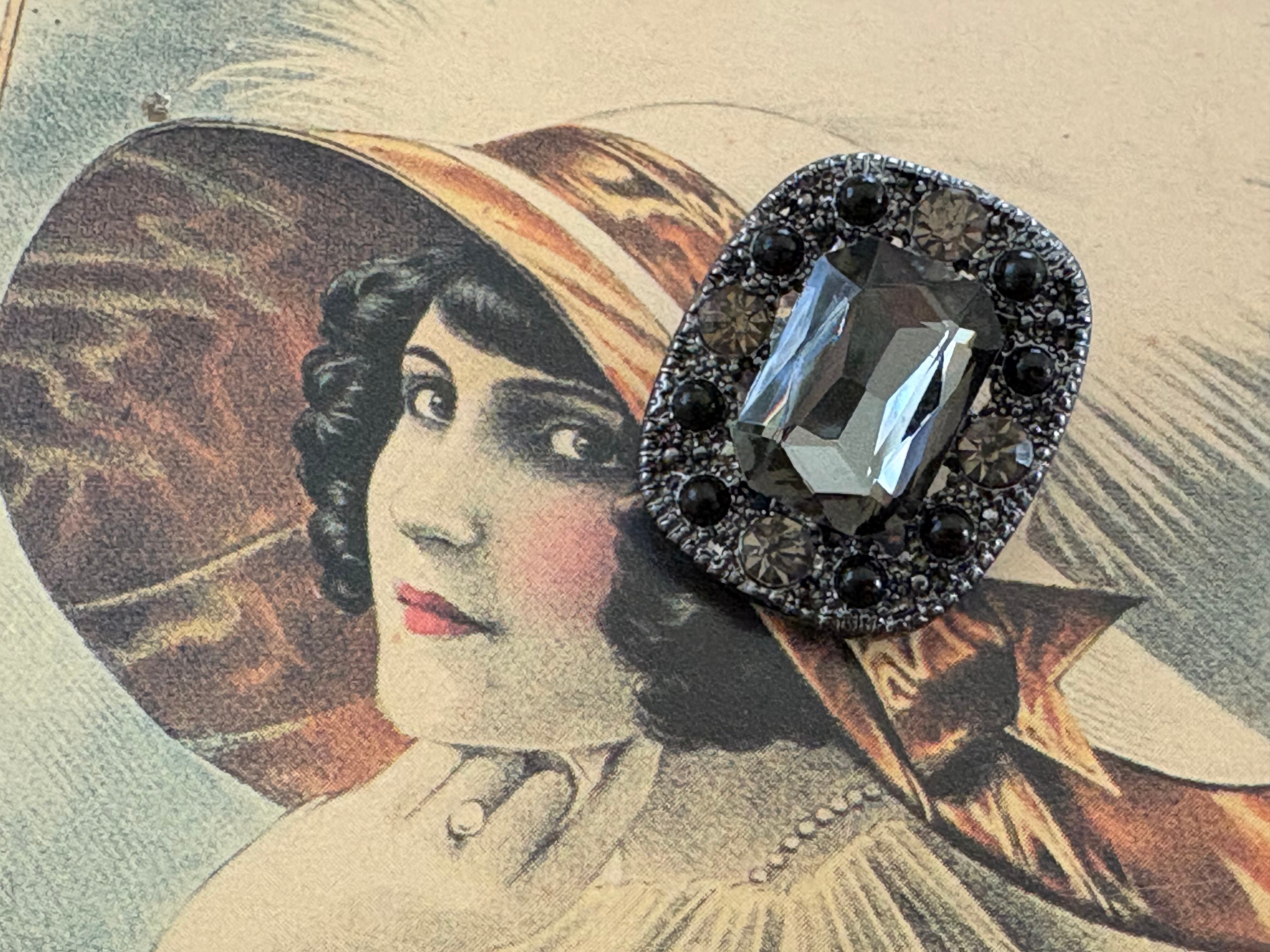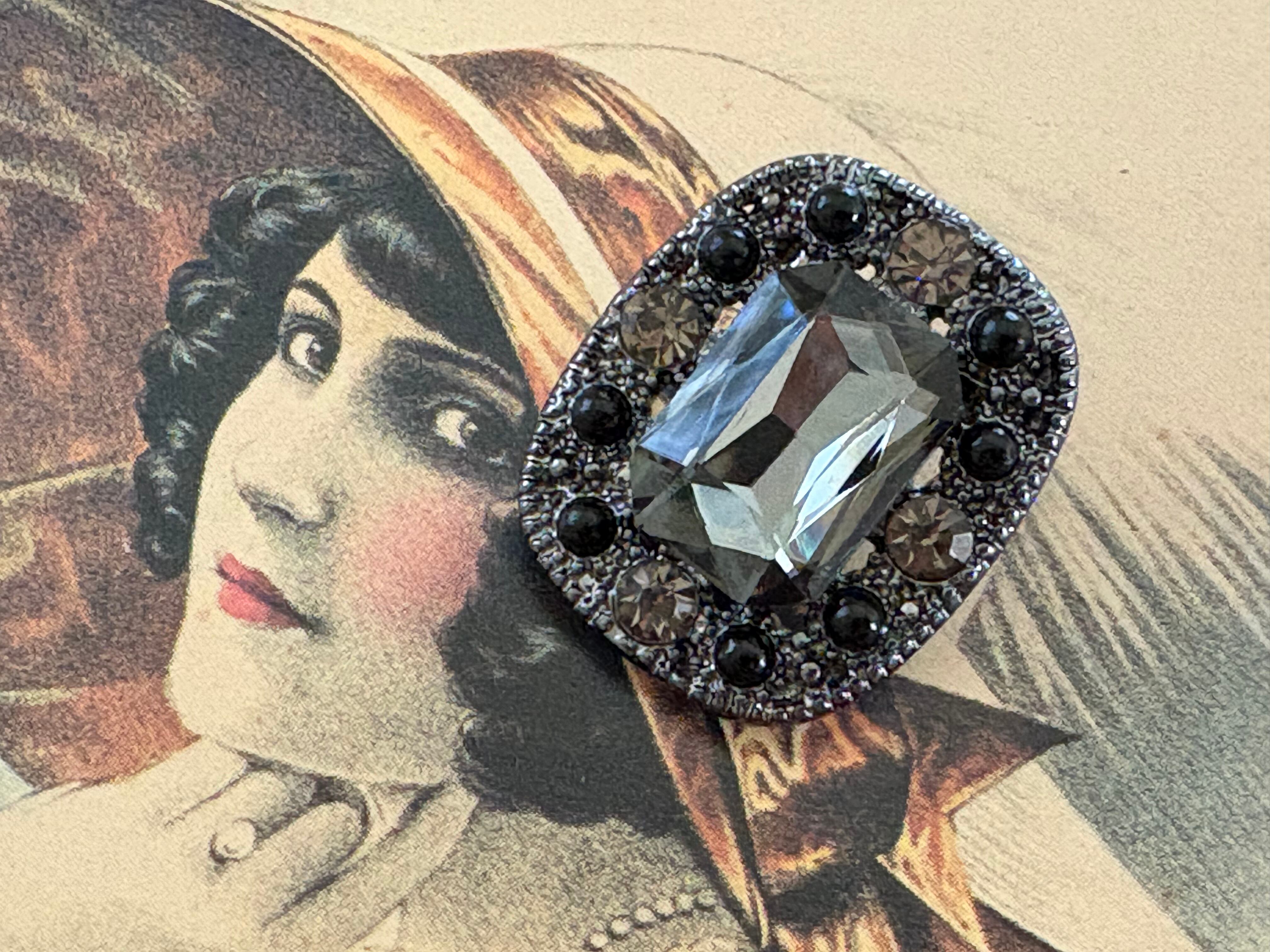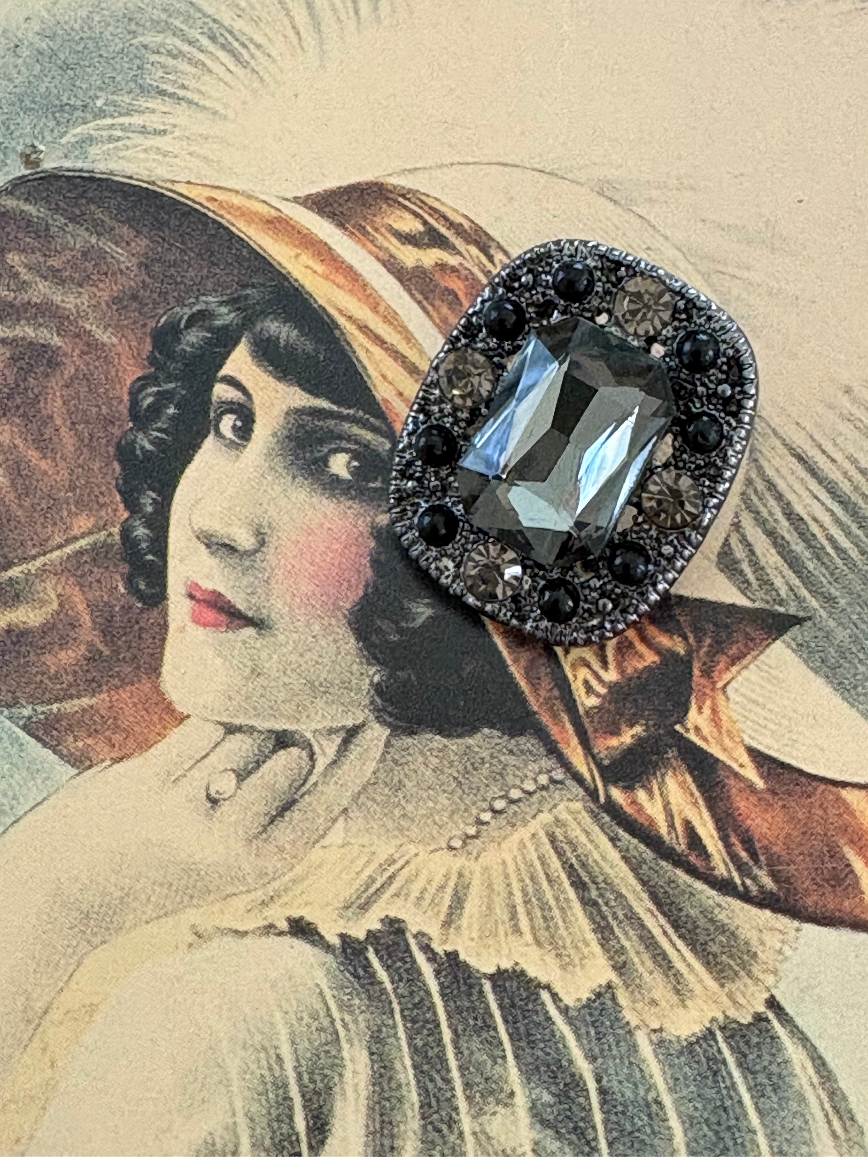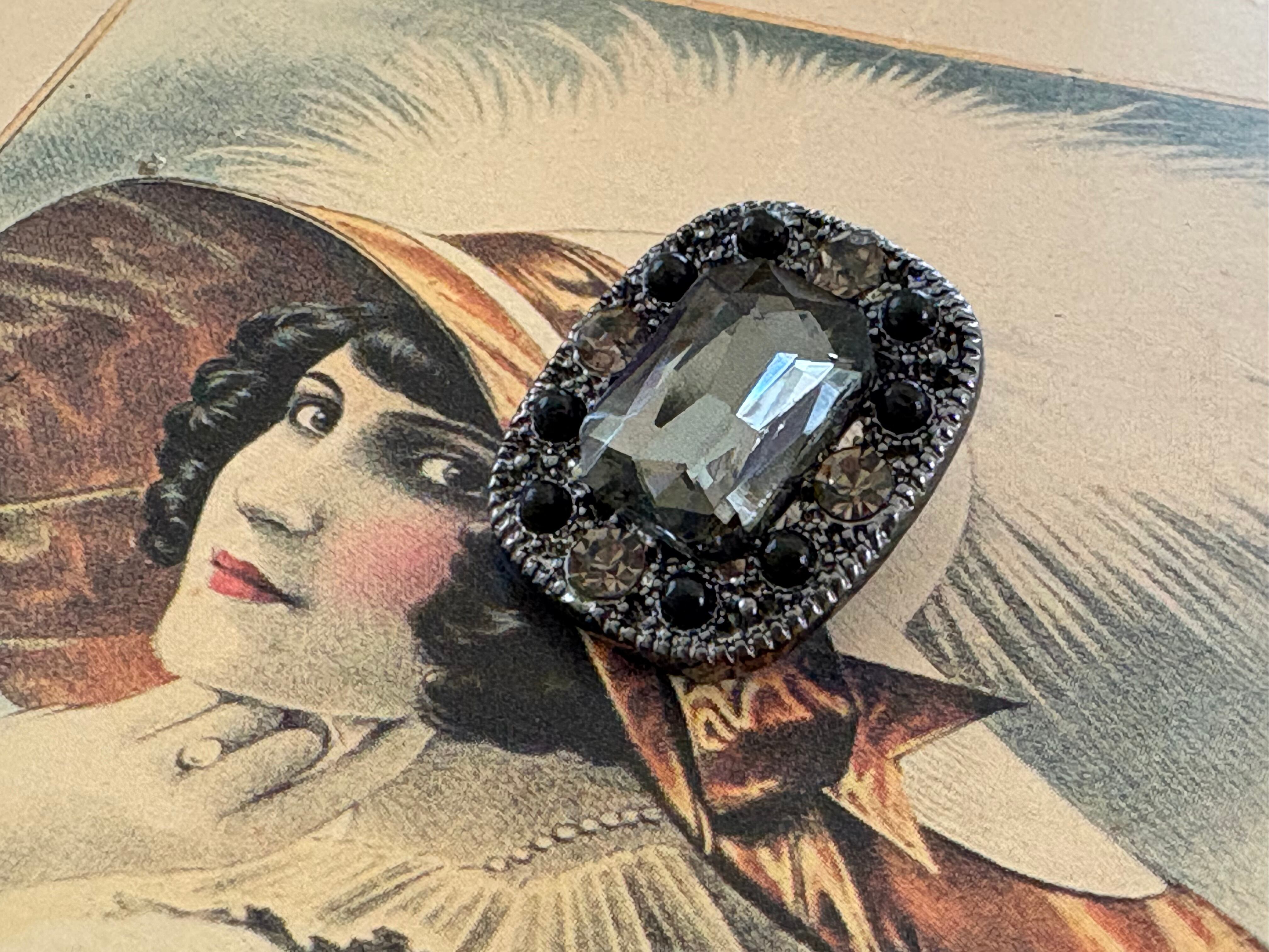 輸入デザインボタン 角なしレクタングル メタル×ビジュー×ストーン モノトーン アクセサリーパーツ デコレーション材