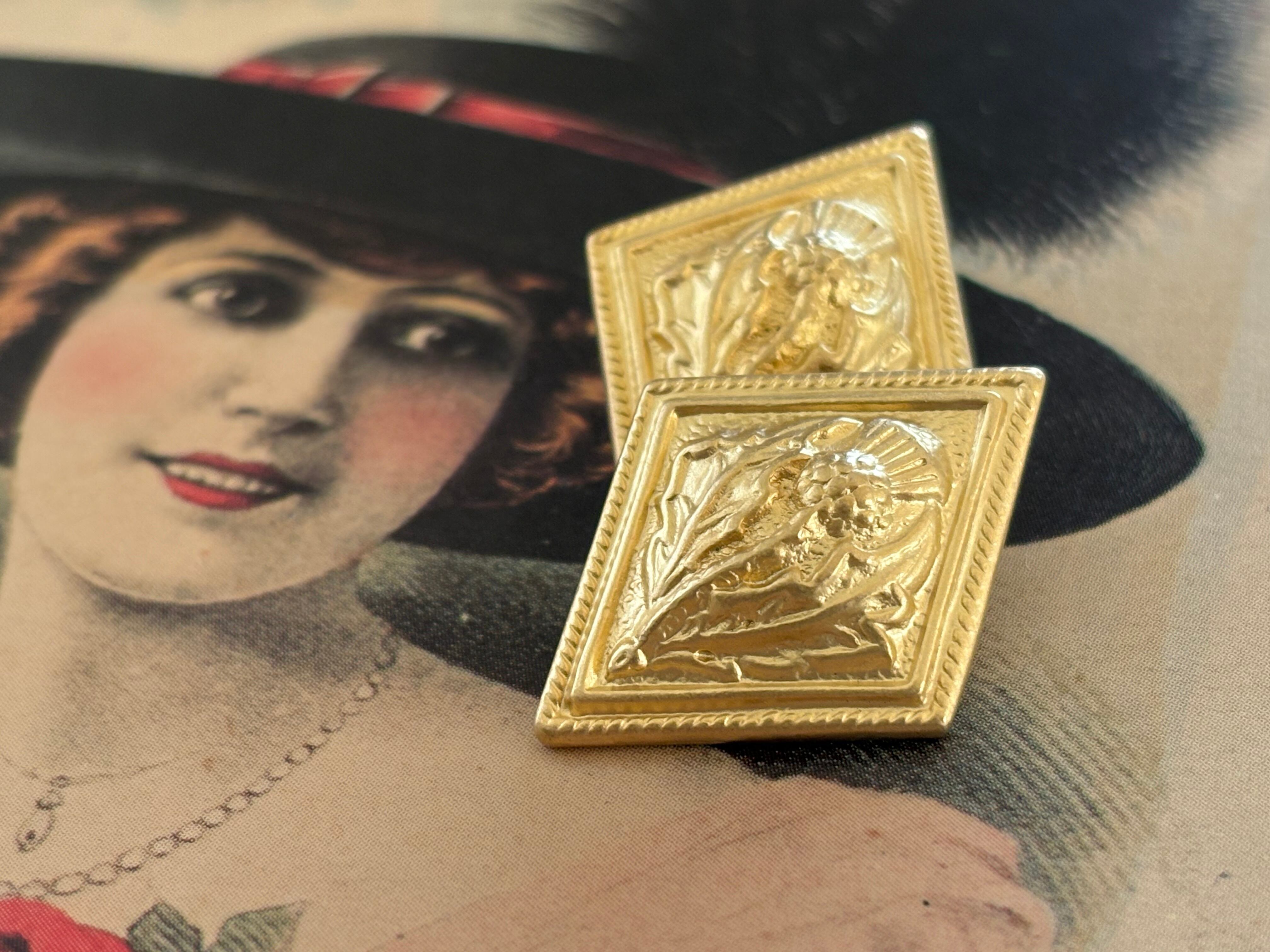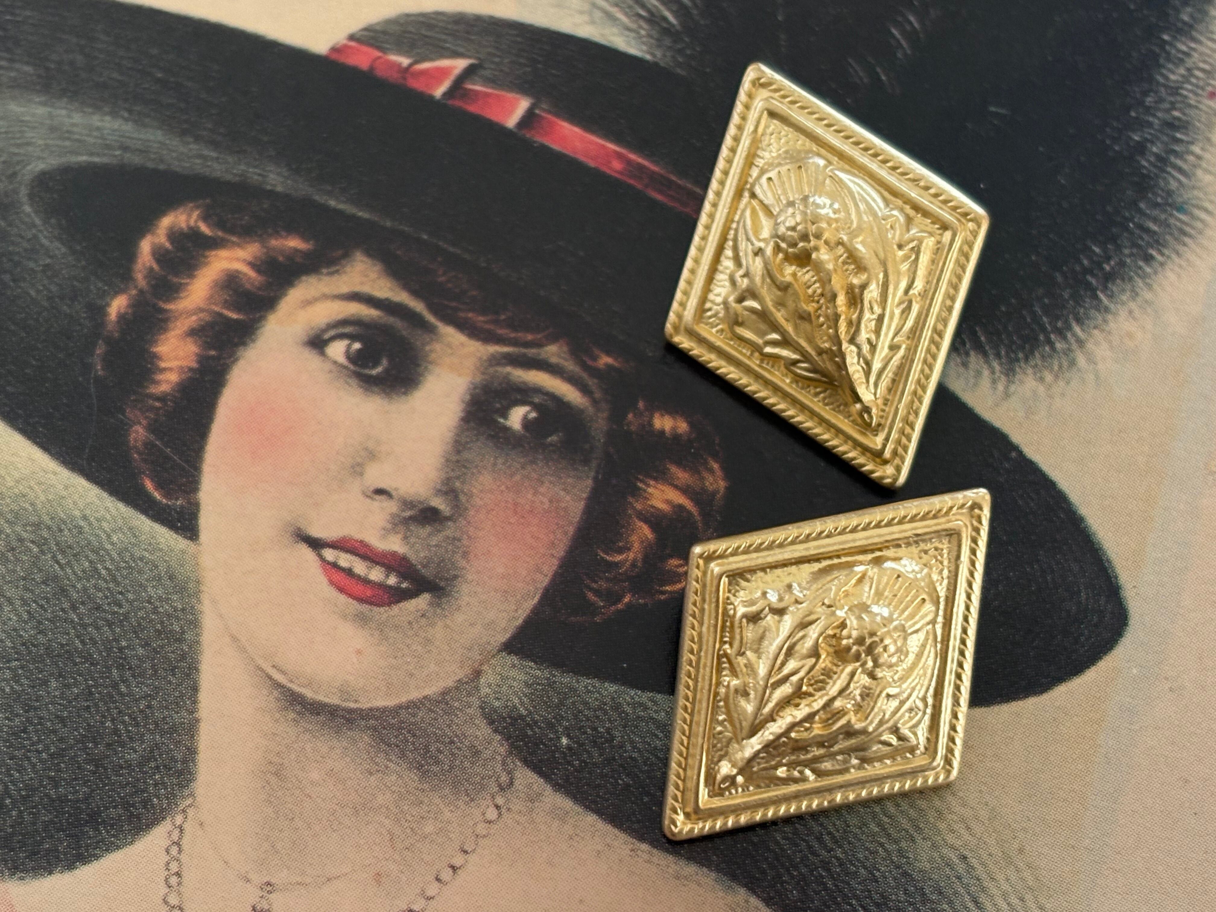 輸入デザインボタン アザミ 菱形 マットゴールド 27mm×20mm アクセサリーパーツ デコレーション材