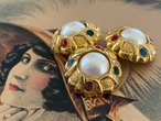 Import Vintage ボタン ドーム型 ゴールド カボション ストーン 17mm アクセサリーパーツ デコレーション材