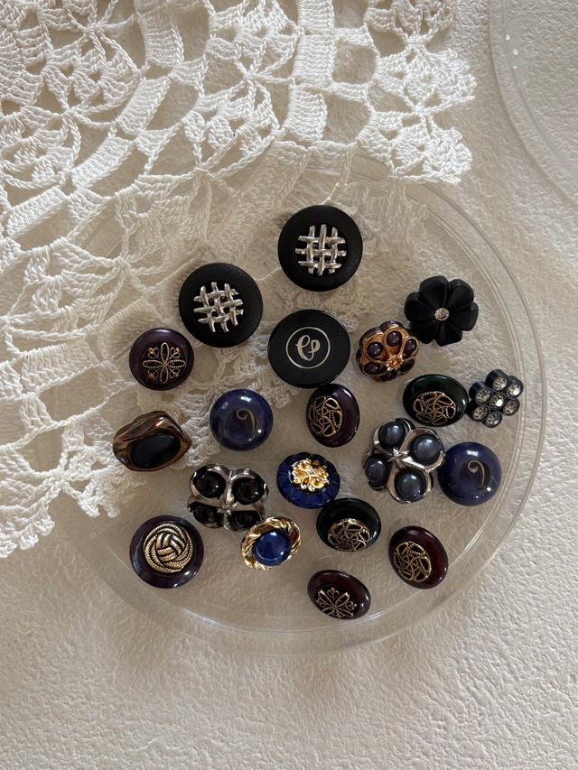 ※インポート、ヴィンテージボタンはもともとキズ、色むら、バリ、サイズの不揃い、多少の汚れなどが見られる場合があります。