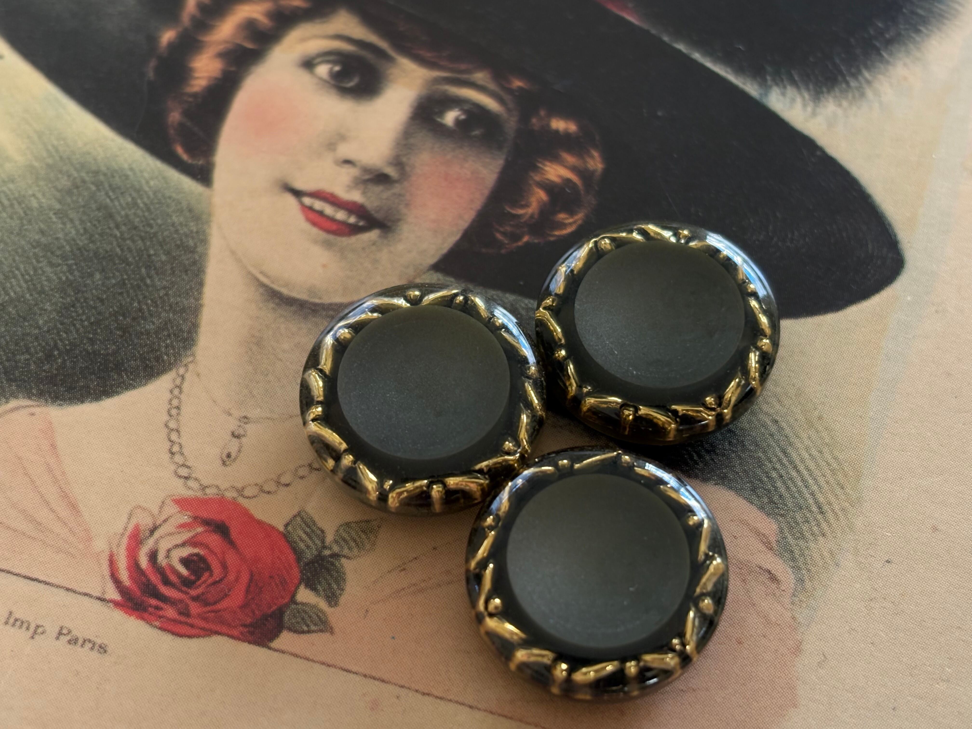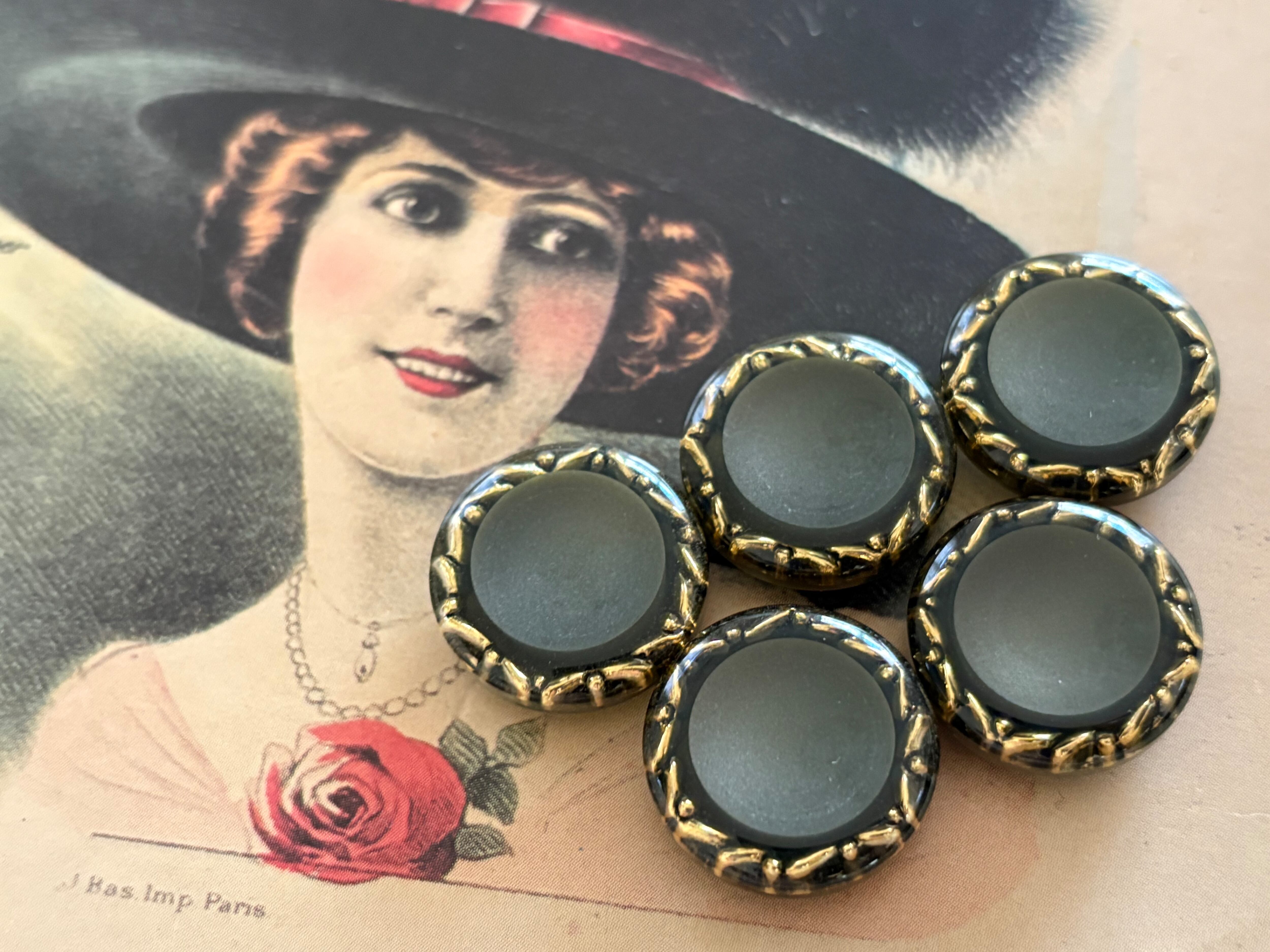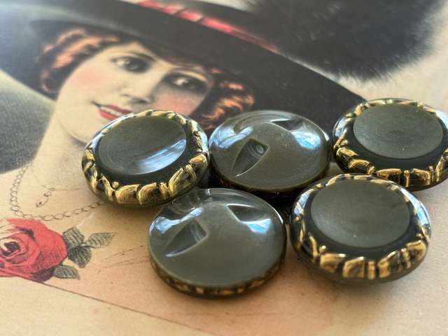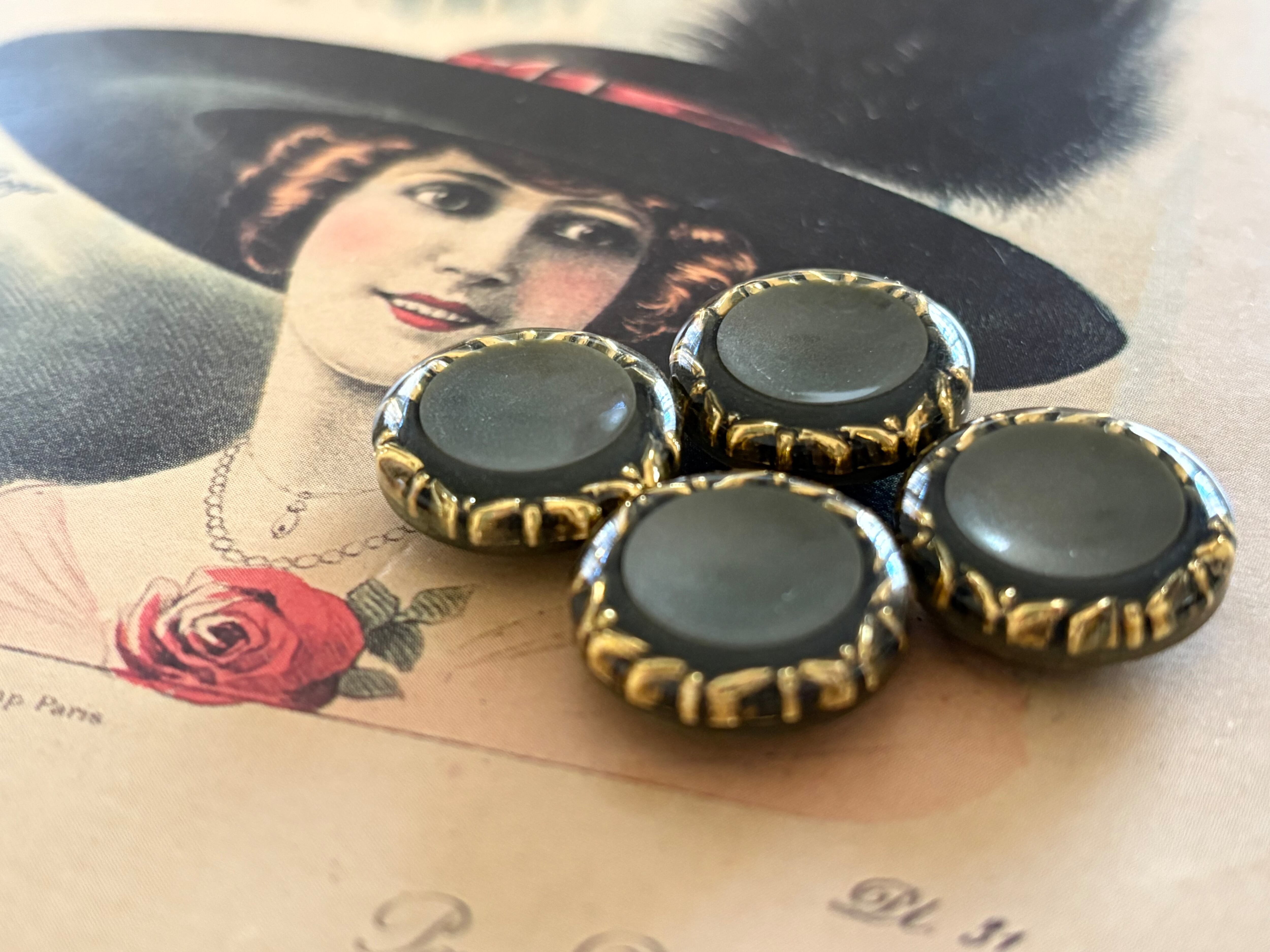 Japanese Vintage ボタン 17mm グレー×ゴールド カボション 樹脂ボタン 昭和レトロ アクセサリーパーツ 装飾材 カルトナージュ