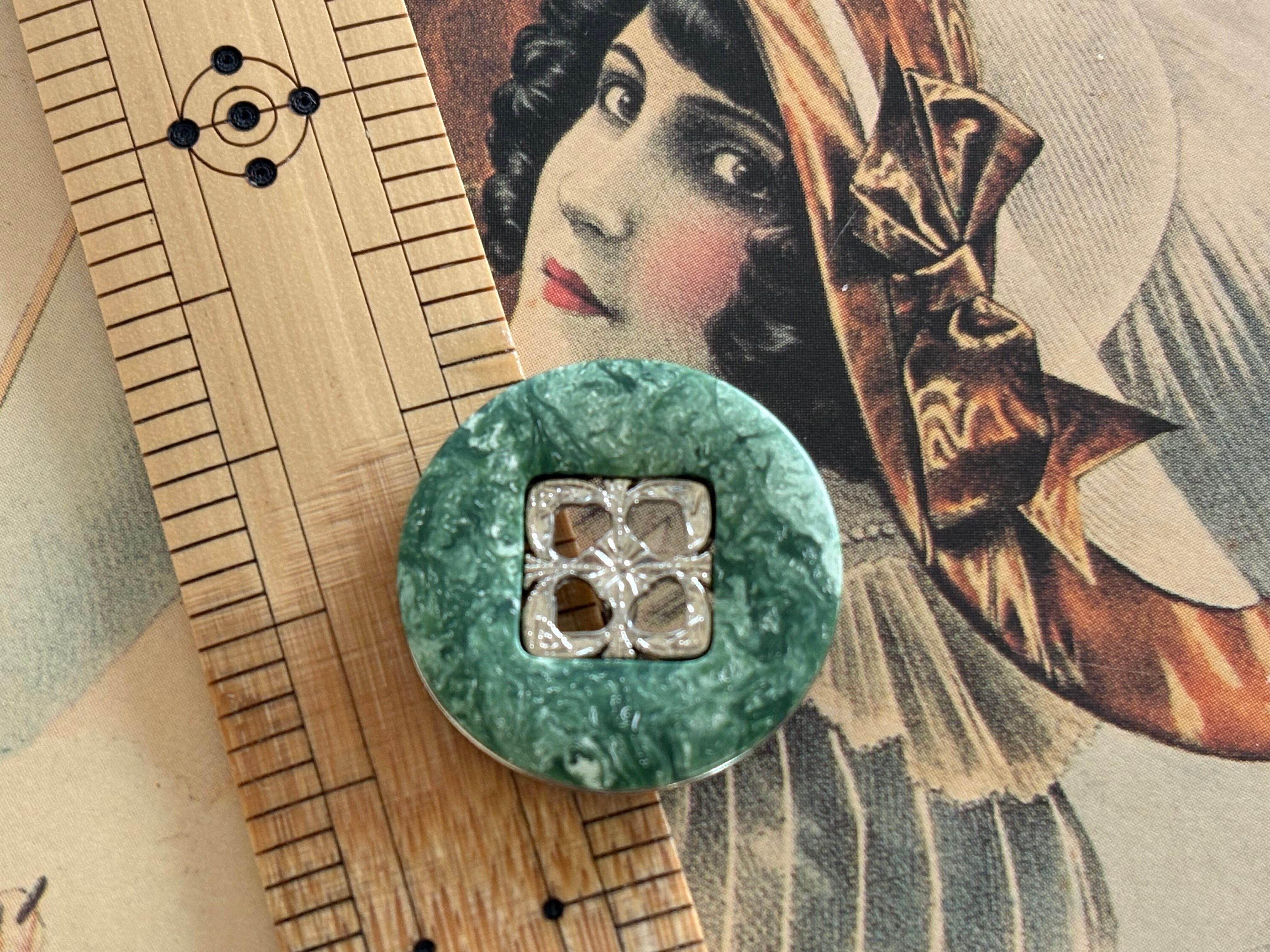 輸入デザインボタン メタルボタン 24mm マーブル調 レッド/グリーン アクセサリーパーツ カルトナージュ デコレーション材