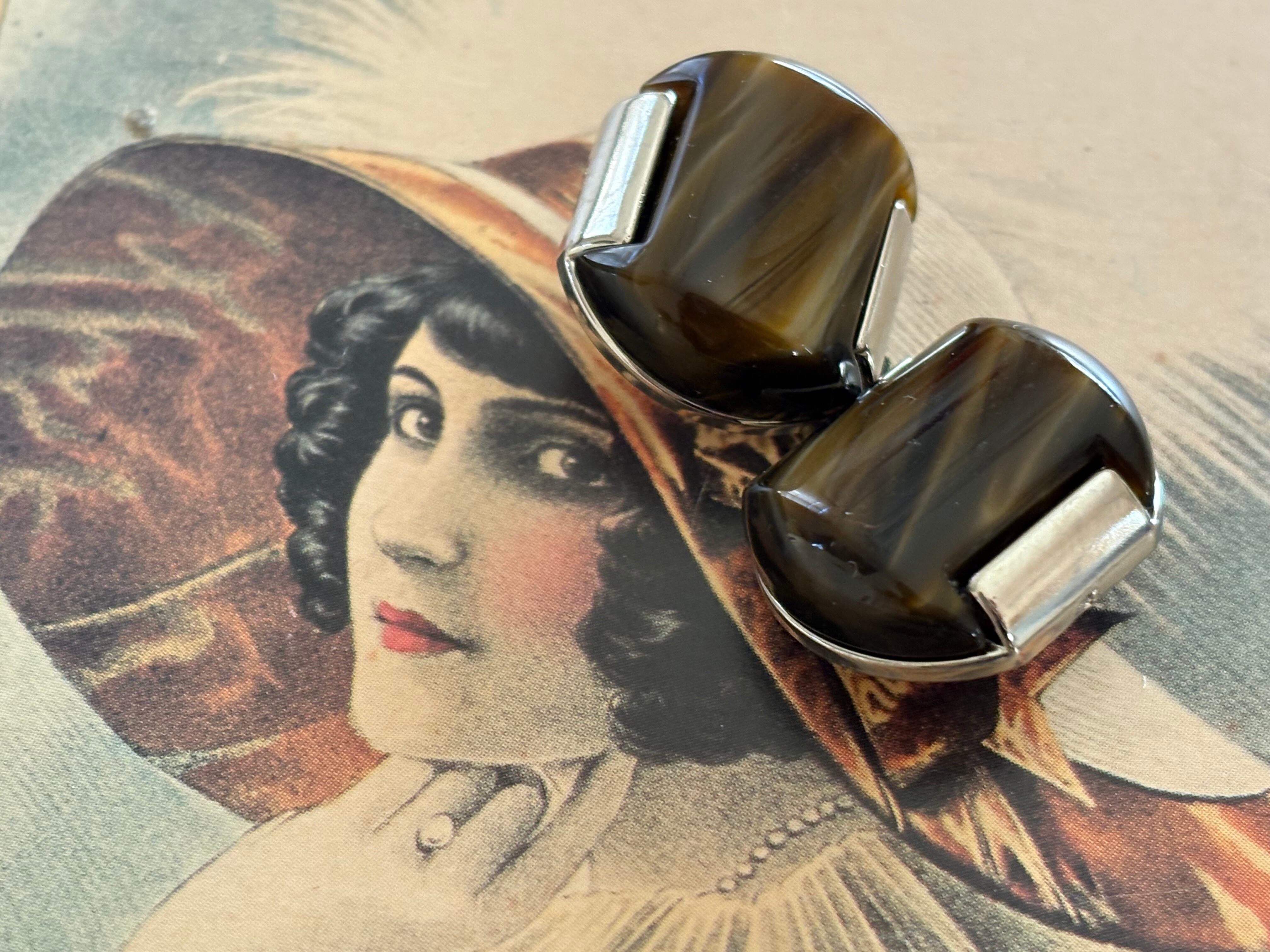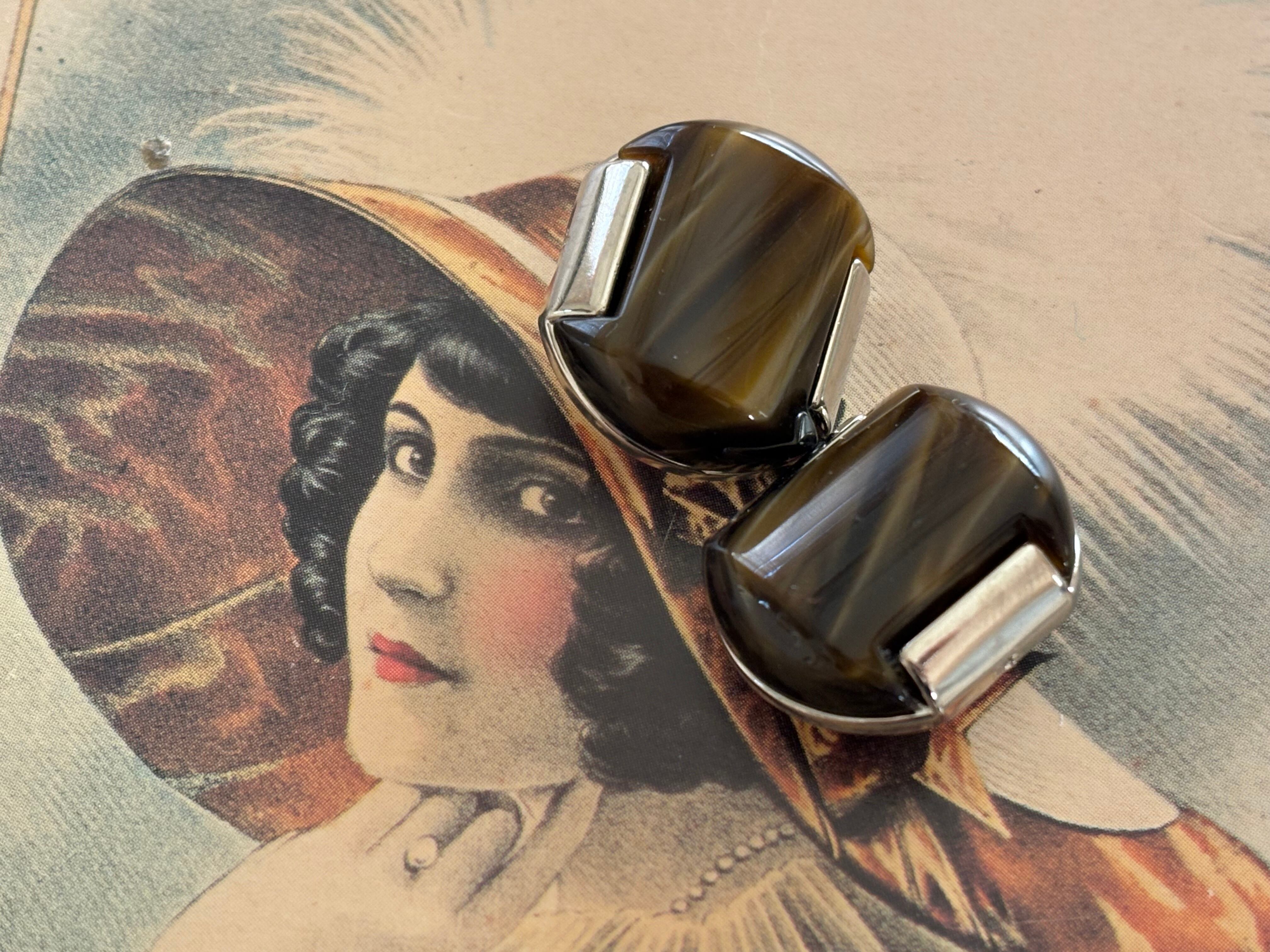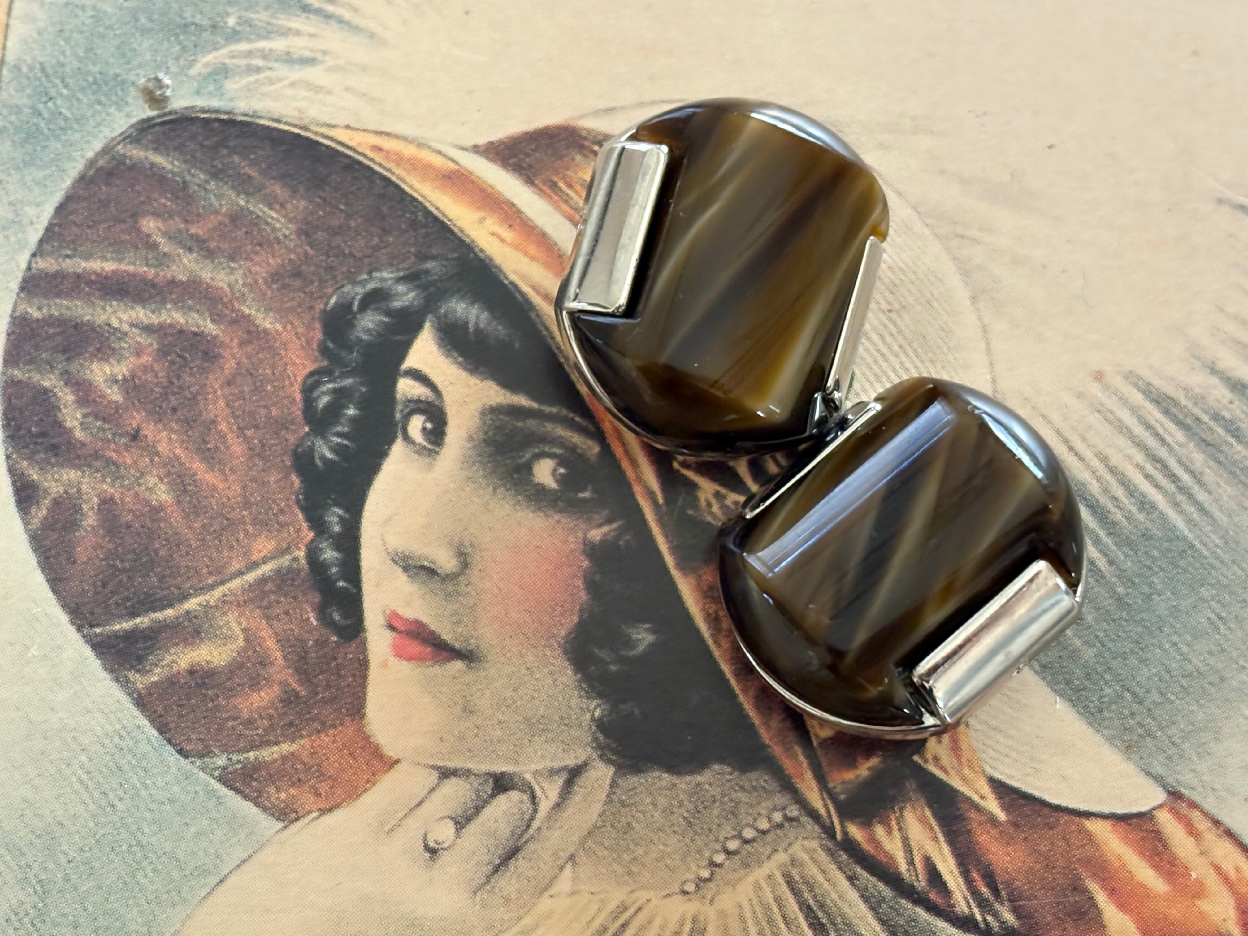 Japanese Vintage ヴィンテージボタン メタル×カボション マーブル調 ダークブラウン 20mm アクセサリーパーツ 装飾材