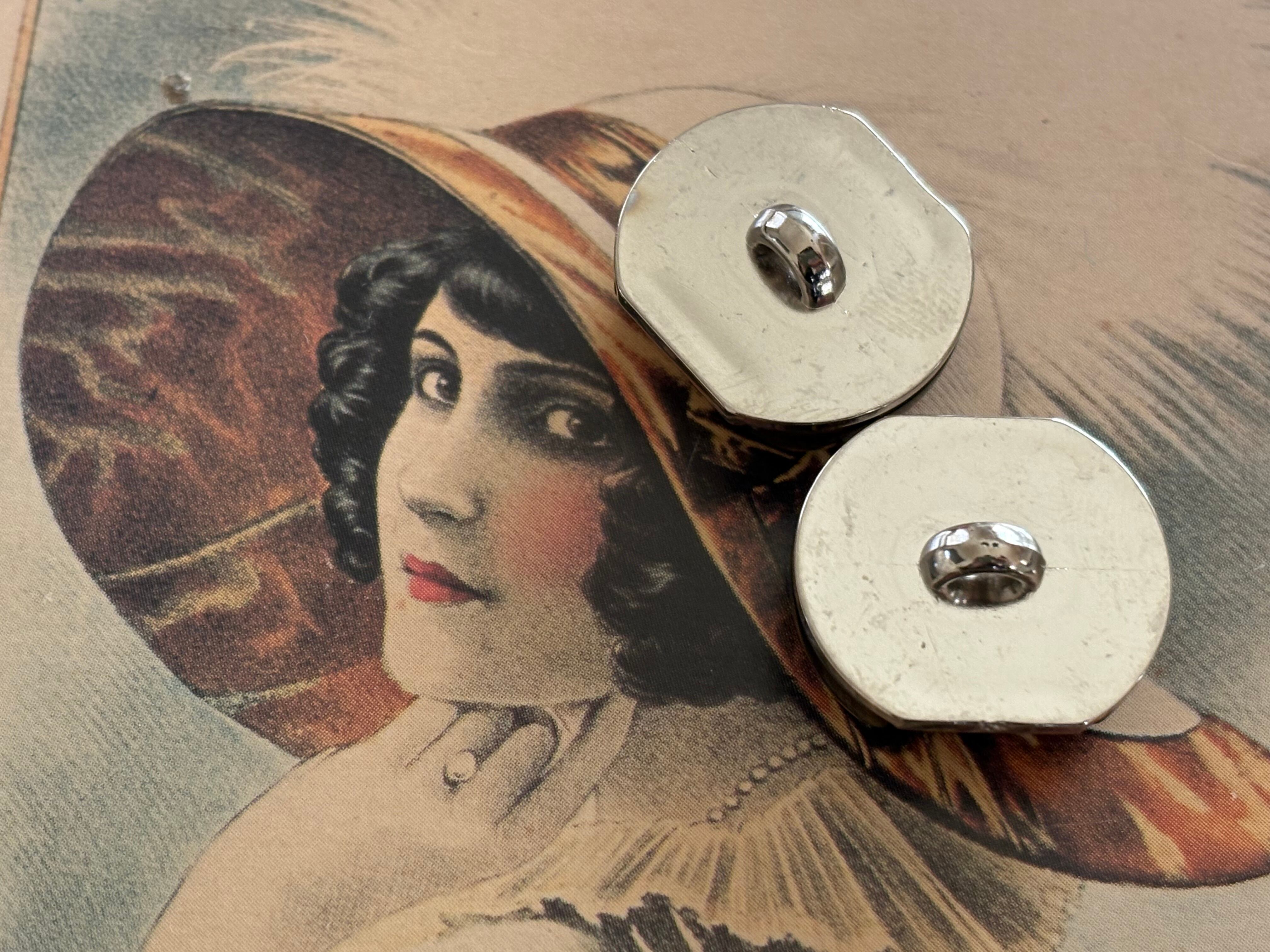 お洋服のボタンの付け替えには勿論のことアクセサリーパーツとして、カルトナージュのデコレーション材になど様々な用途でお役立て下さいませ。
