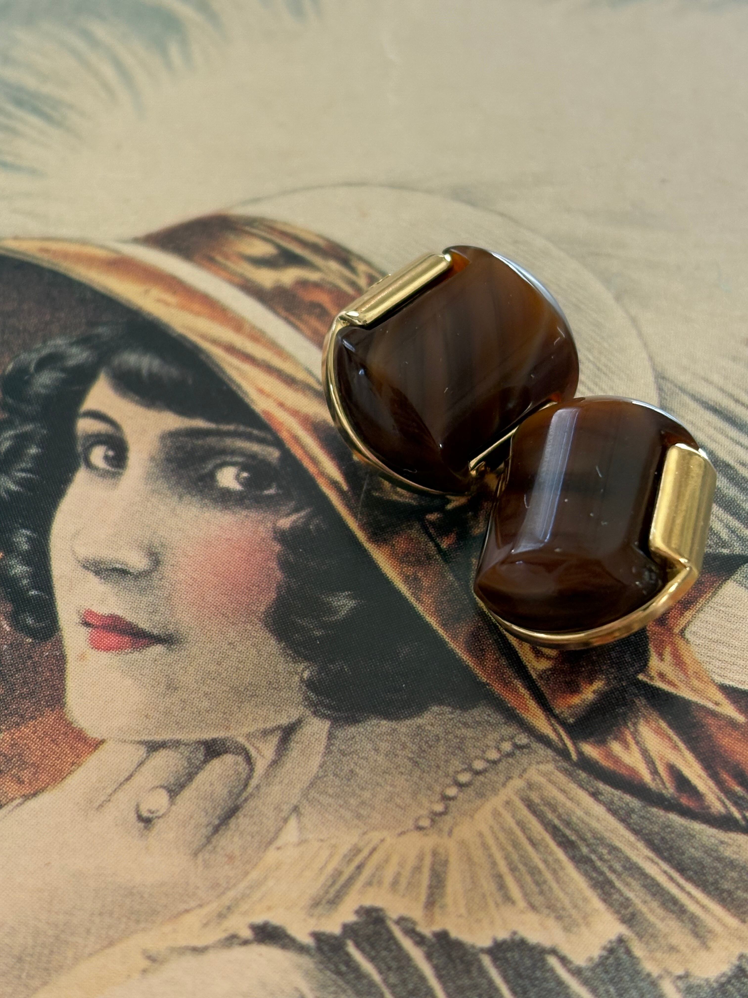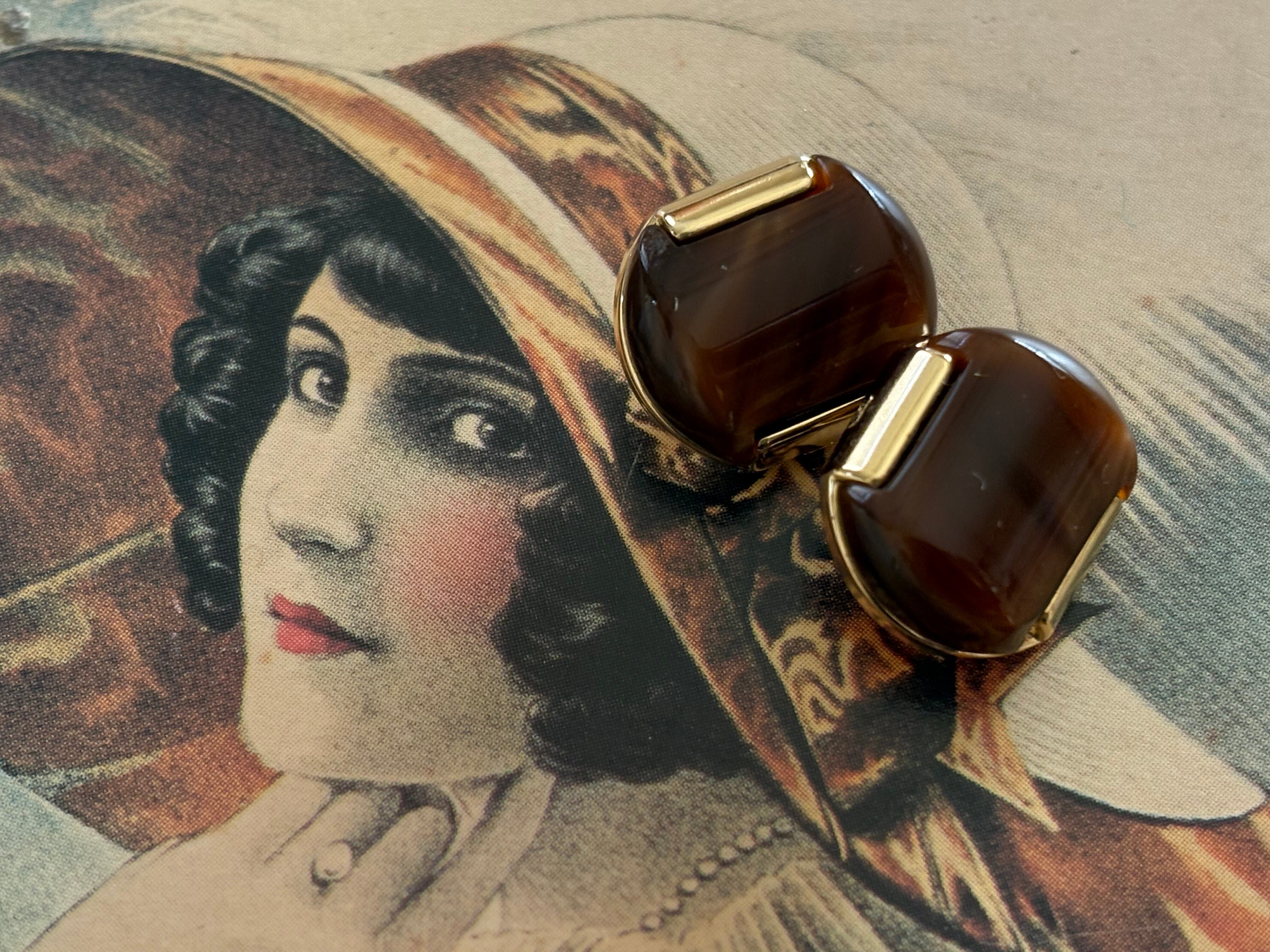Japanese Vintage ヴィンテージボタン メタル×カボション マーブル調 ブラウン 14mm アクセサリーパーツ 装飾材