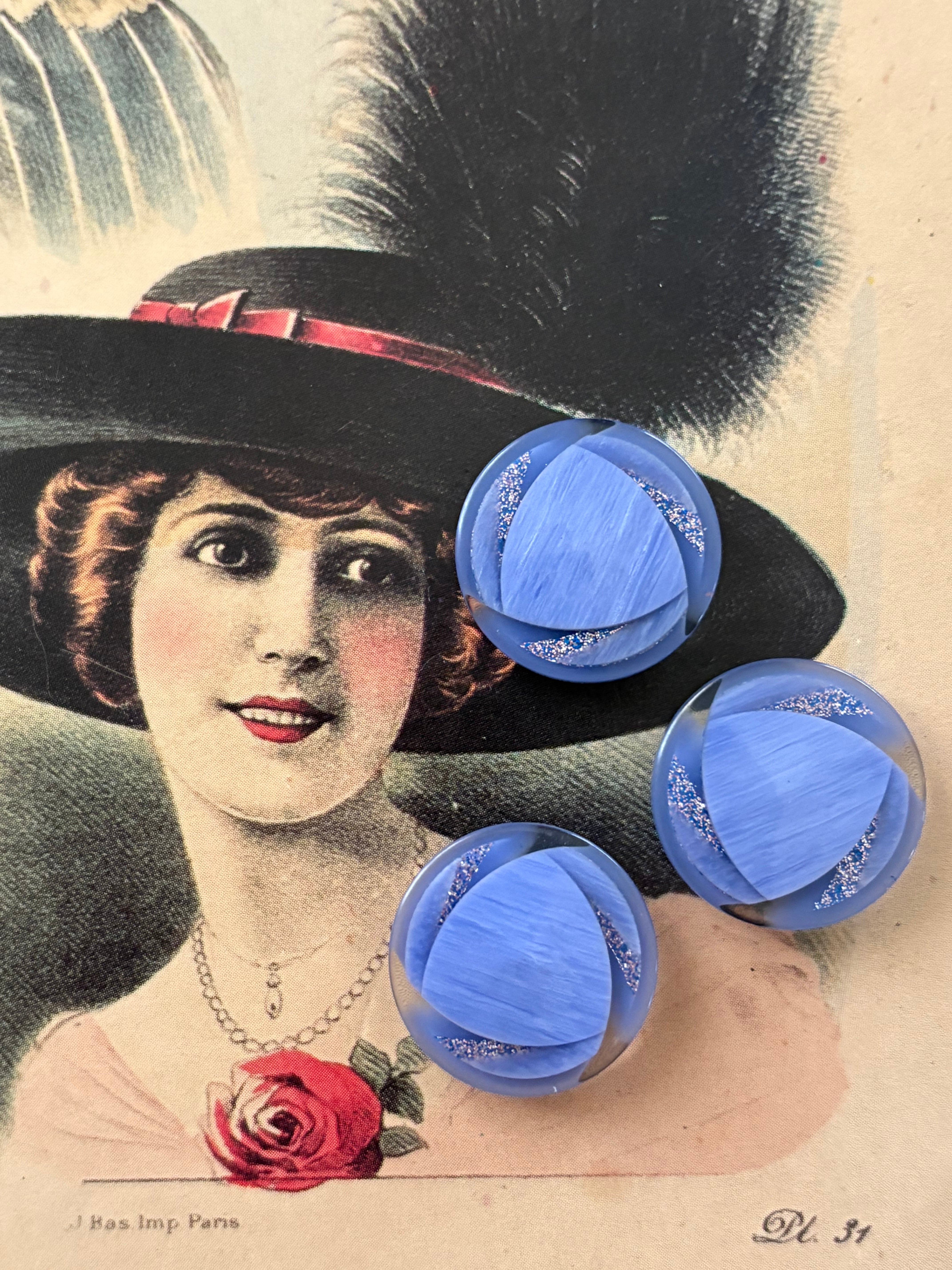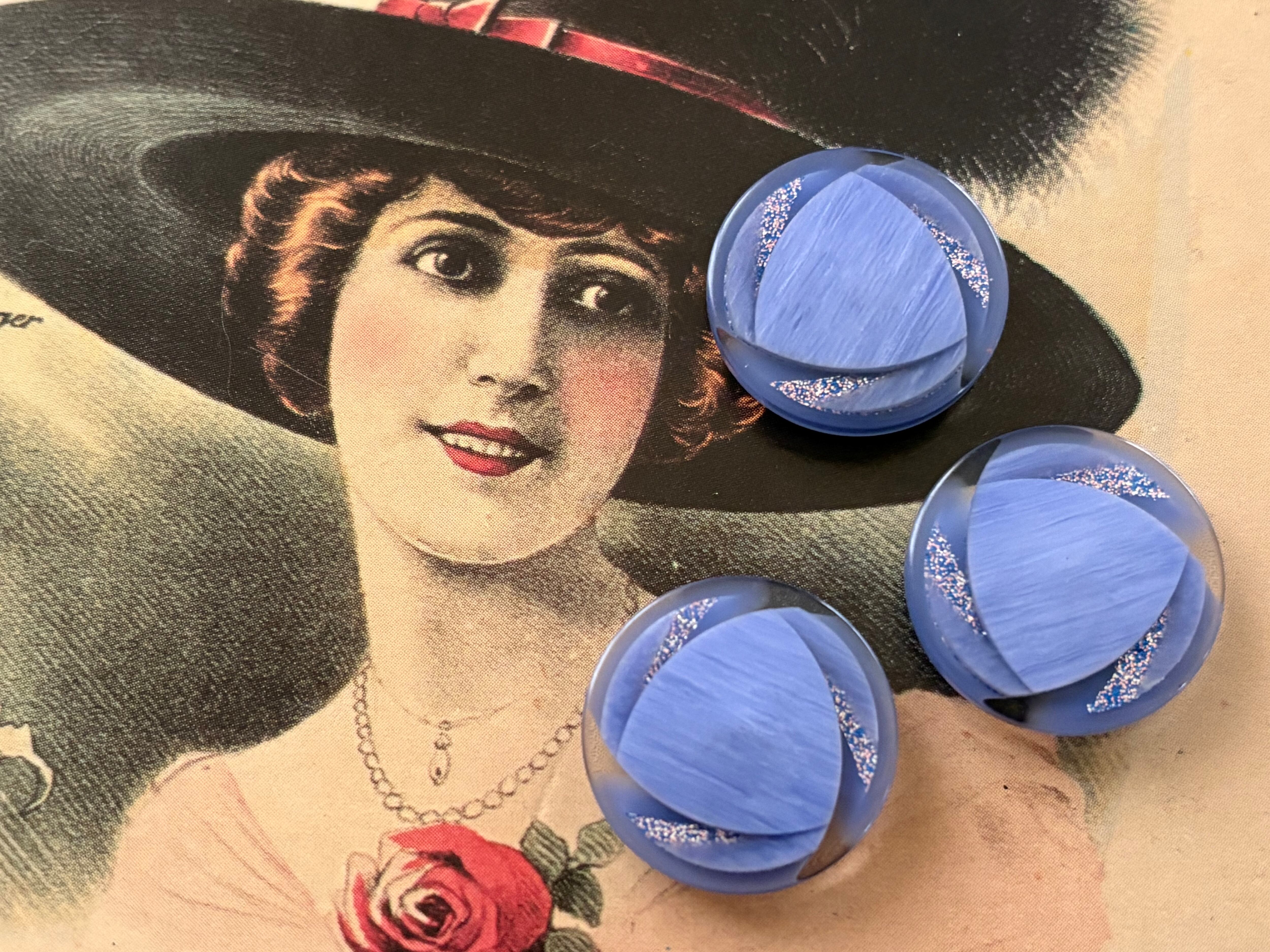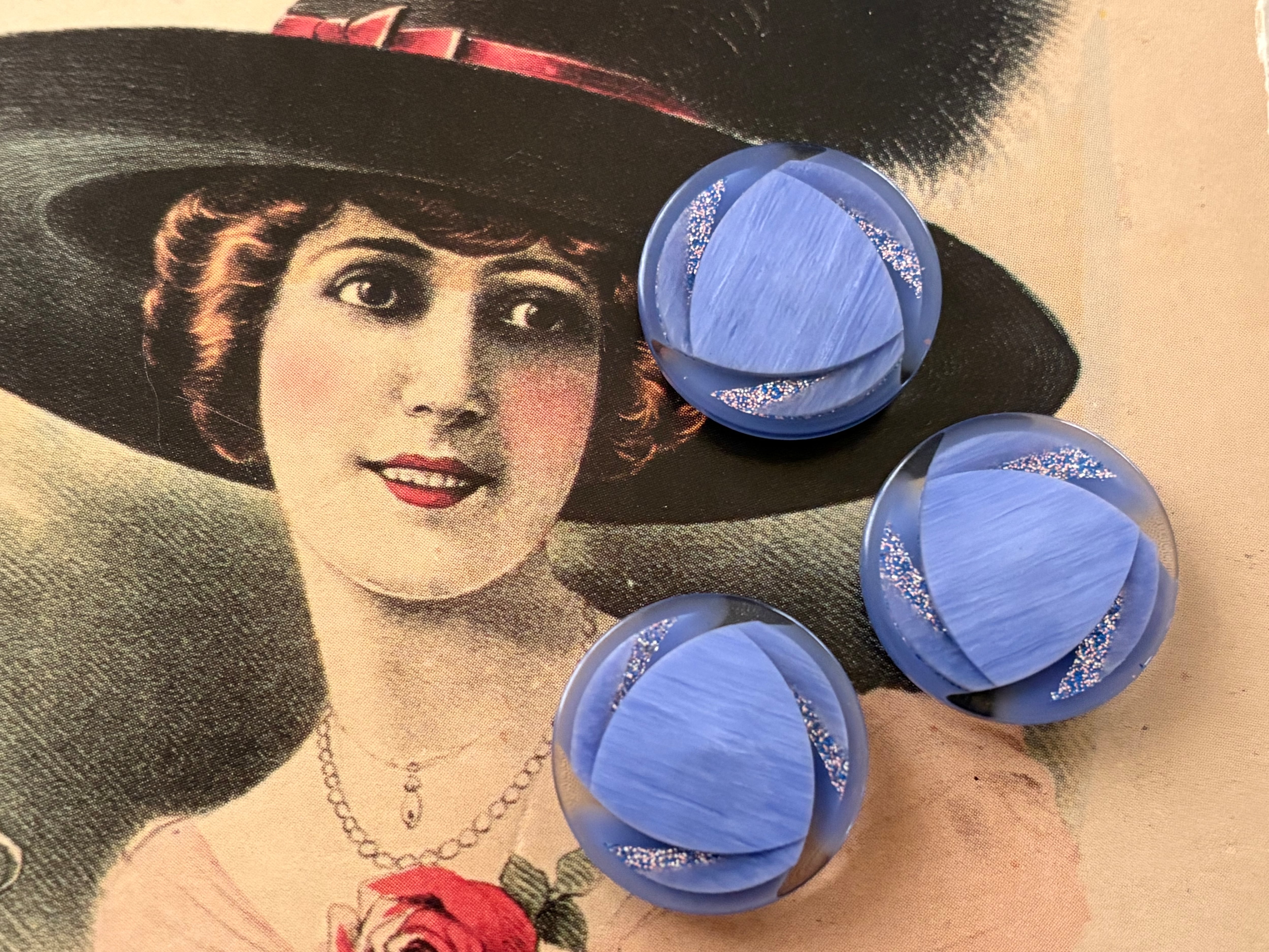 Japanese Vintage ボタン 青紫系 20mm グリッター マーブル 昭和レトロ アクセサリーパーツ 装飾材 カルトナージュ