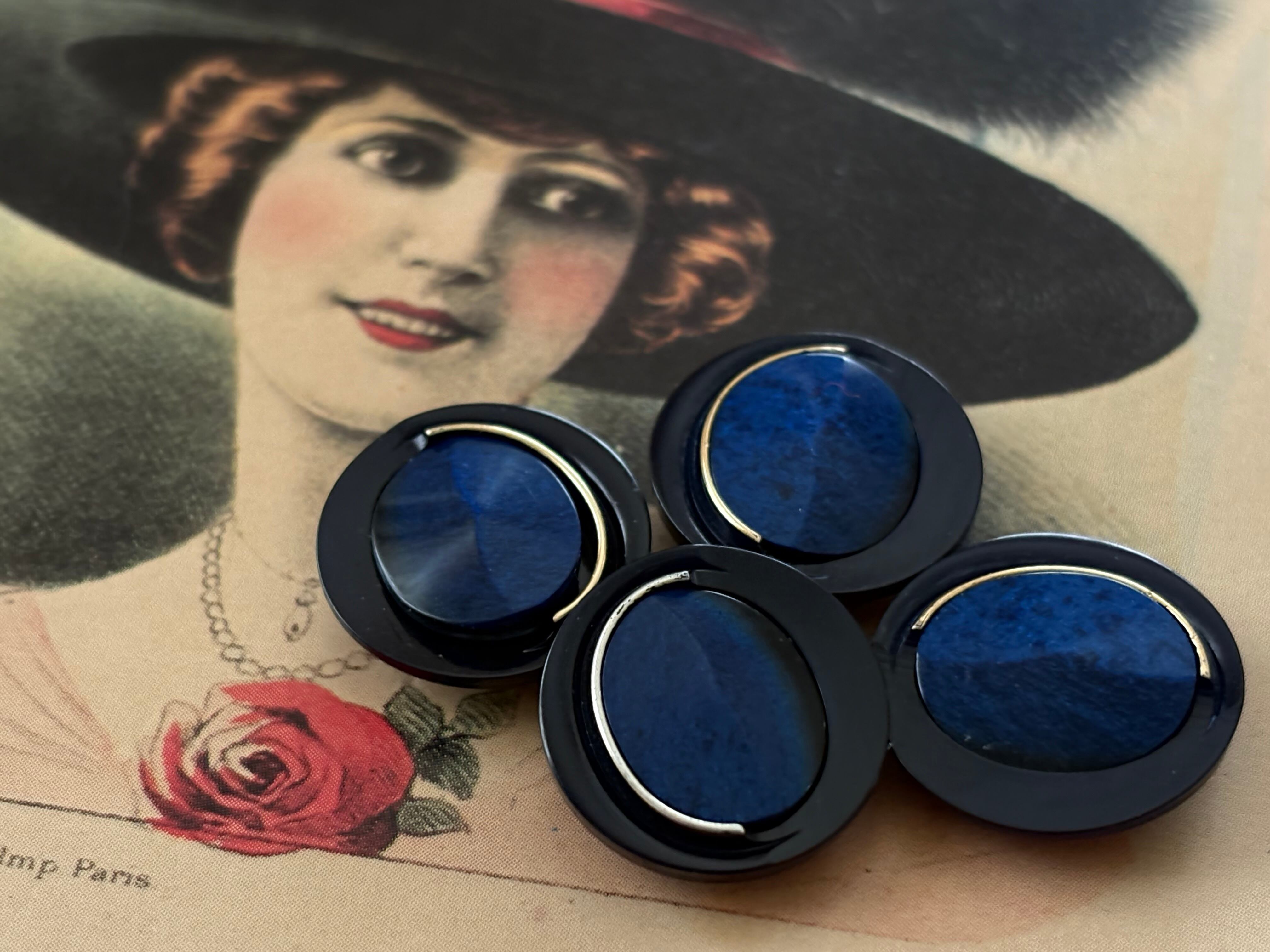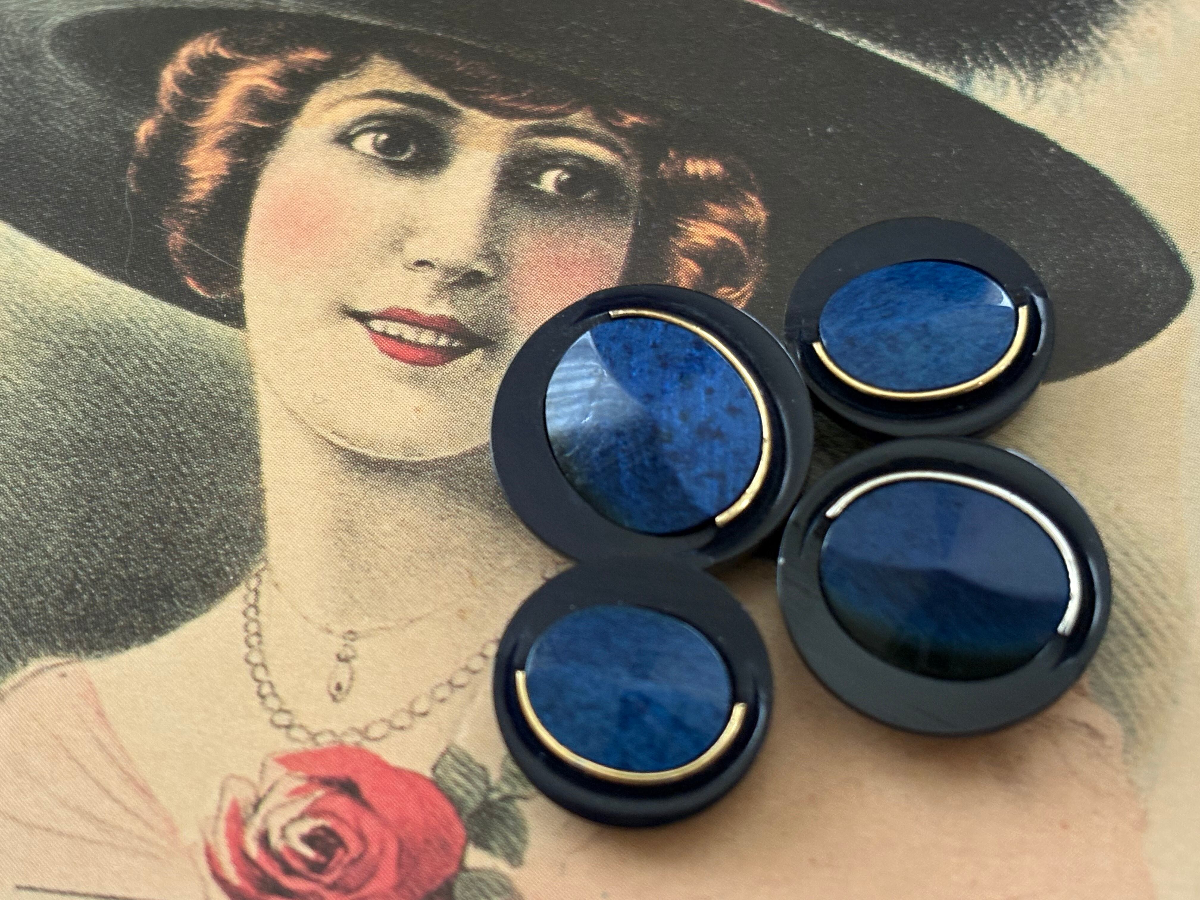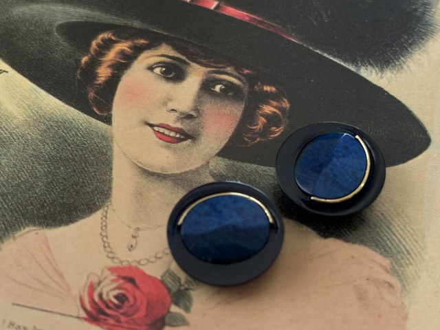Japanese Vintage ボタン 18mm ネイビー カボション 昭和レトロ アクセサリーパーツ 装飾材 カルトナージュ