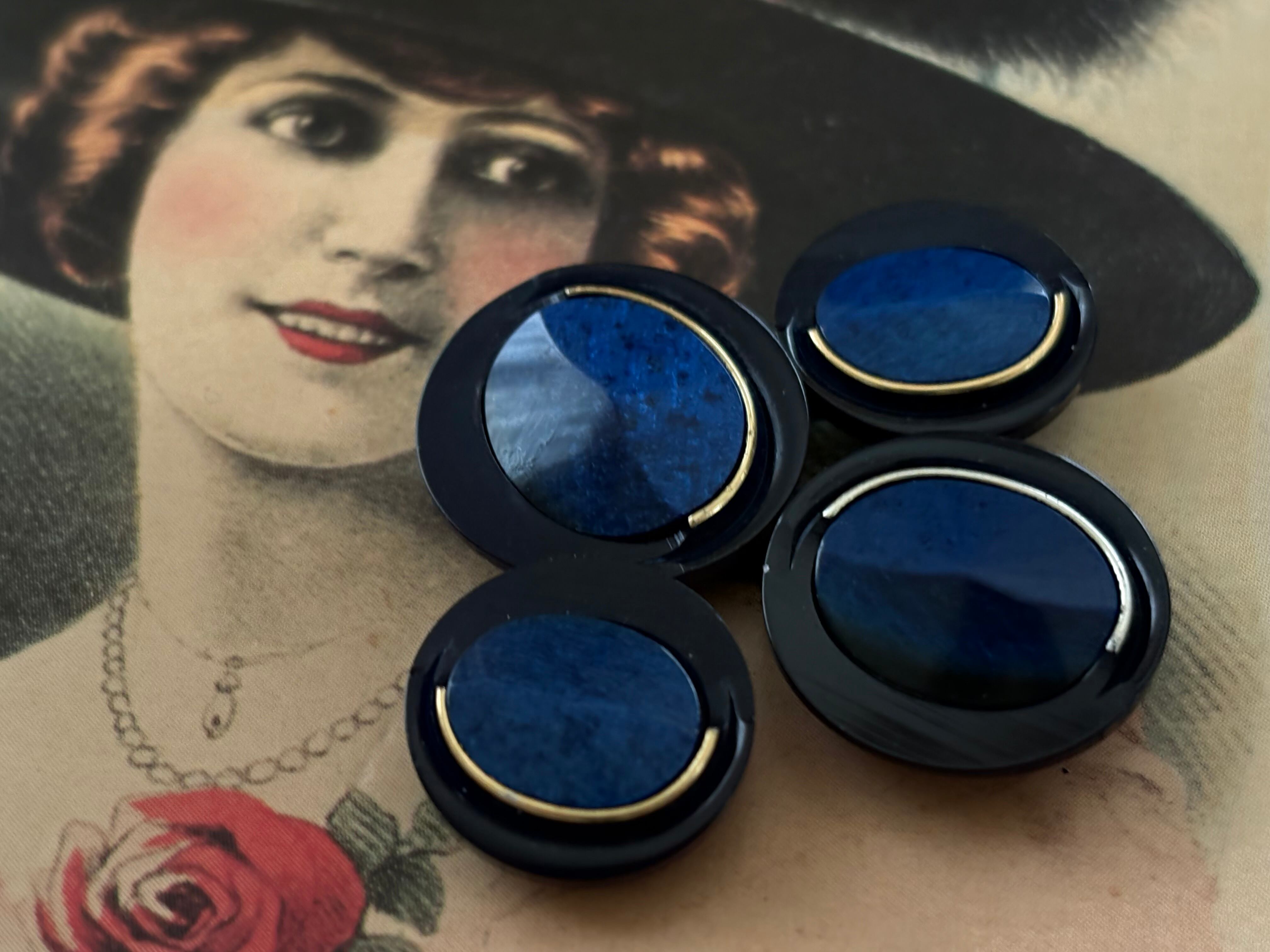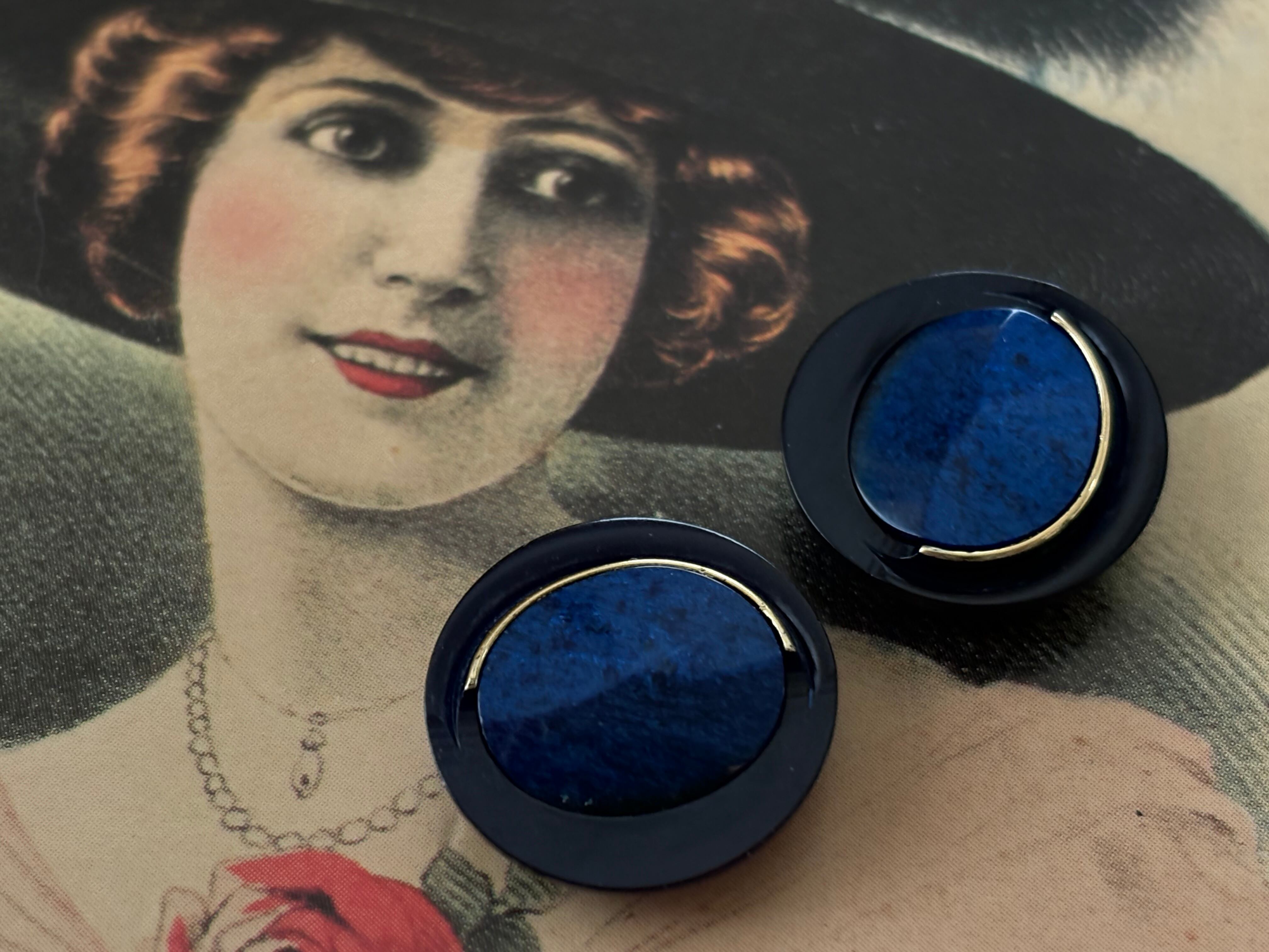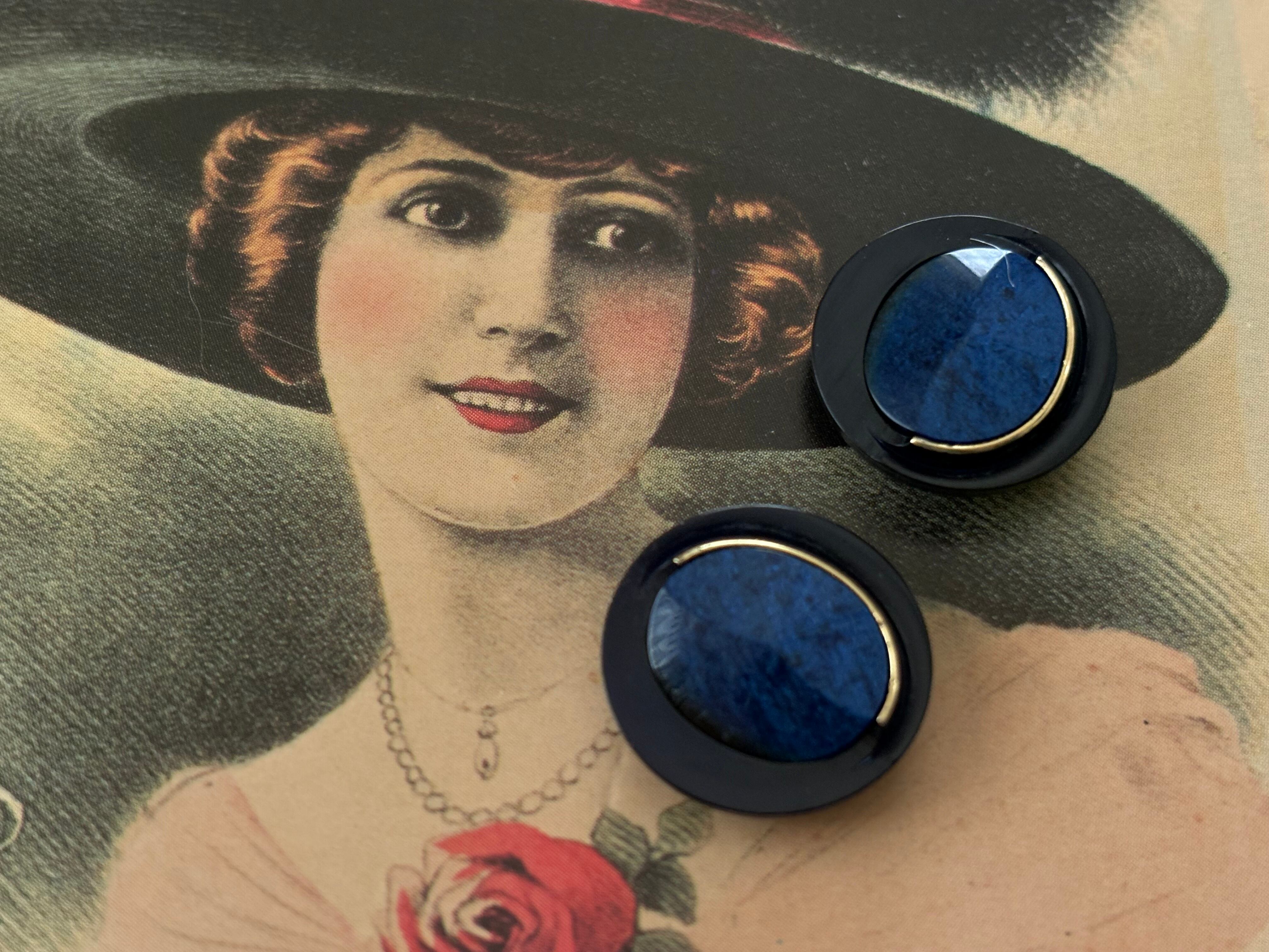 Japanese Vintage ボタン 18mm ネイビー カボション 昭和レトロ アクセサリーパーツ 装飾材 カルトナージュ
