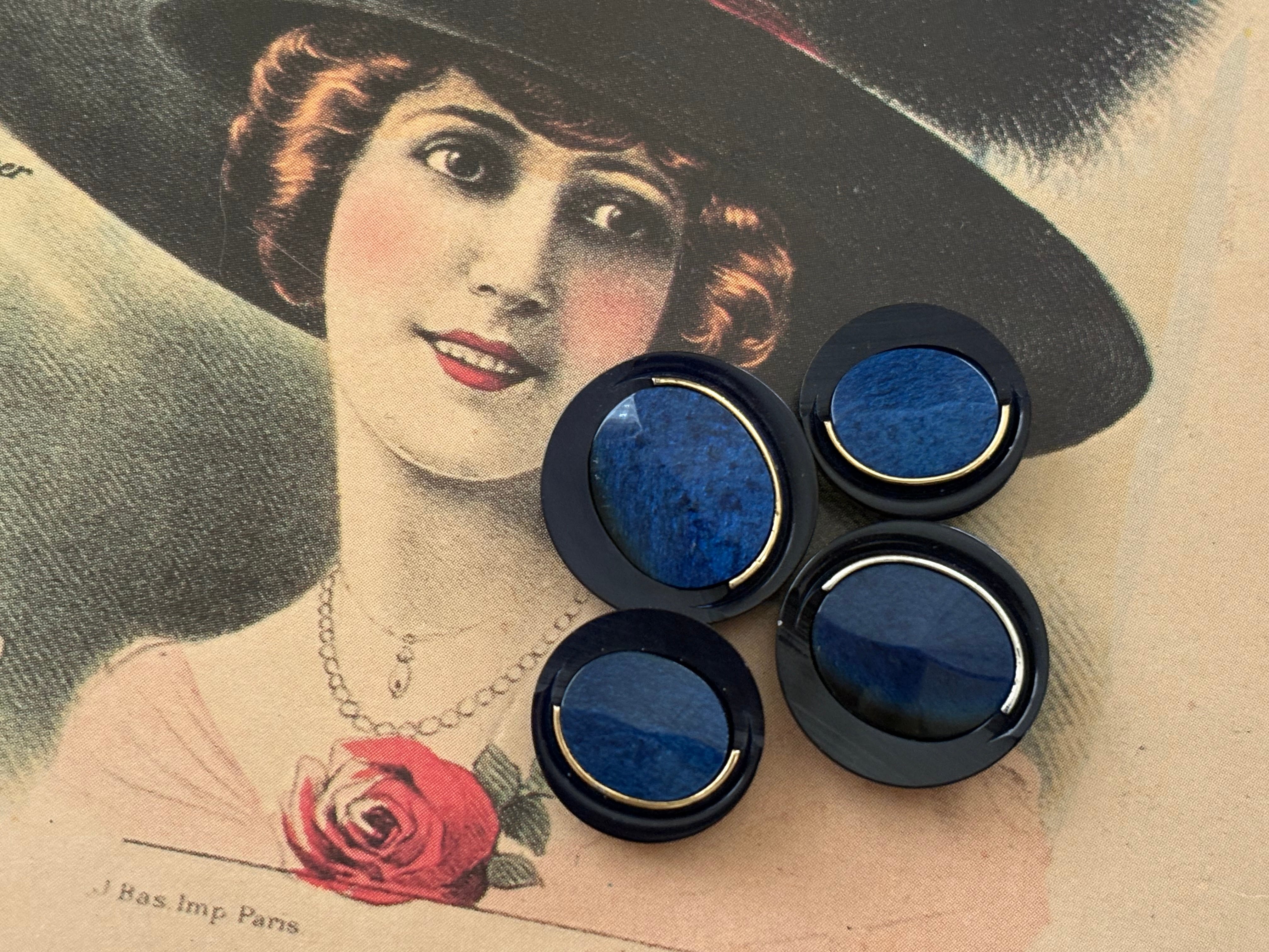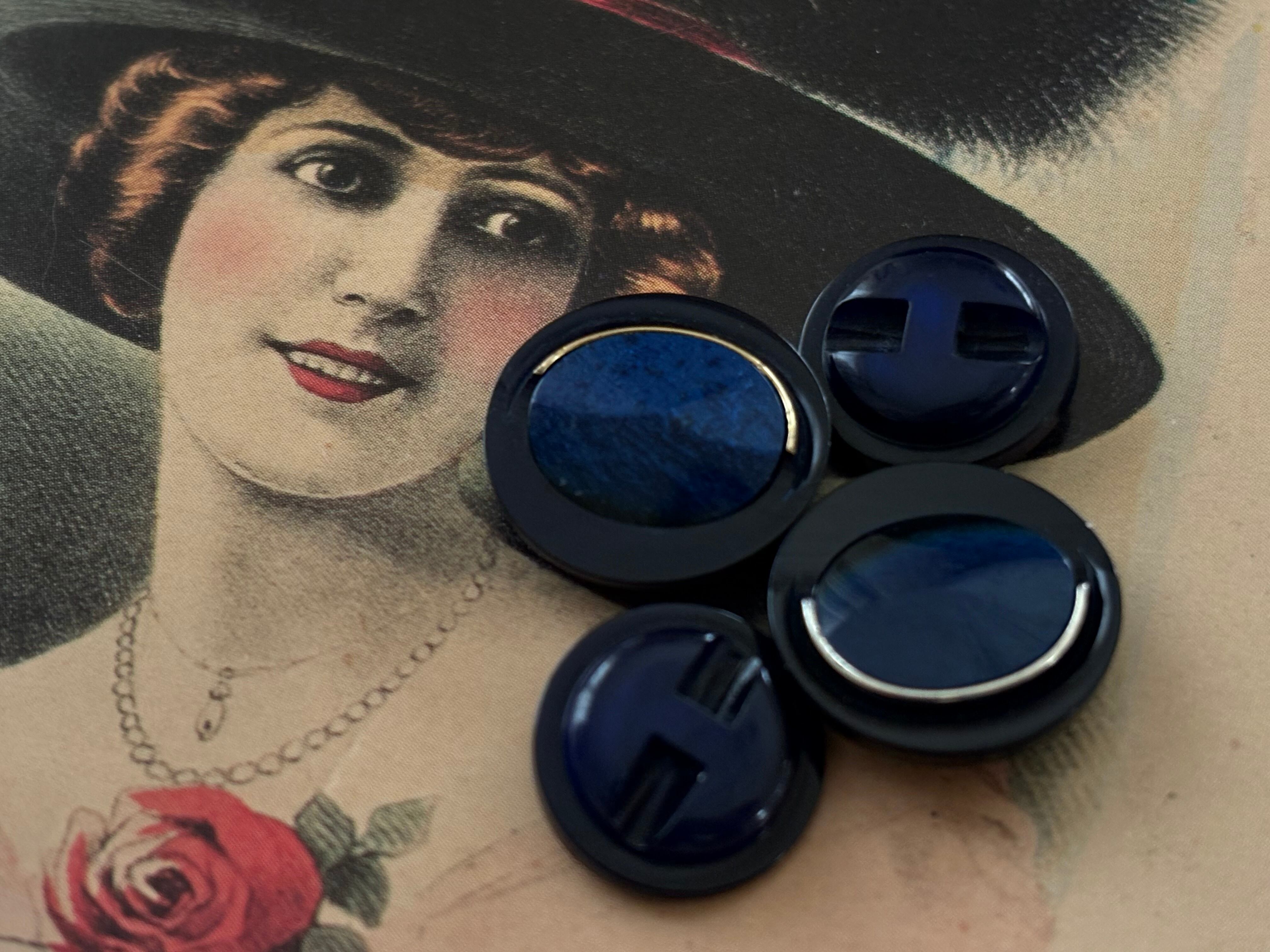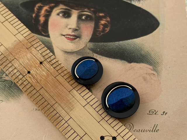 Japanese Vintage ボタン 15mm ネイビー カボション 昭和レトロ アクセサリーパーツ 装飾材 カルトナージュ