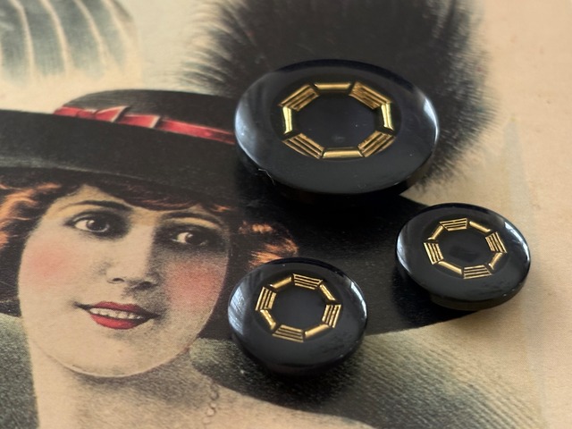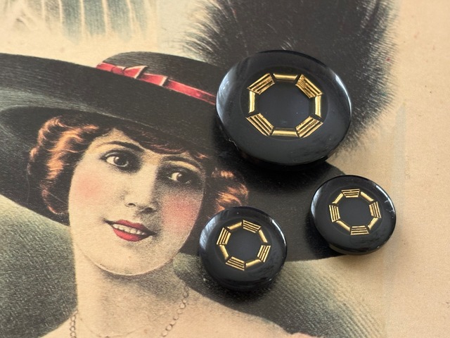 Japanese Vintage ボタン 24mm ブラック×ゴールド 昭和レトロ アクセサリーパーツ 装飾材 カルトナージュ