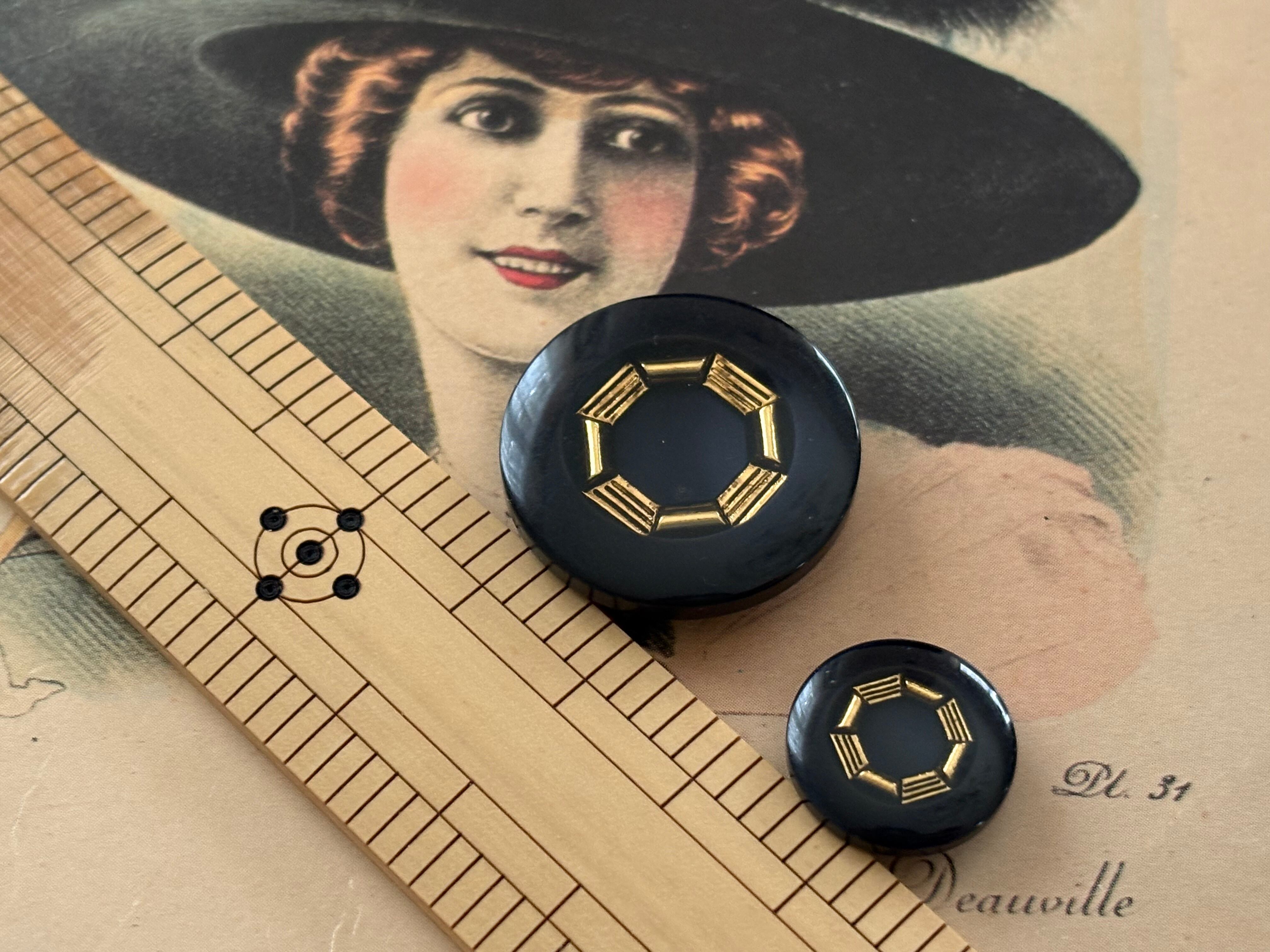 Japanese Vintage ボタン 15mm ブラック×ゴールド 昭和レトロ アクセサリーパーツ 装飾材 カルトナージュ