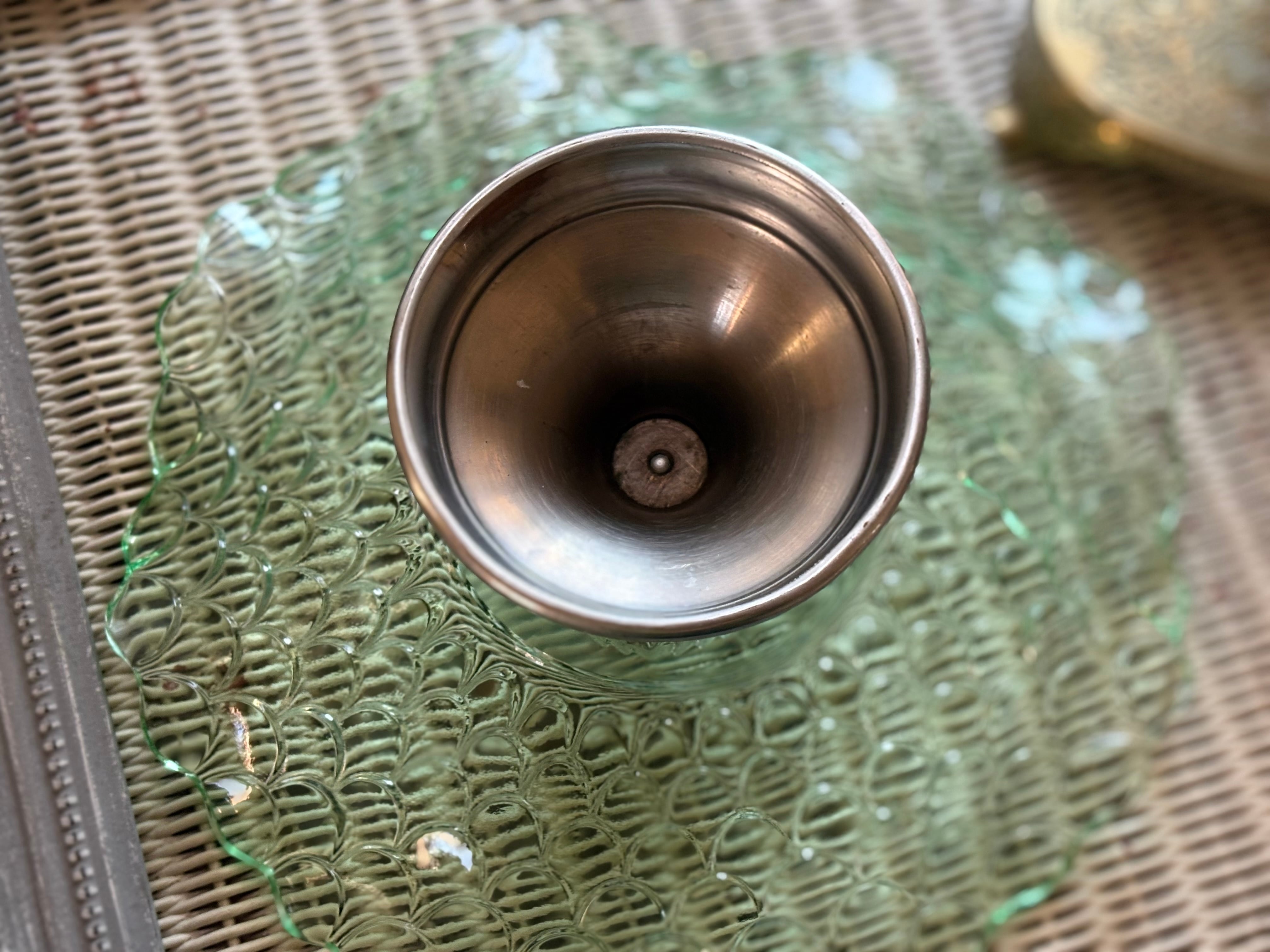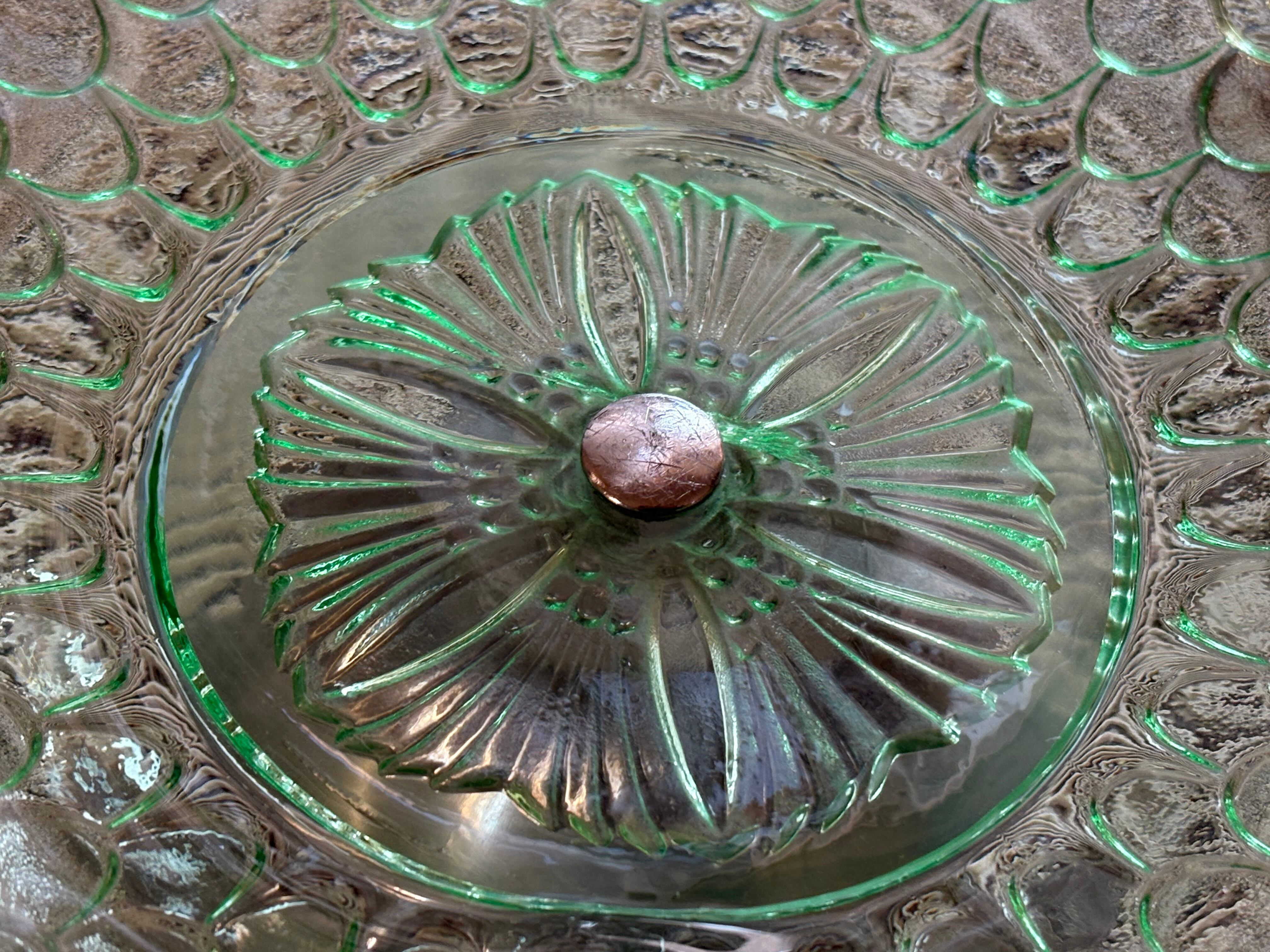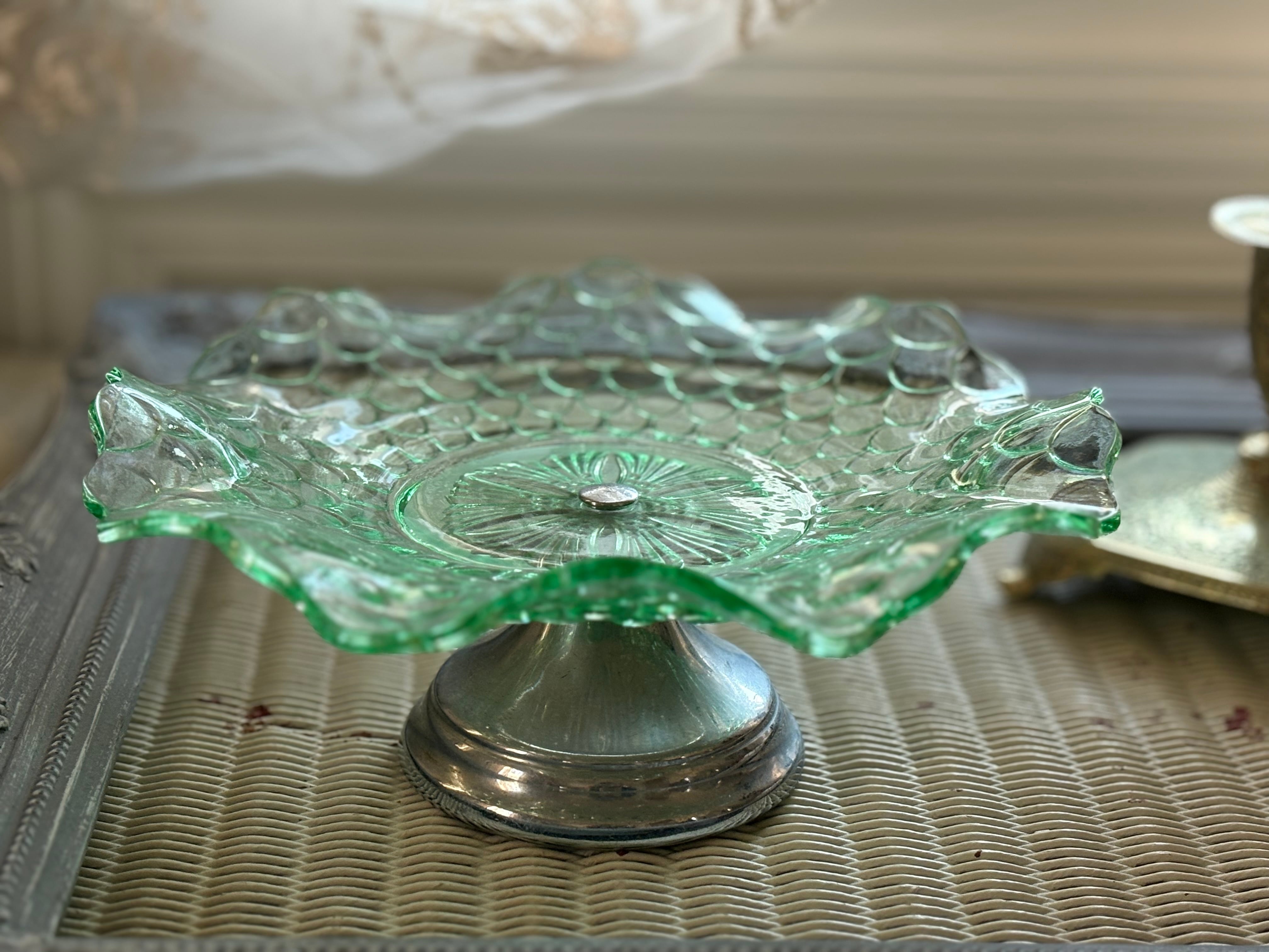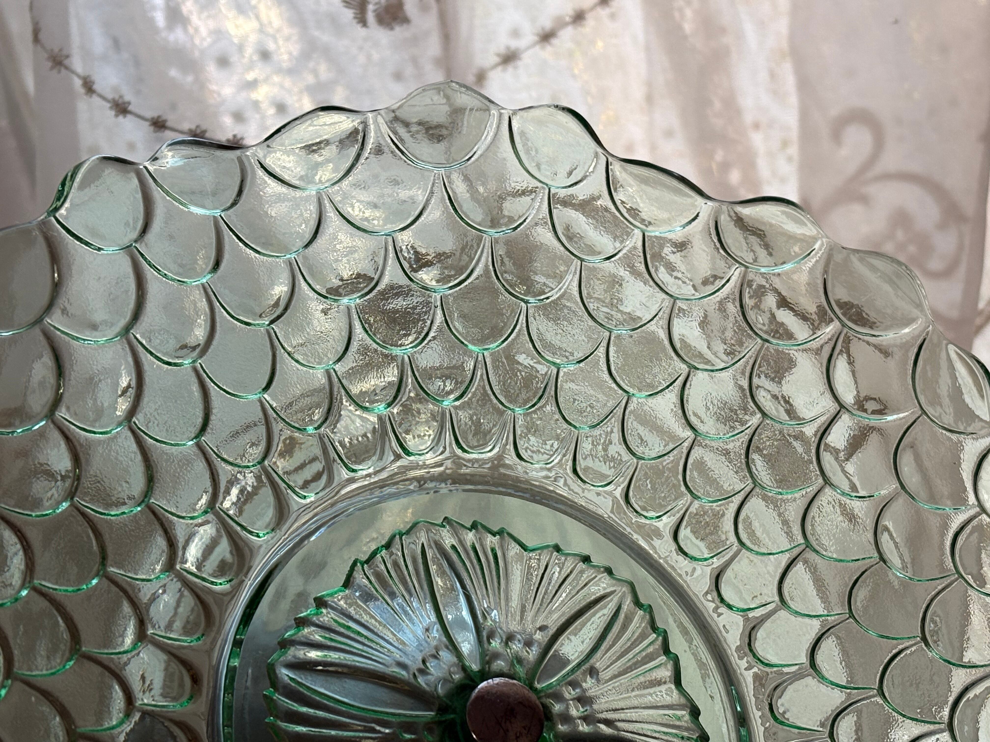英国アンティーク グリーン グリーンガラスのケーキスタンド コンポティエ 緑色 1940年代 インテリア小物 撮影小物 店舗什器