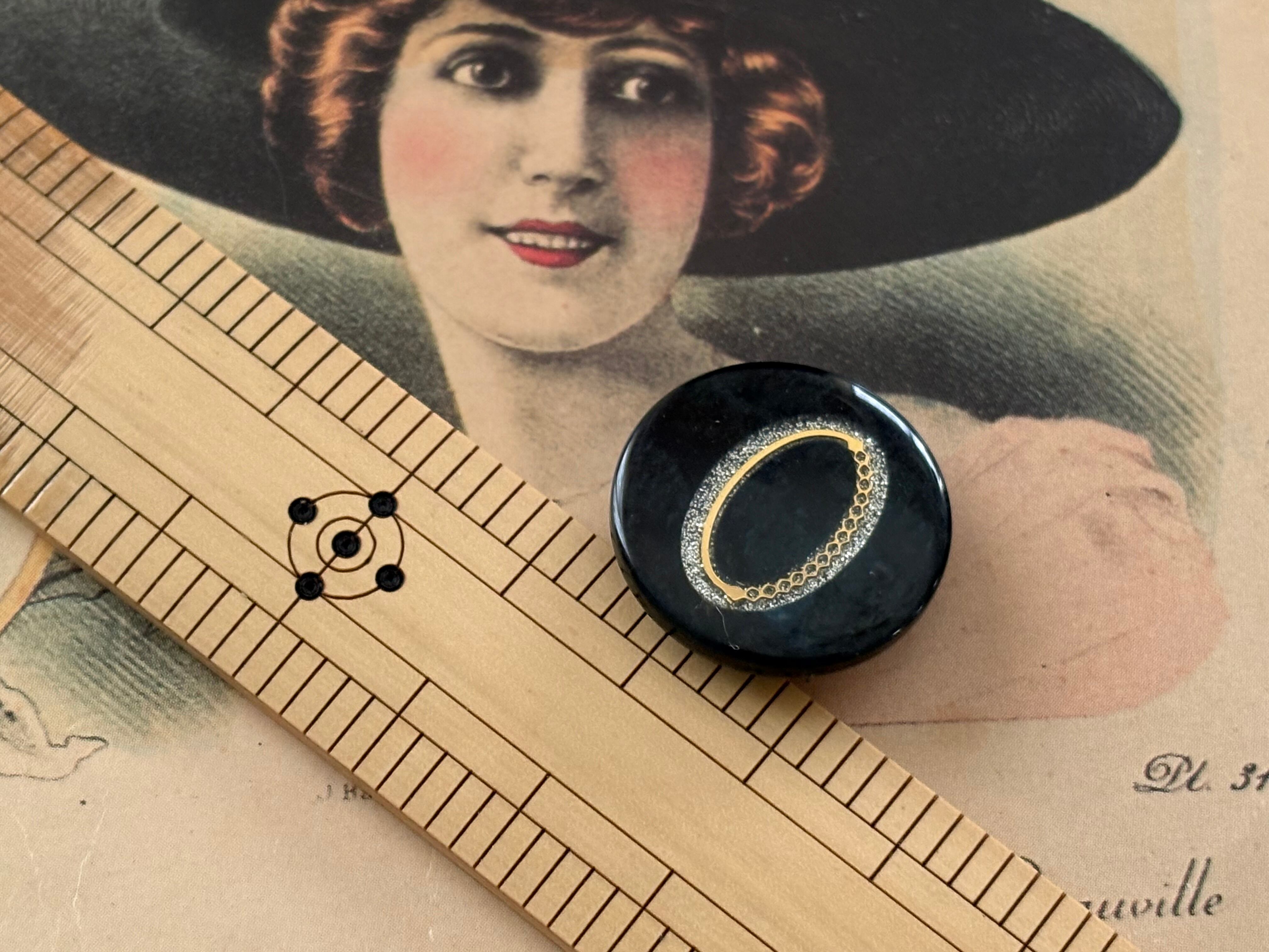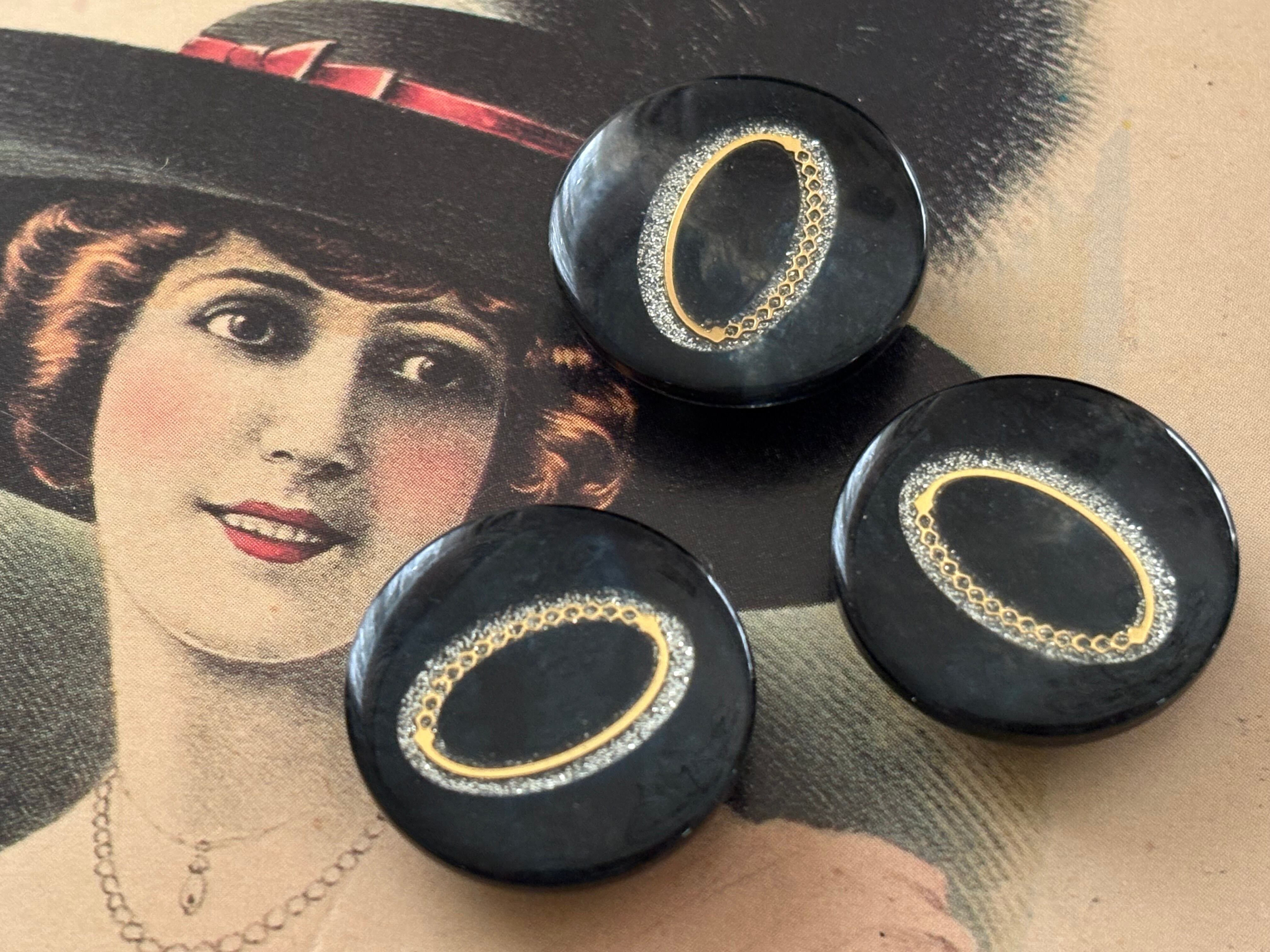 Japanese Vintage ヴィンテージボタン ブラック×ゴールド×シルバー グリッター マーブル調 22mm アクセサリーパーツ 装飾材 カルトナージュ