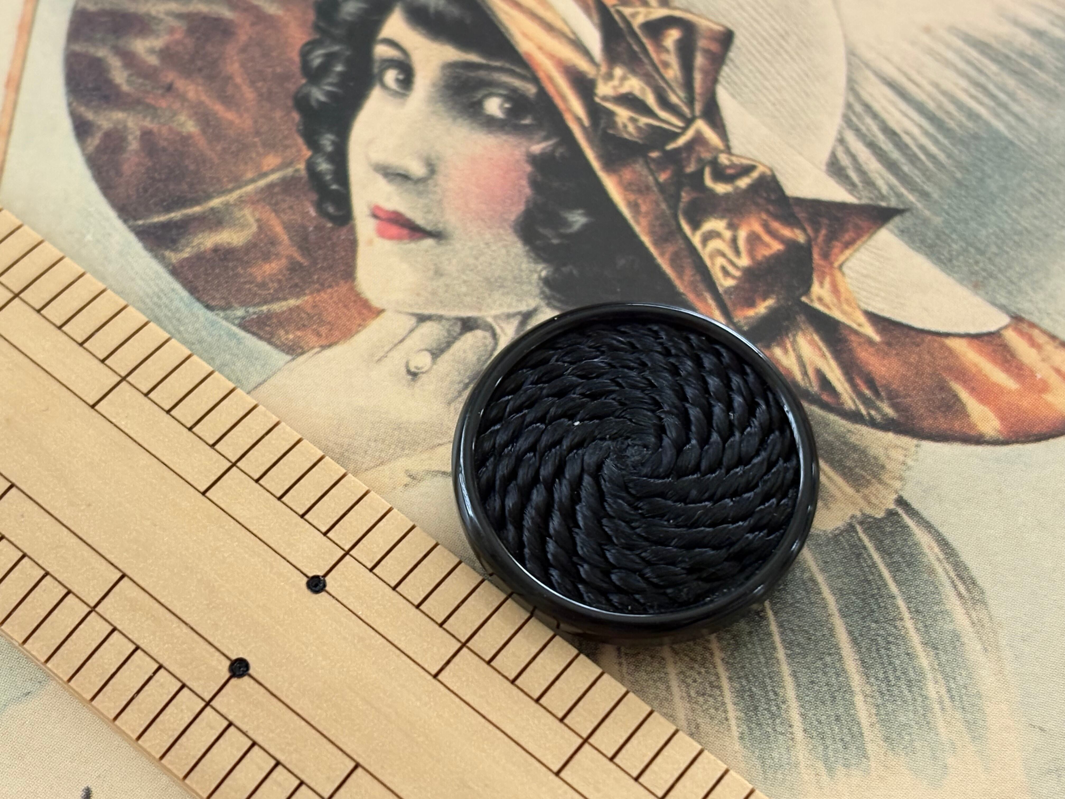 Japanese Vintage ボタン 23mm button コードボタン ブラック デッドストック アクセサリーパーツ 装飾材 カルトナージュ