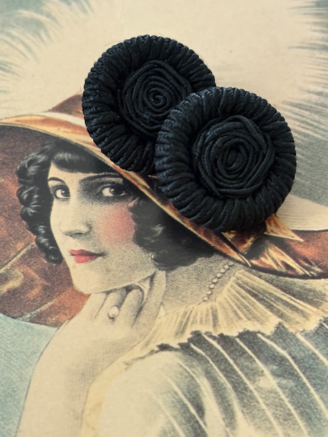 Japanese Vintage ボタン 22mm コードボタン ブラック デッドストック アクセサリーパーツ 装飾材 カルトナージュ