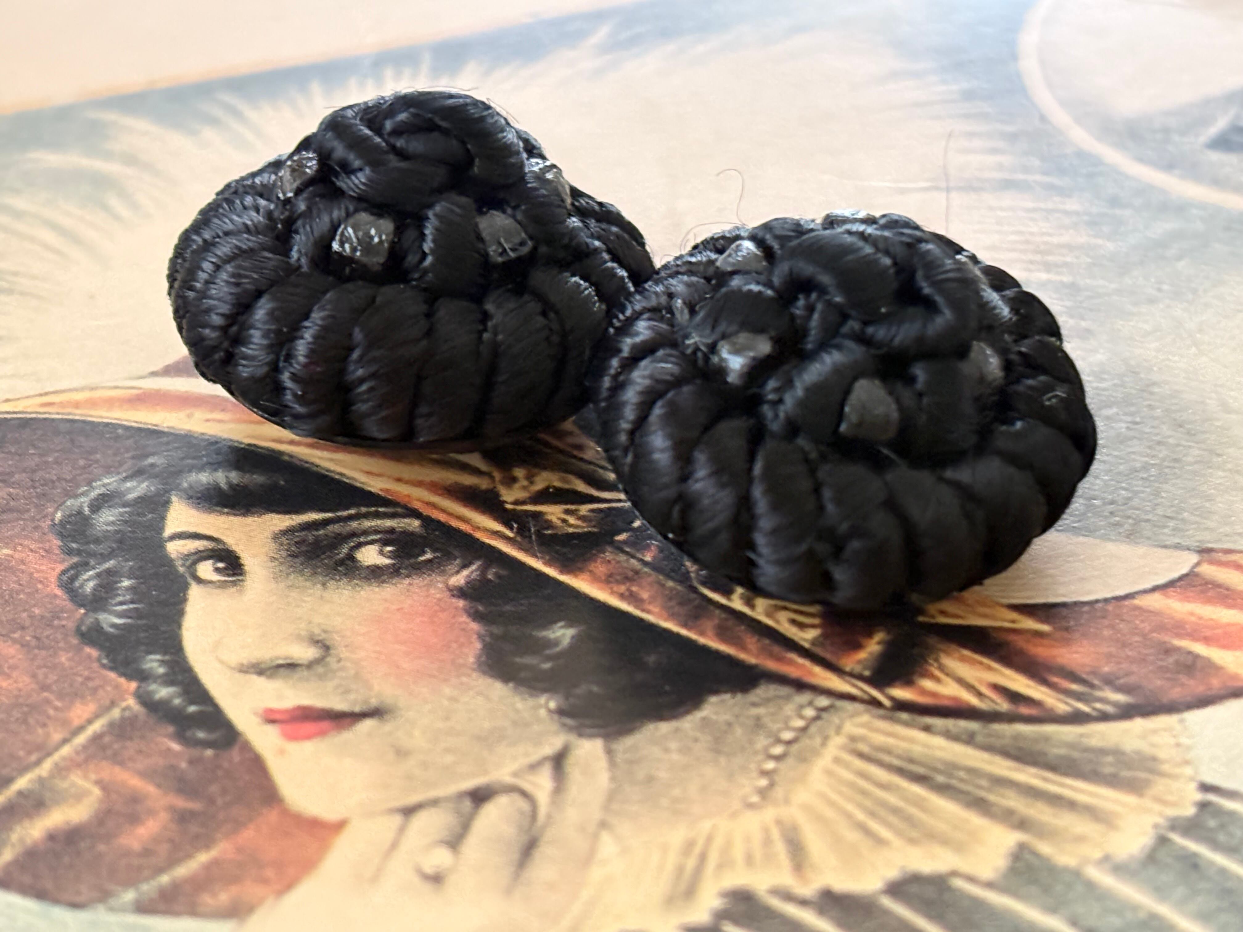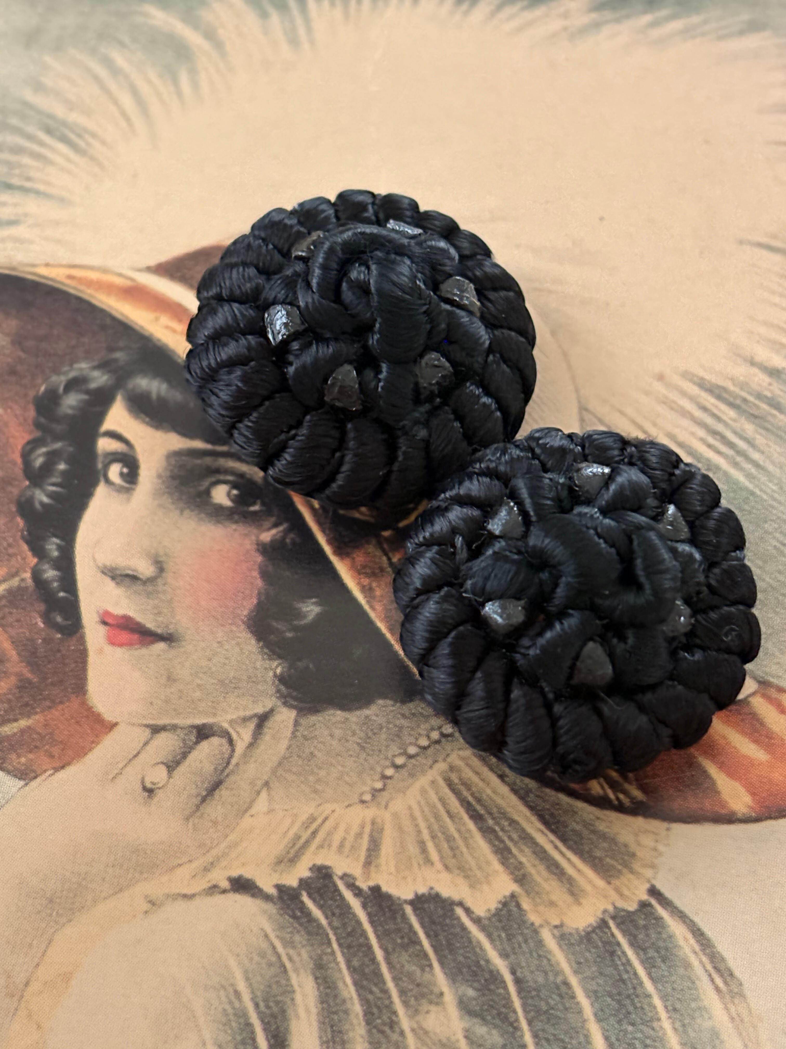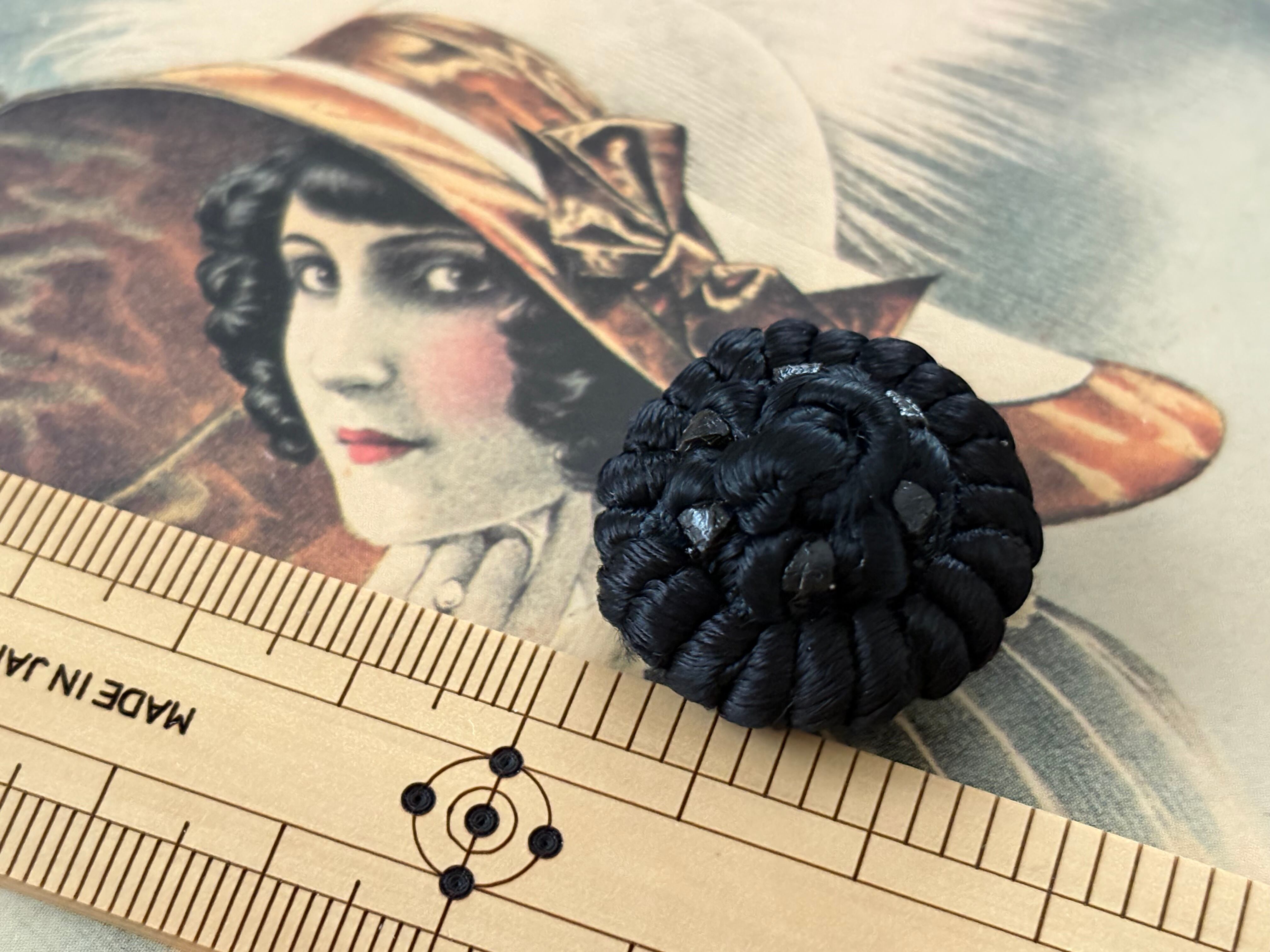 Japanese Vintage ボタン 25mm コードボタン ビーズ ブラック デッドストック アクセサリーパーツ 装飾材 カルトナージュ