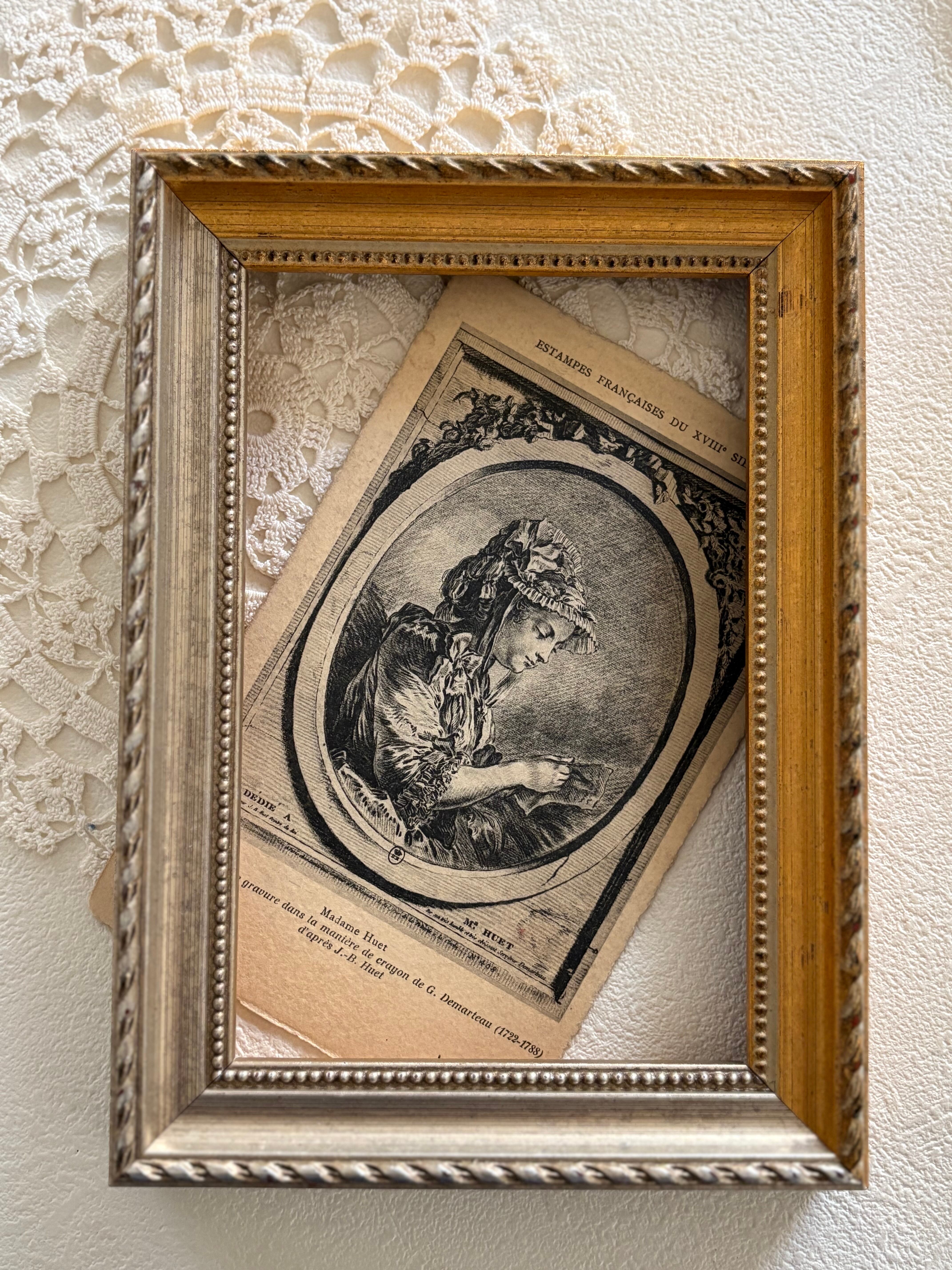 フランス Vintageポストカード Madame Huet Ruban フレーム 額装 インテリア コレクション コラージュ
