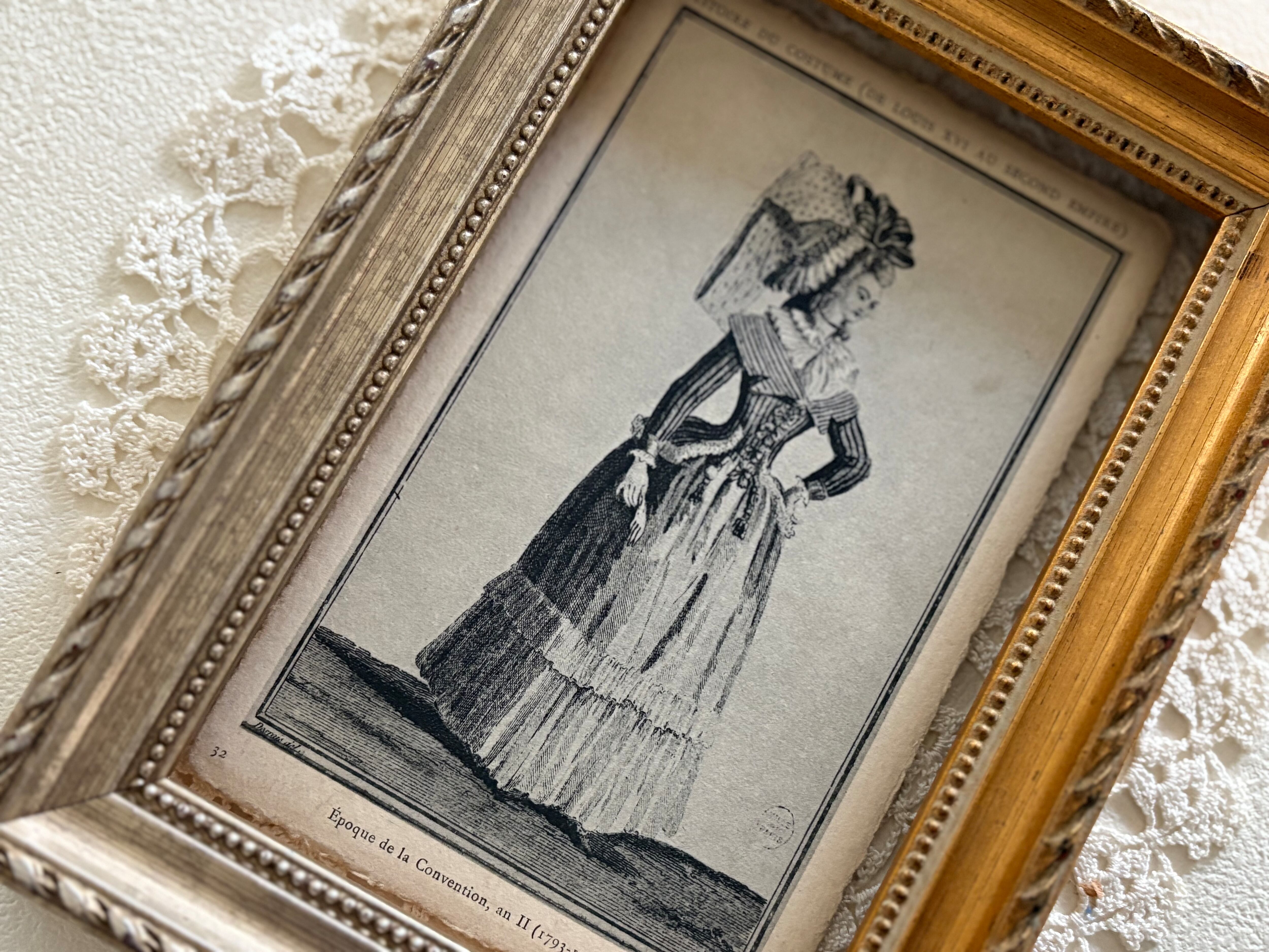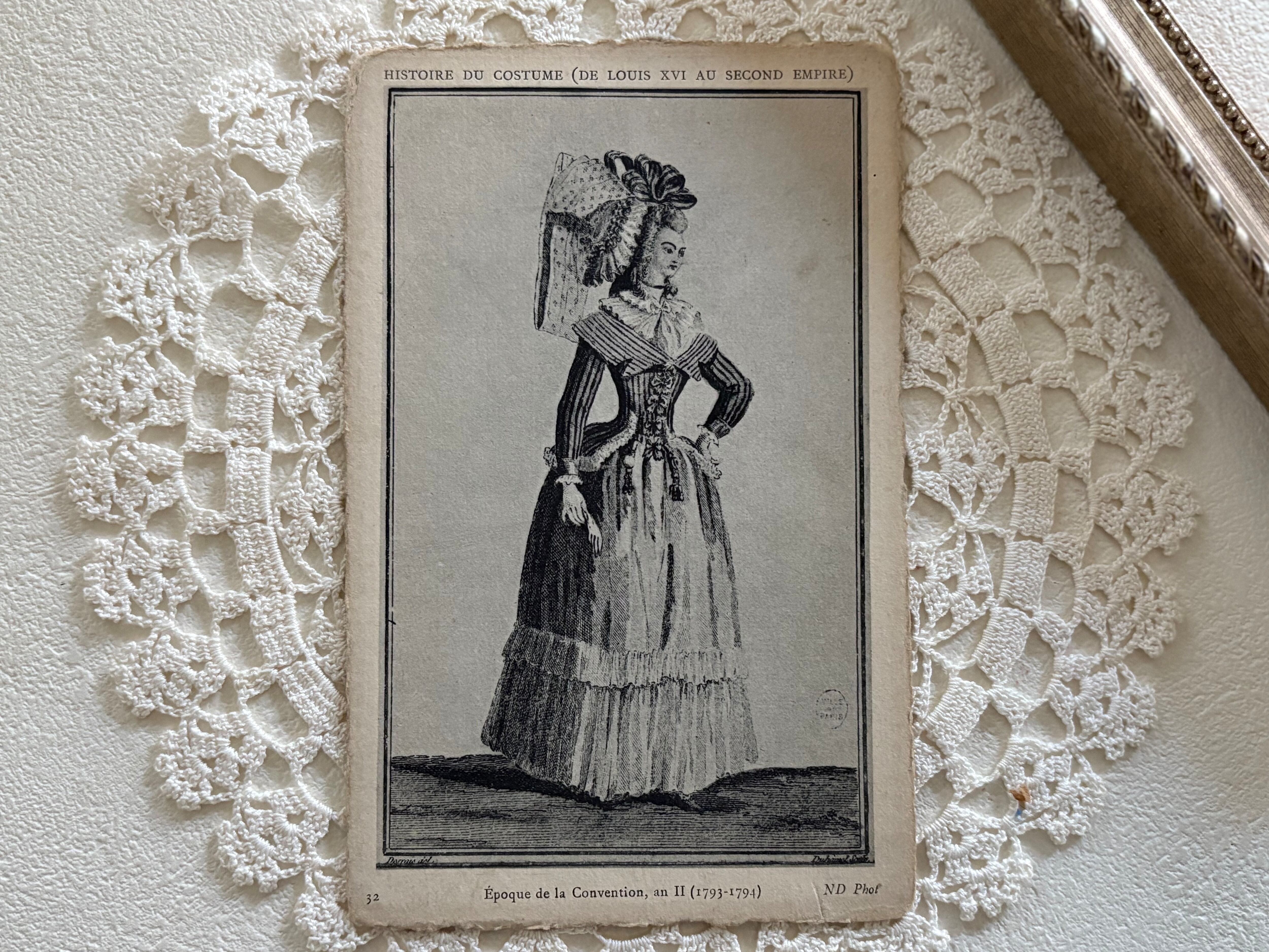 フランス Vintage ポストカード 衣装の歴史 貴婦人 マダム 額装 インテリア コレクション コラージュ