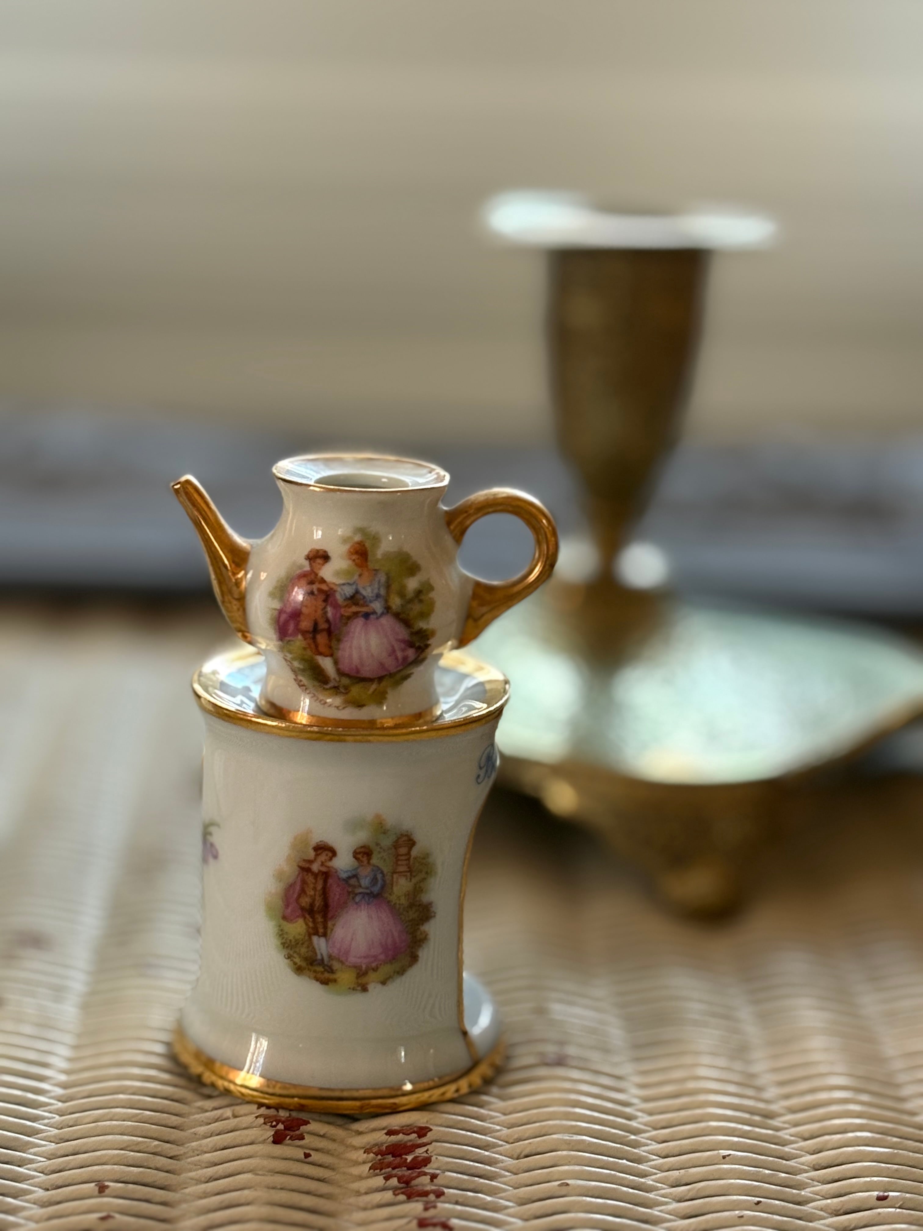 フランスVintage リモージュ ミニチュア ティザニエール インテリア小物 撮影小物 コレクション フラゴナール画