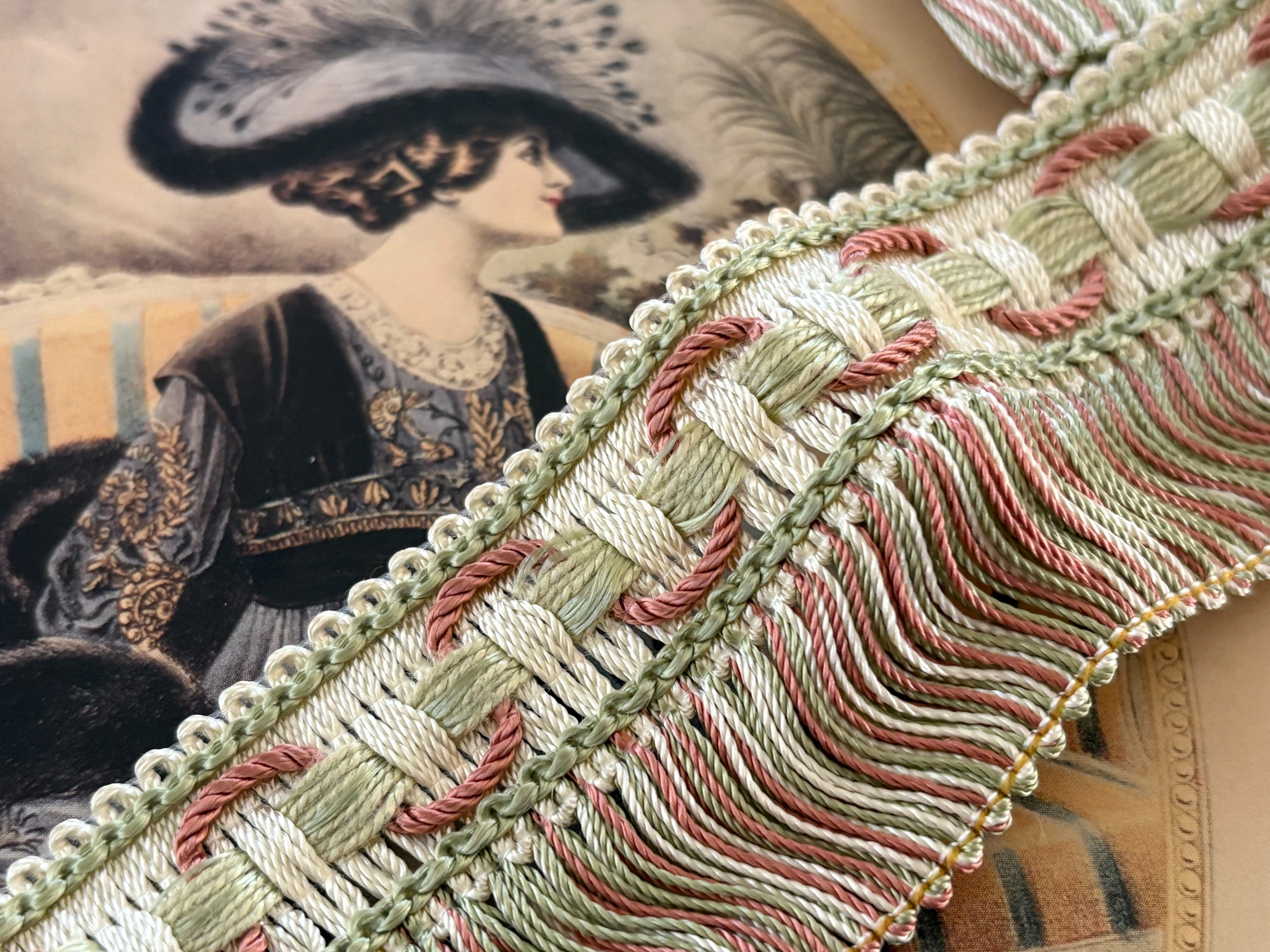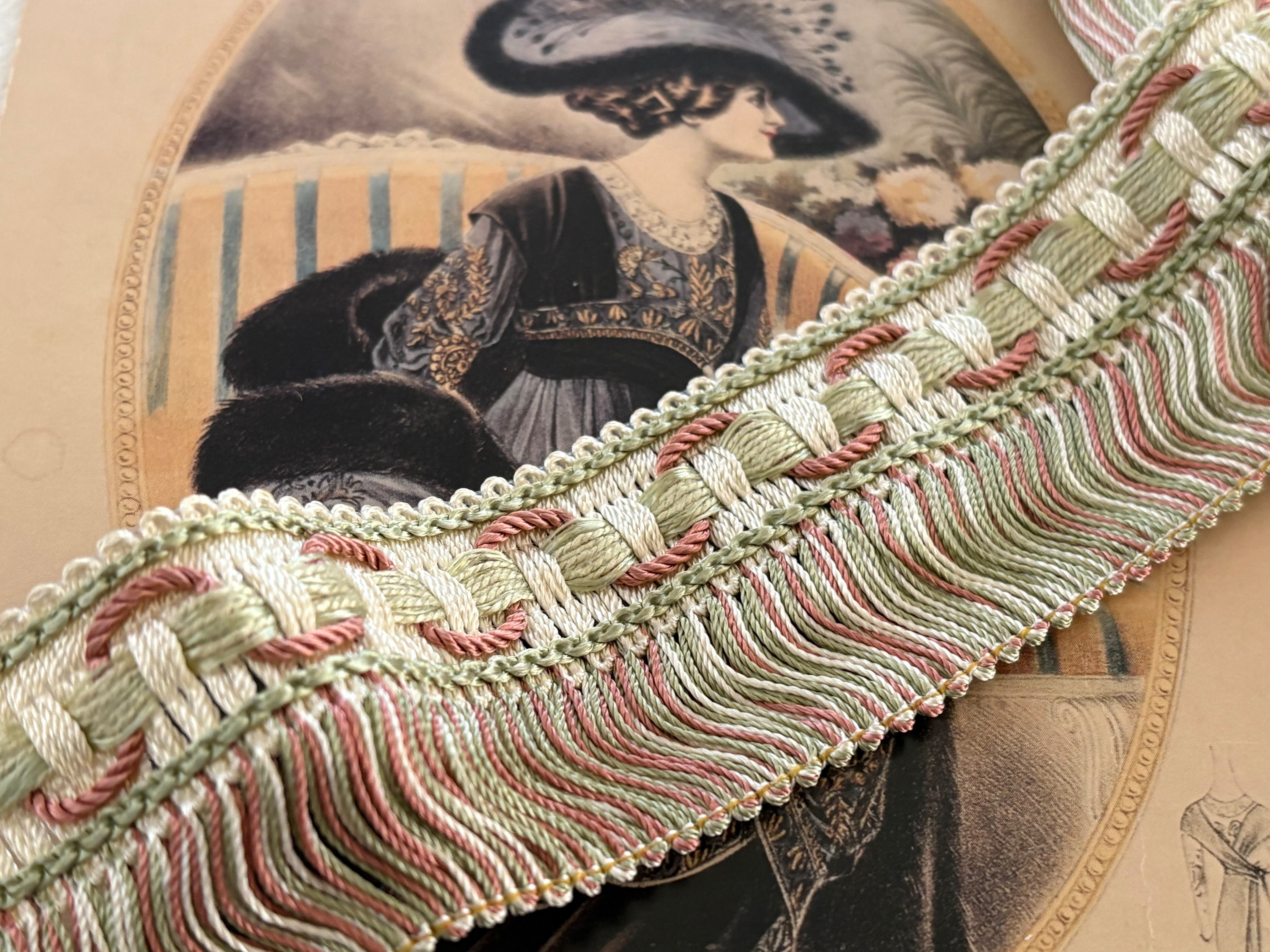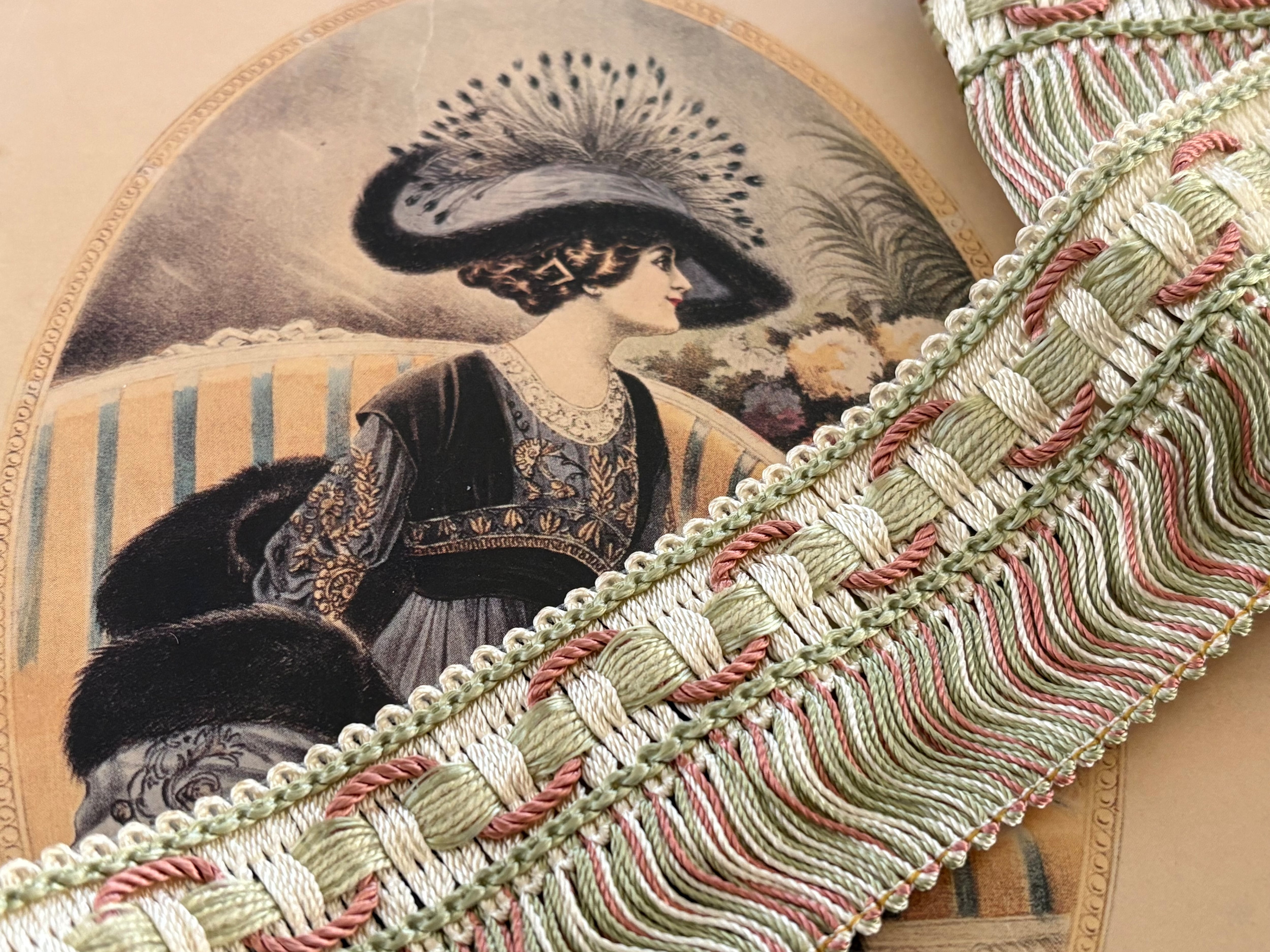 フランスVintage ブレード フリンジブレード アイボリー×ピンク×グリーン系 幅全長4cm カルトナージュ デコレーション材 コレクション