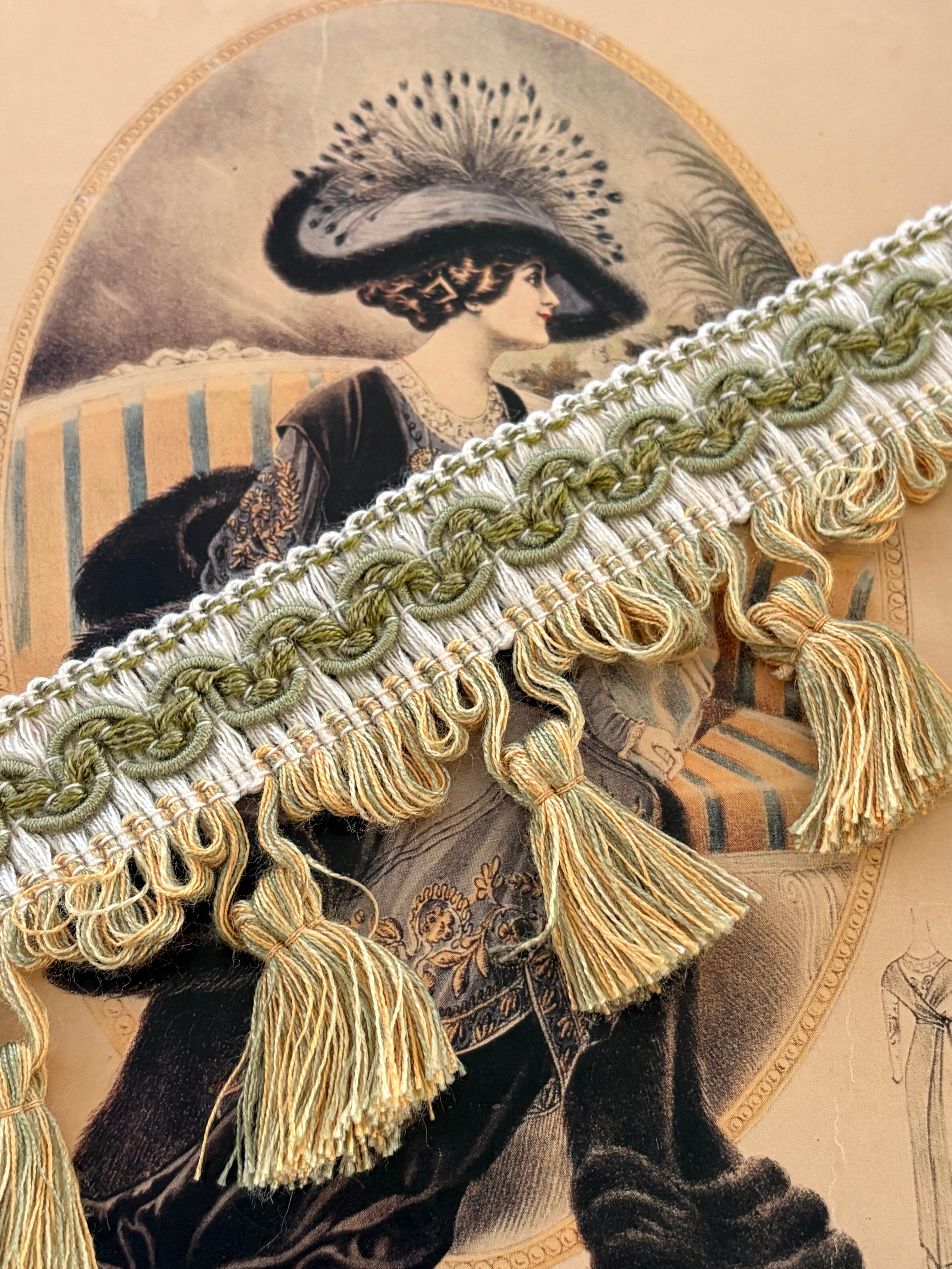 フランス Vintage タッセルブレード カットブレード 95cm 最大幅65mm カルトナージュ デコレーション材