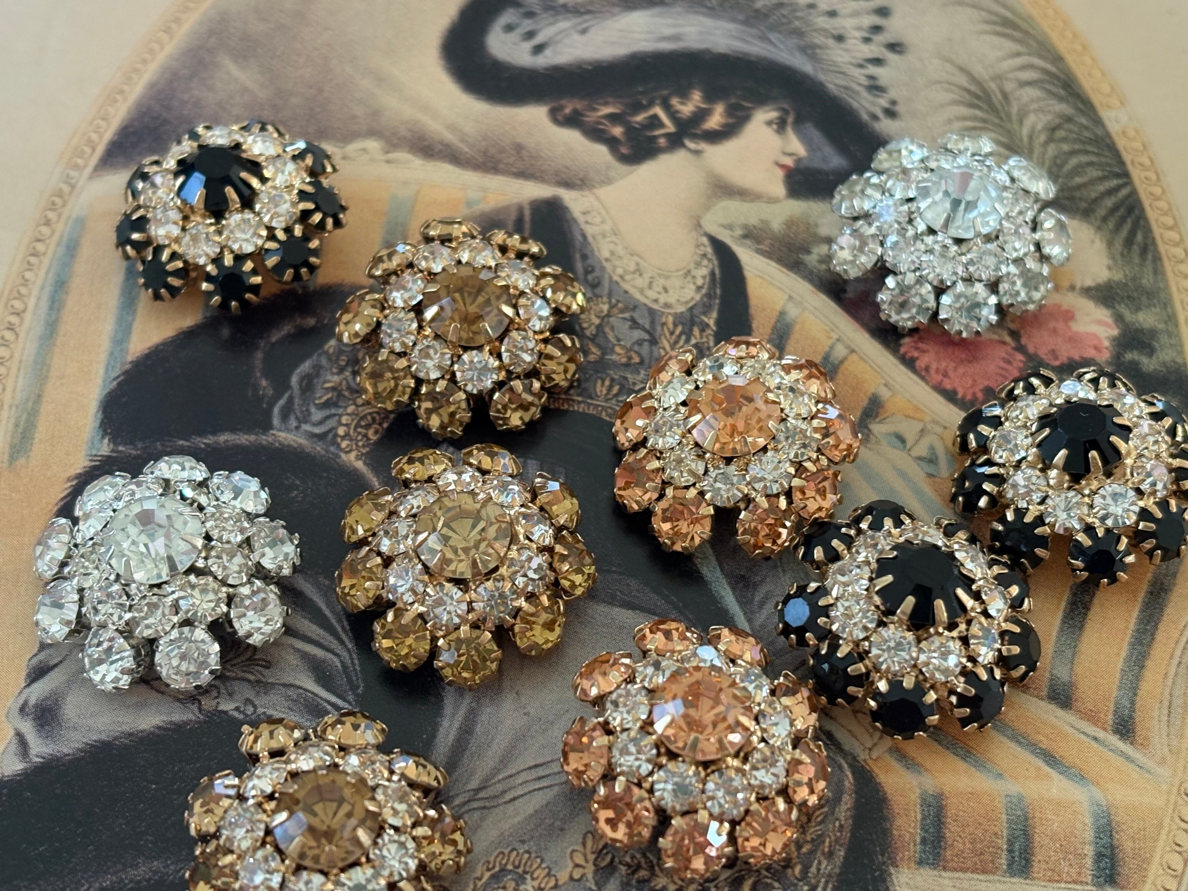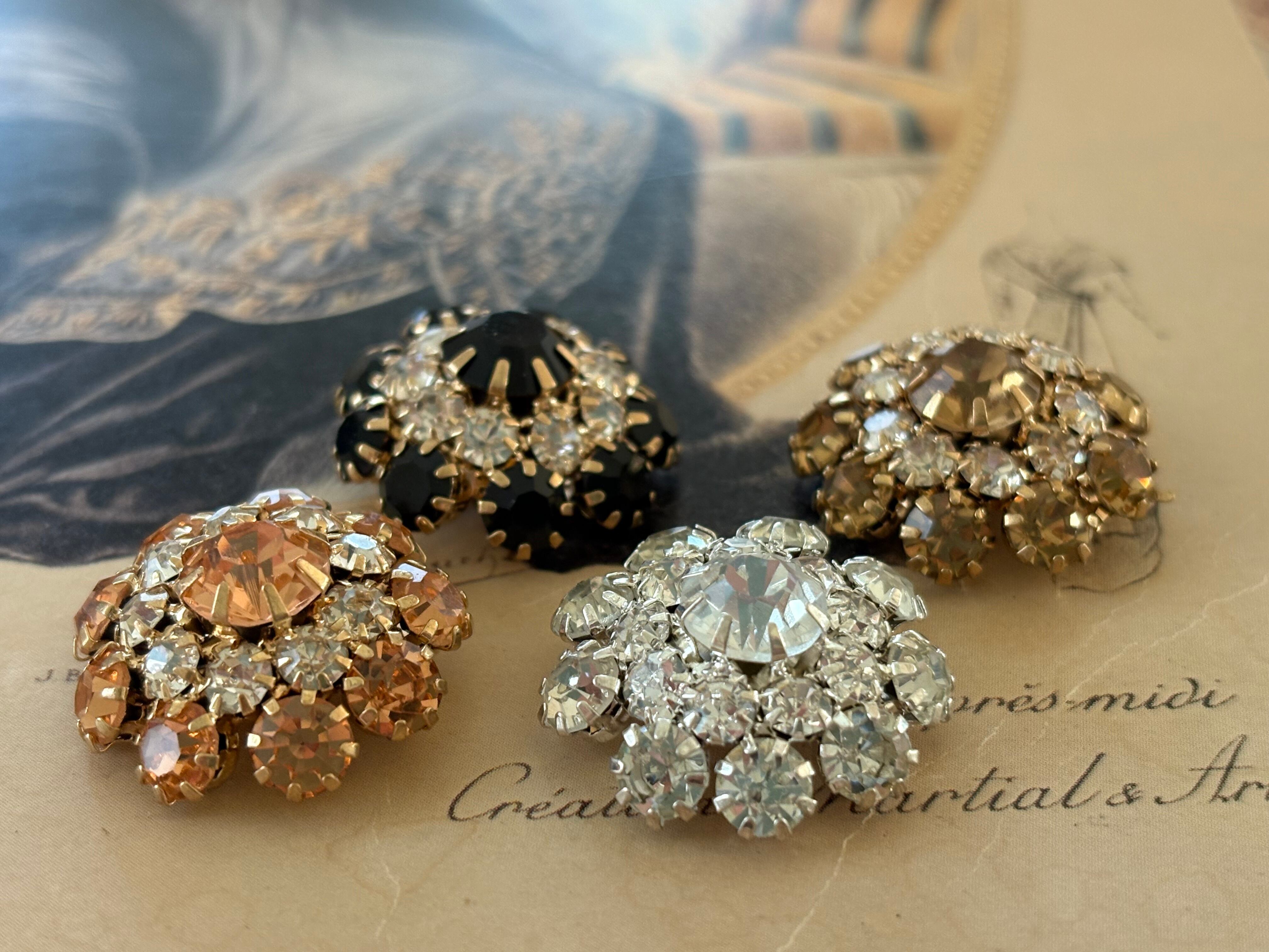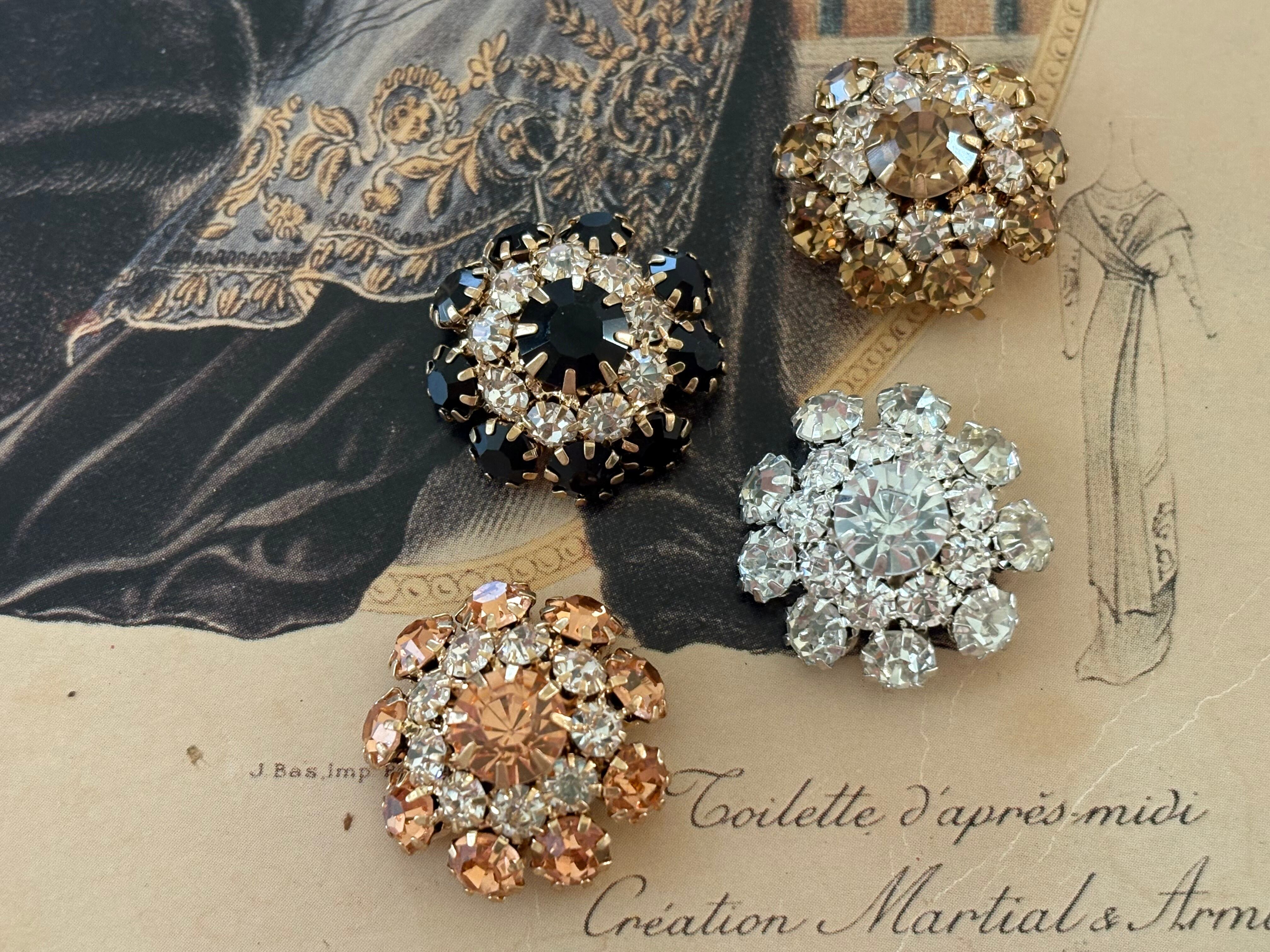 輸入デザインボタン フラワー型 ゴールド×ストーン 20mm前後 アクセサリーパーツ デコレーション材