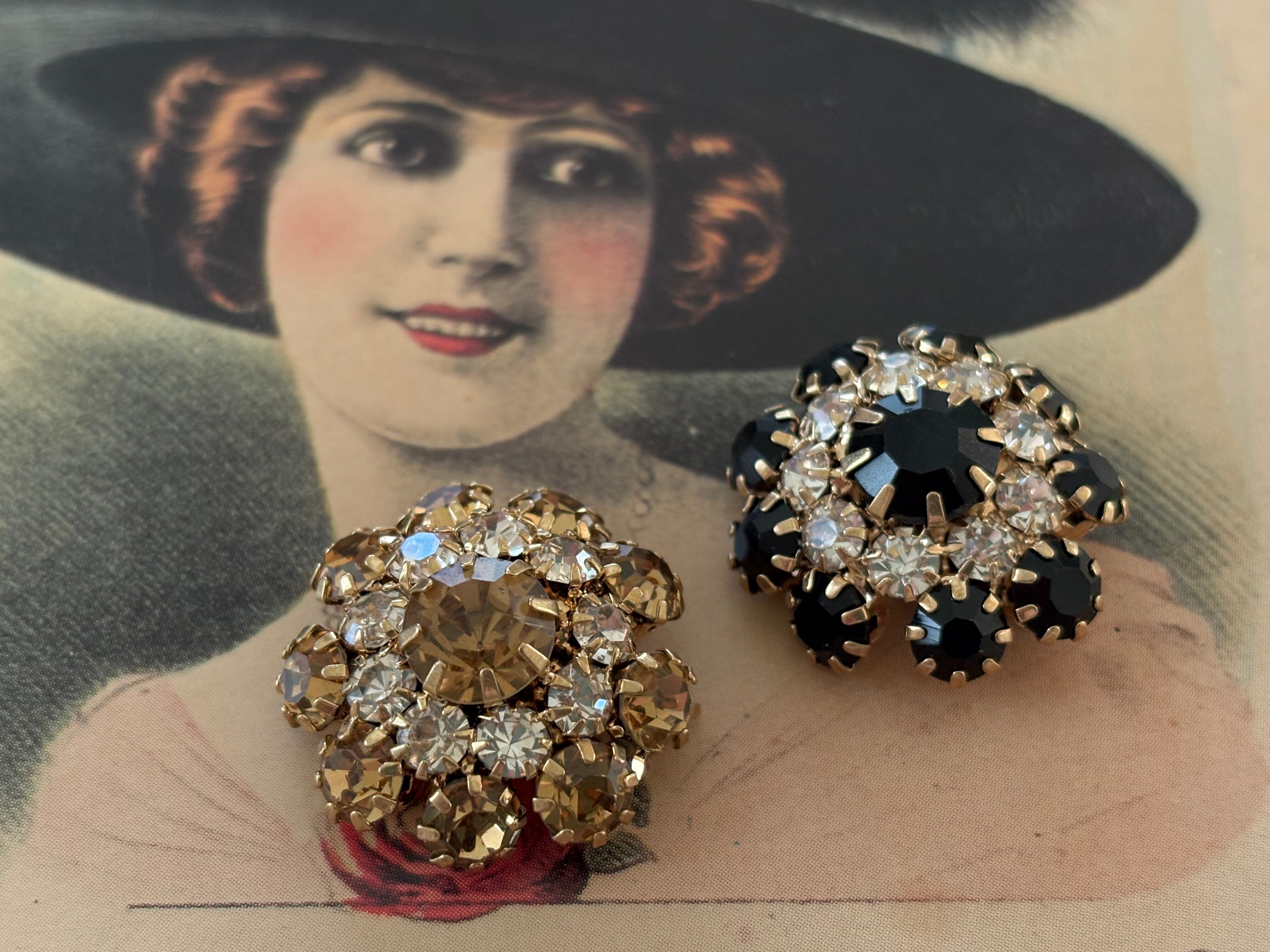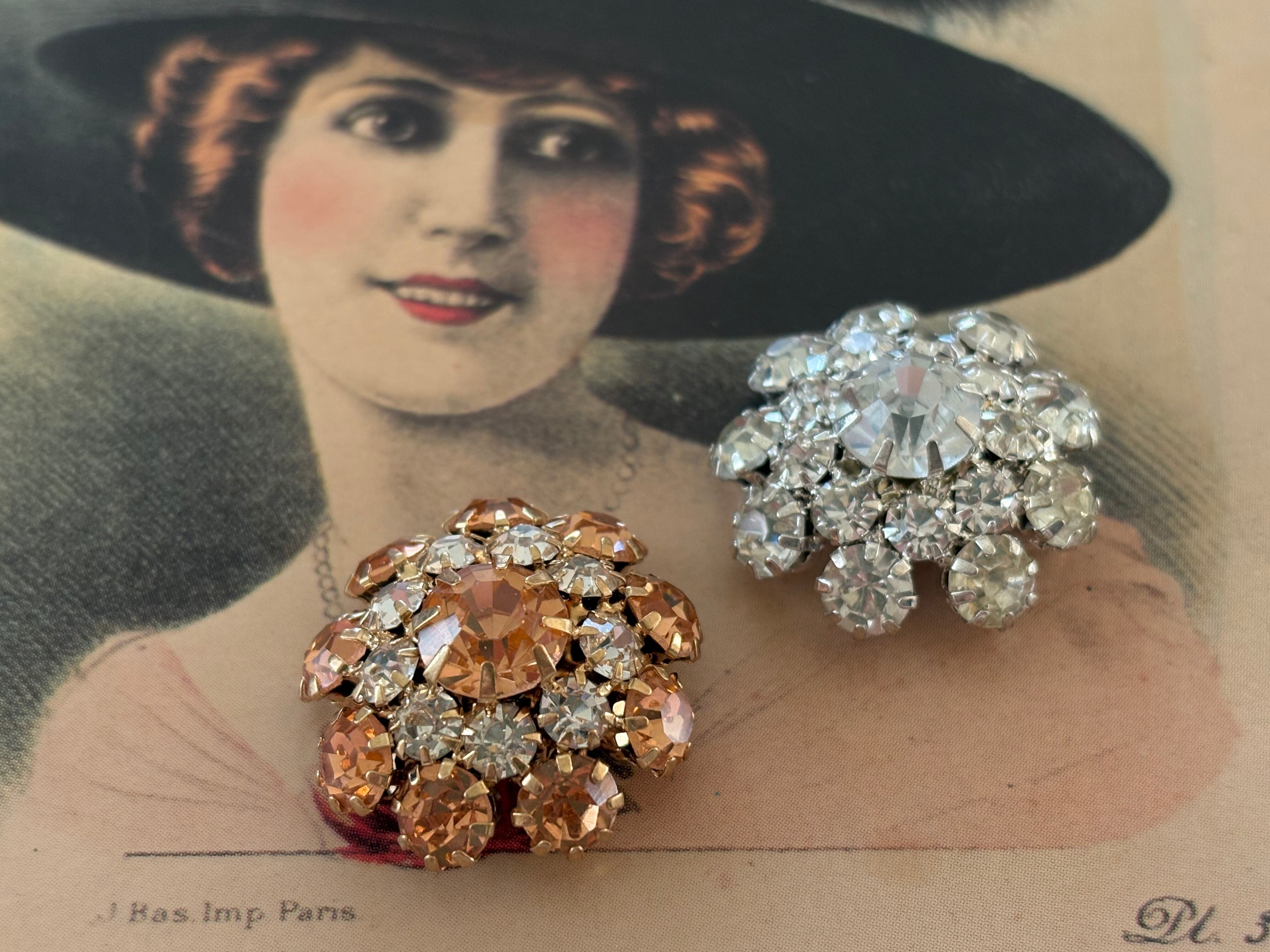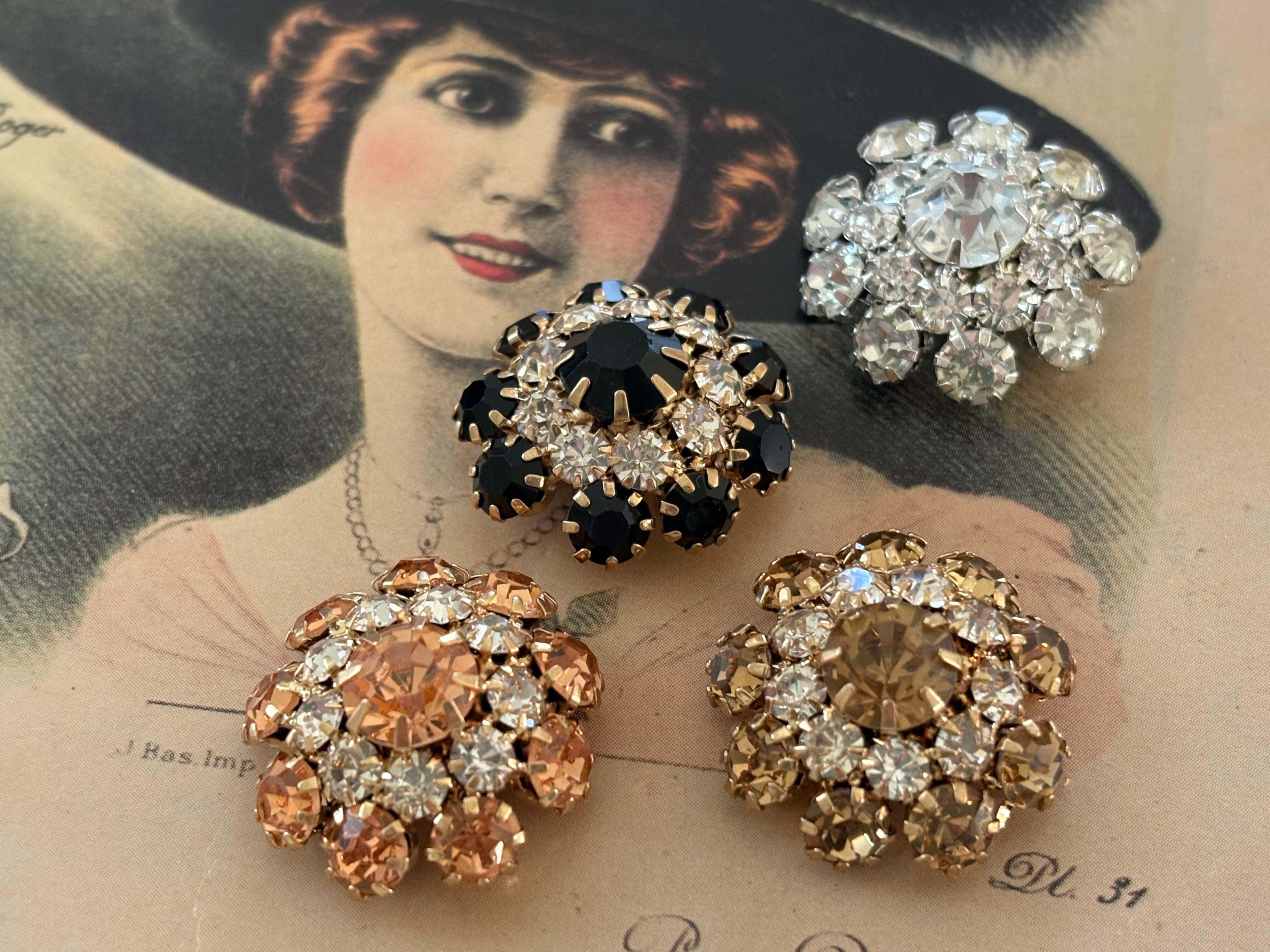 輸入デザインボタン フラワー型 ゴールド×ストーン 20mm前後 アクセサリーパーツ デコレーション材
