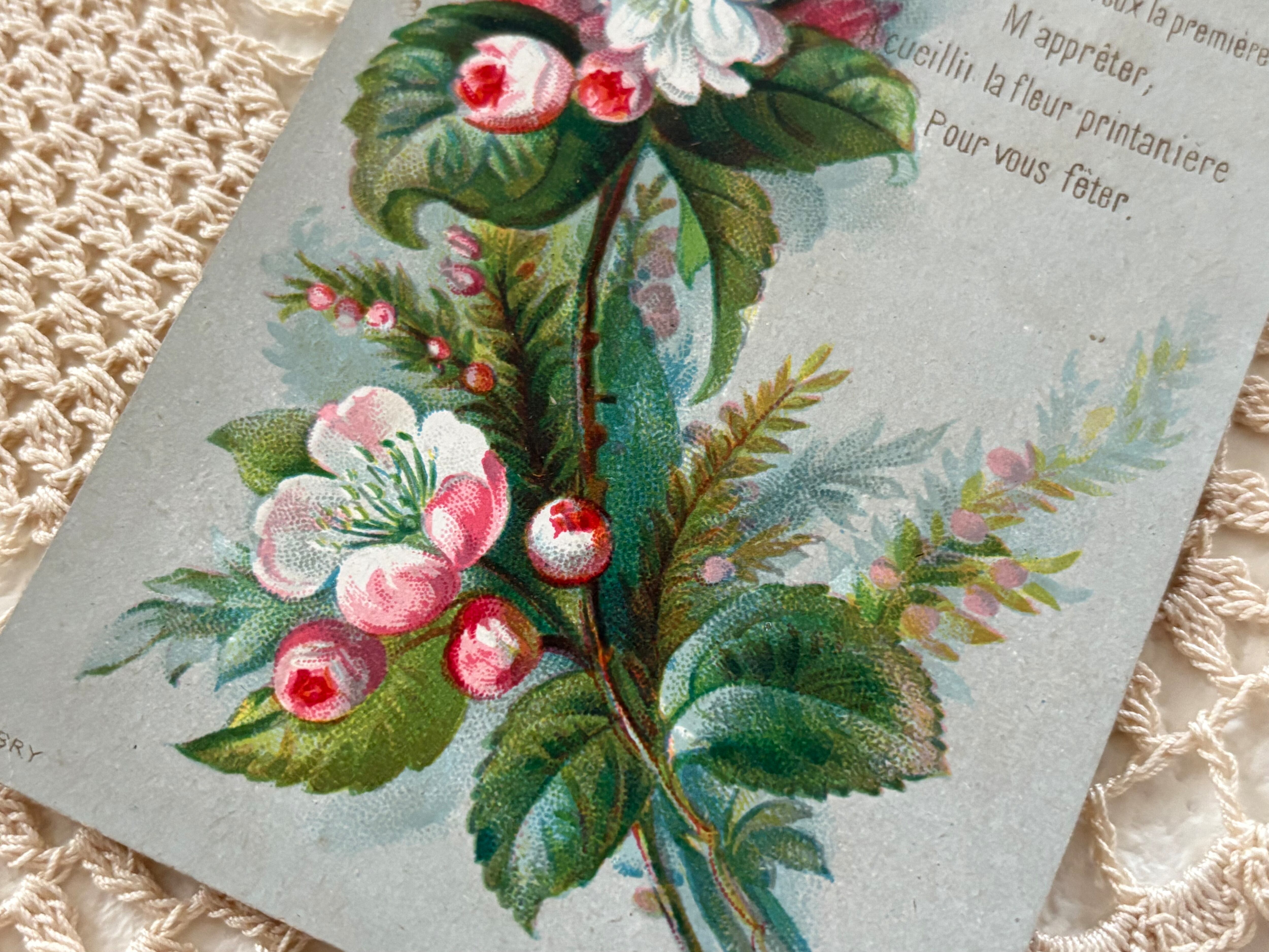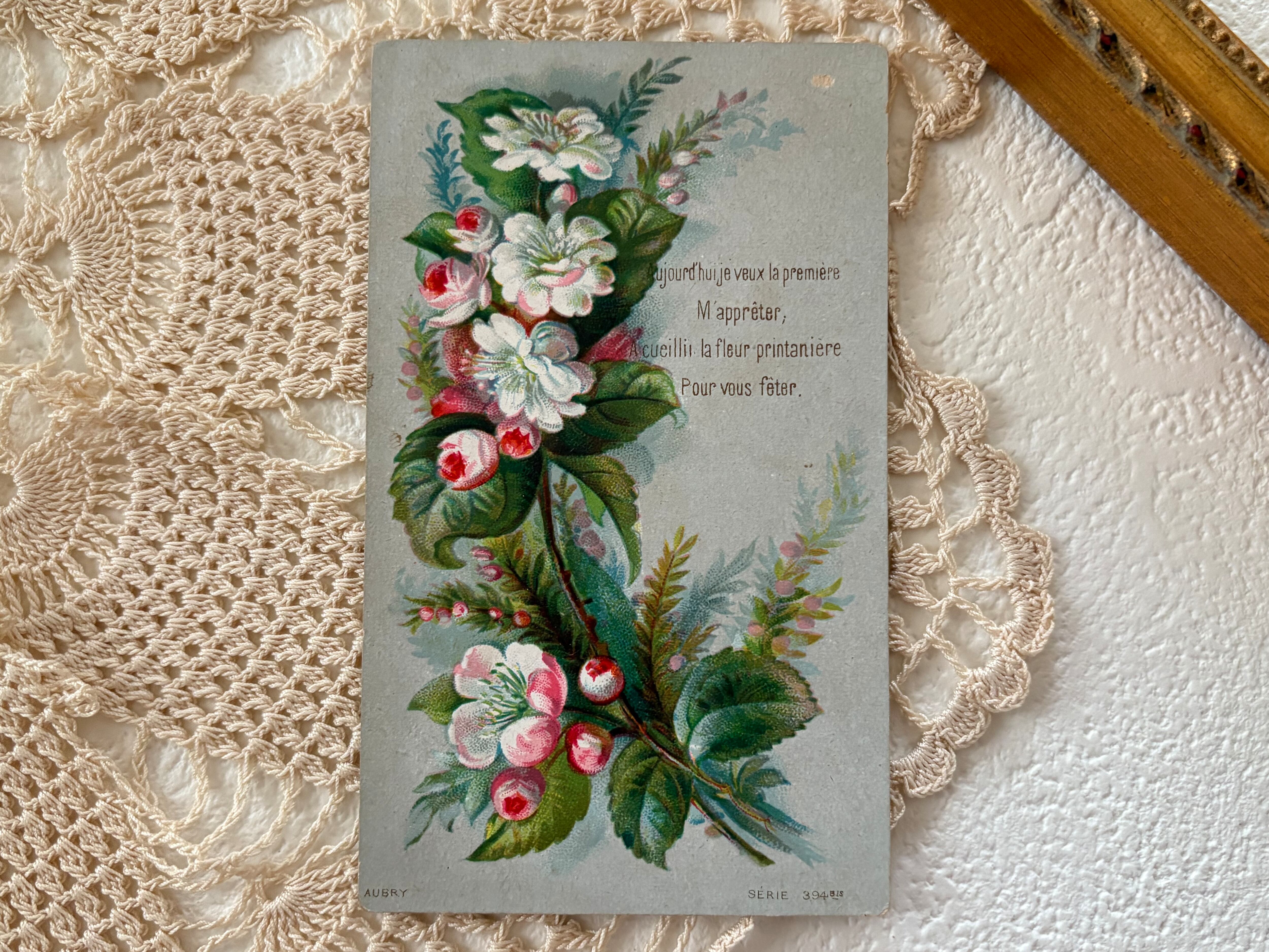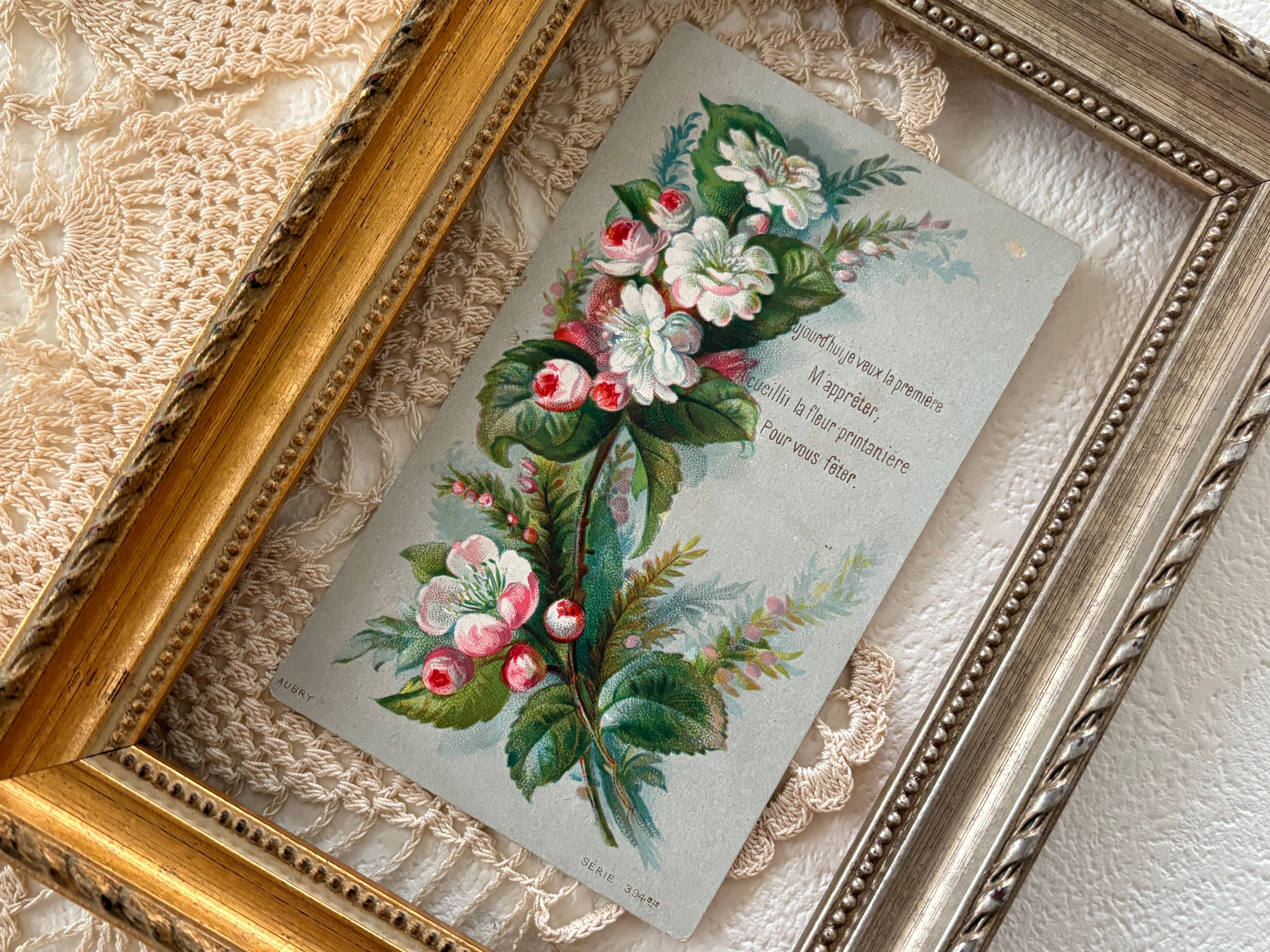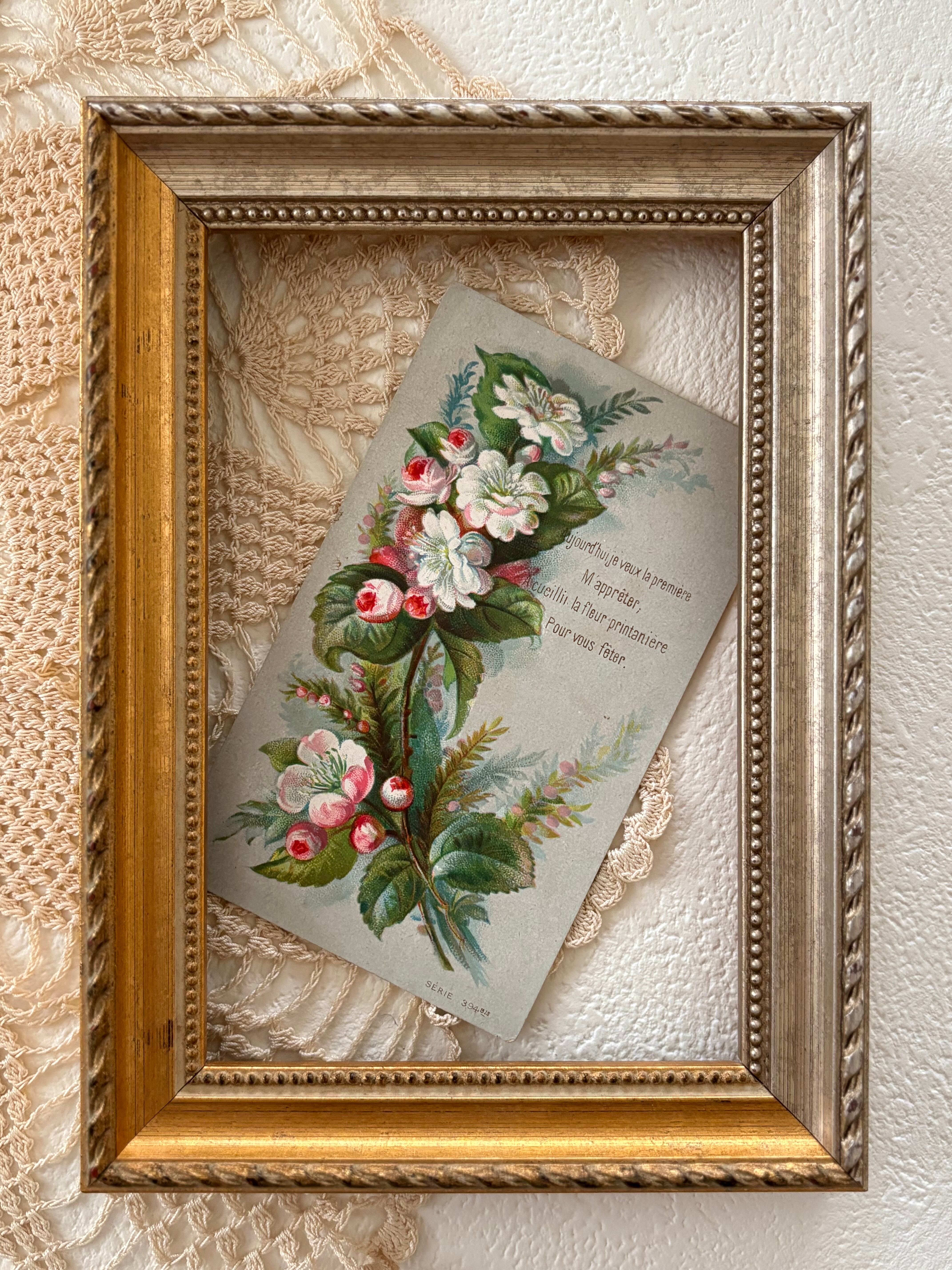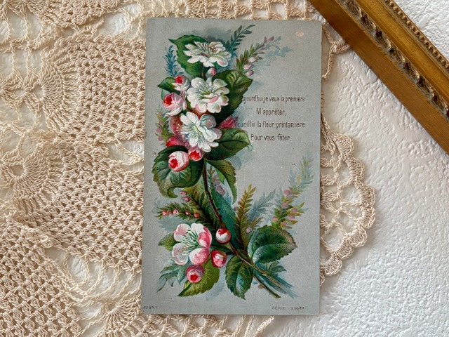 フランス アンティークメッセージカード 春の花 フランス 額装 インテリア小物 コレクション