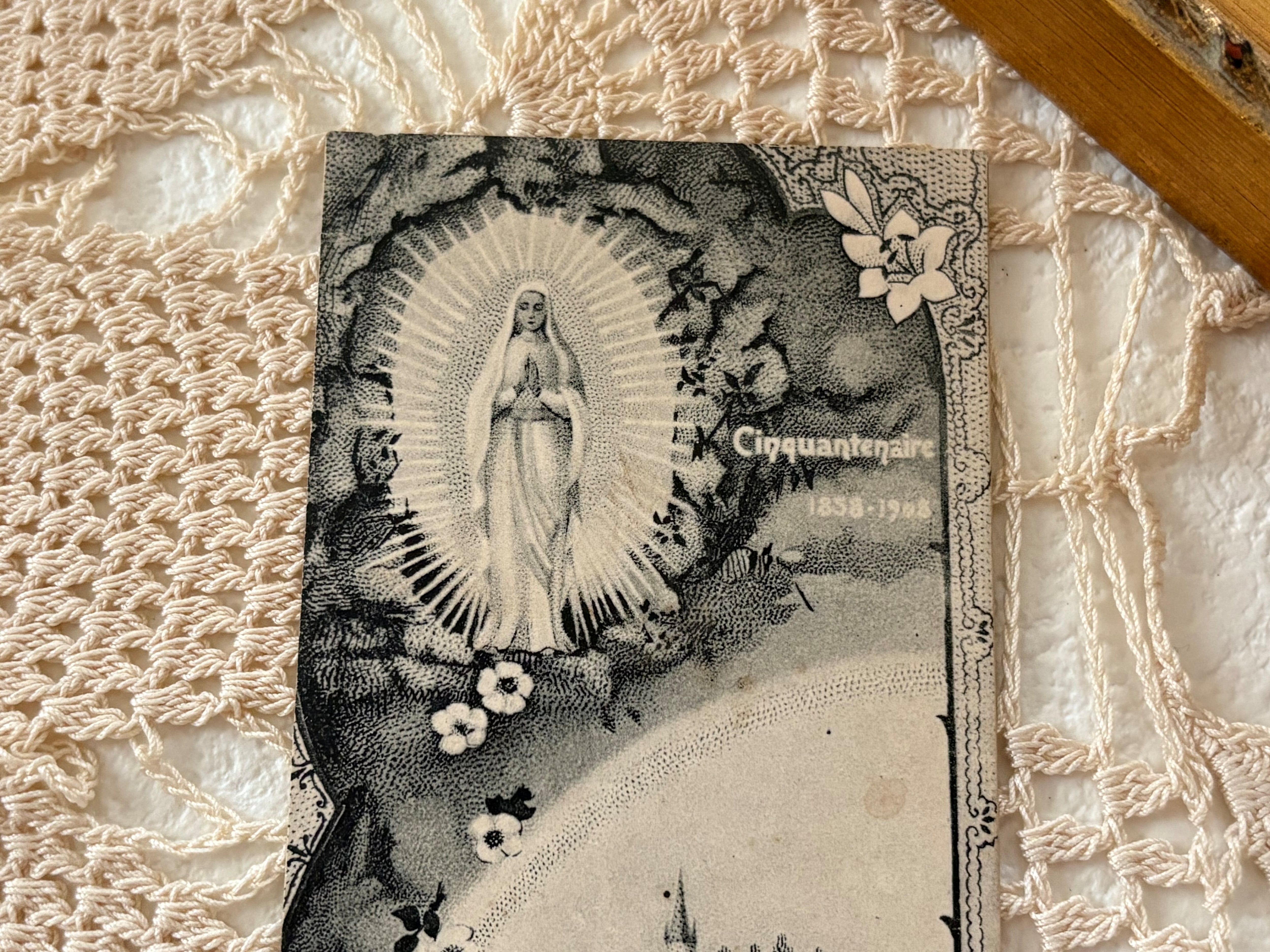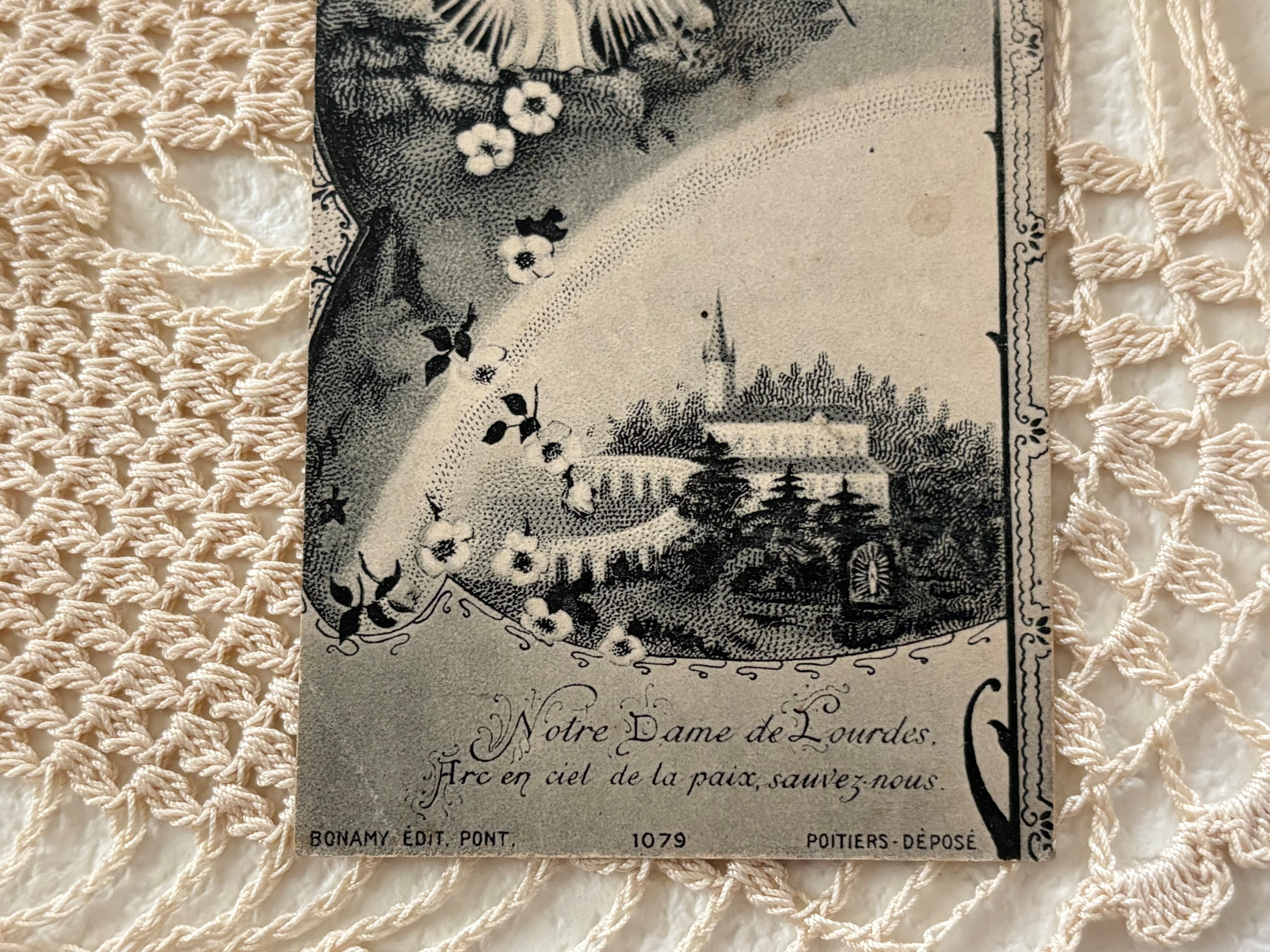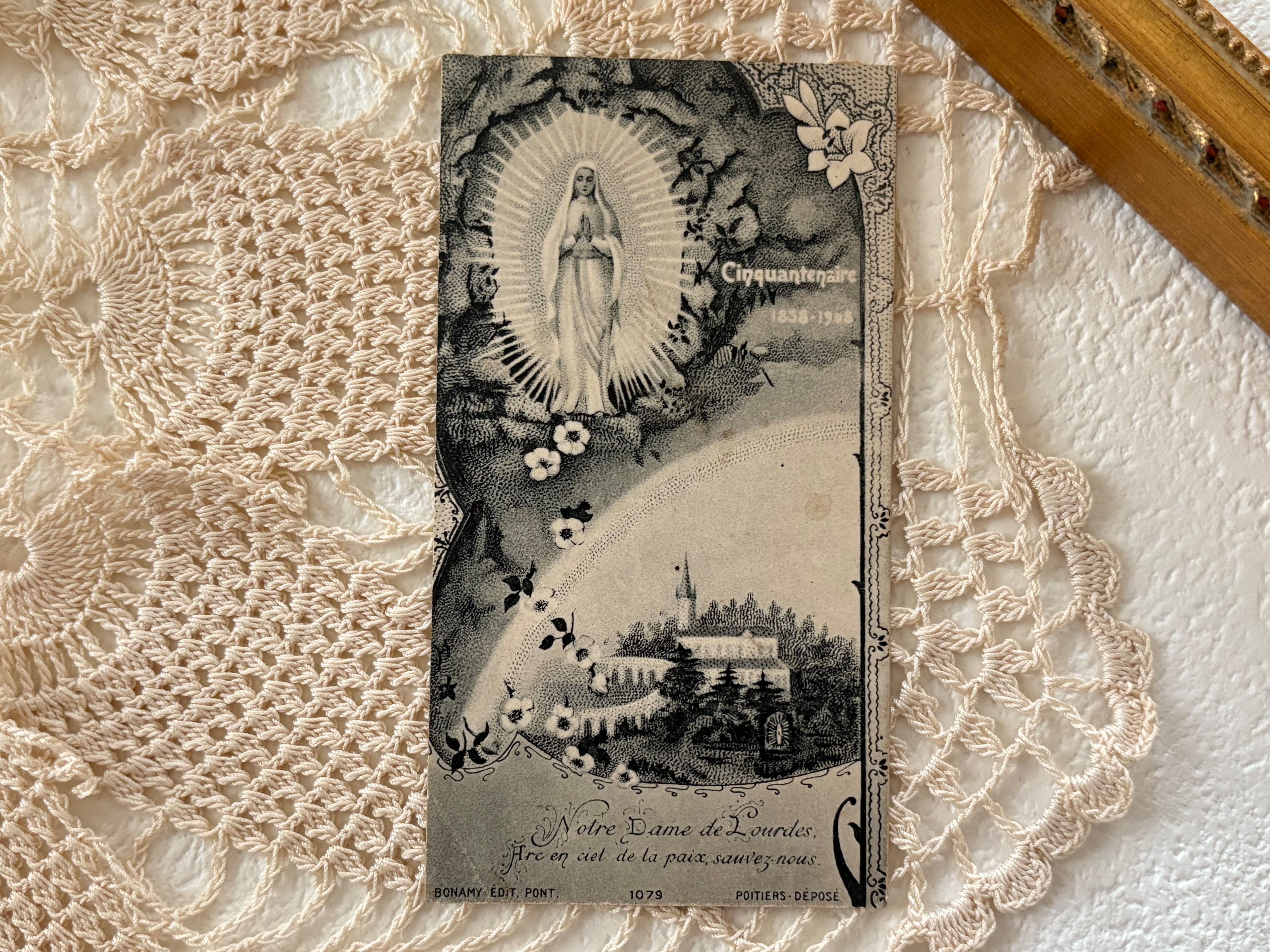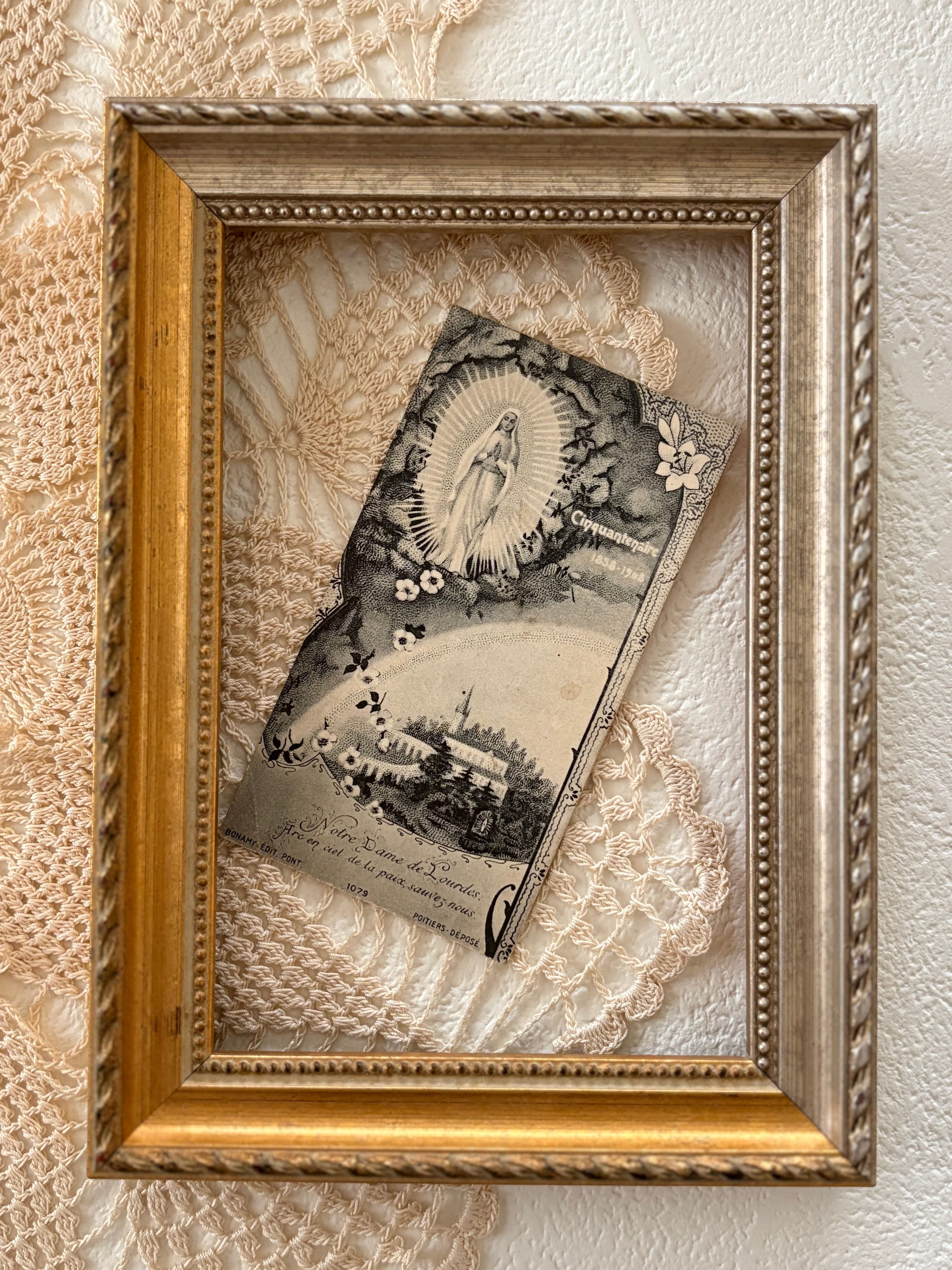 フランスアンティーク Holy Card ホーリーカード ルルドの聖母マリア 額装 撮影小物 インテリア コレクション