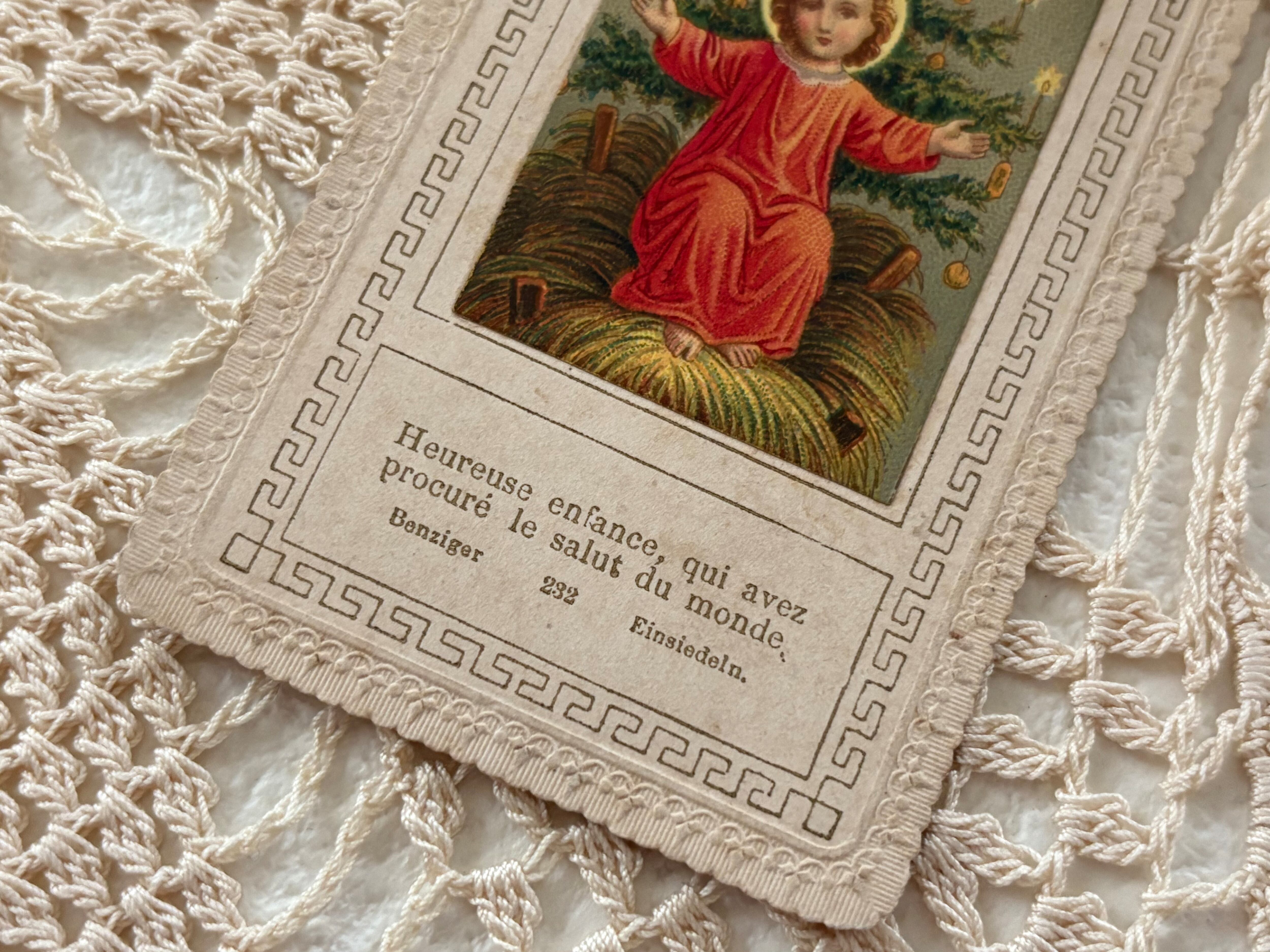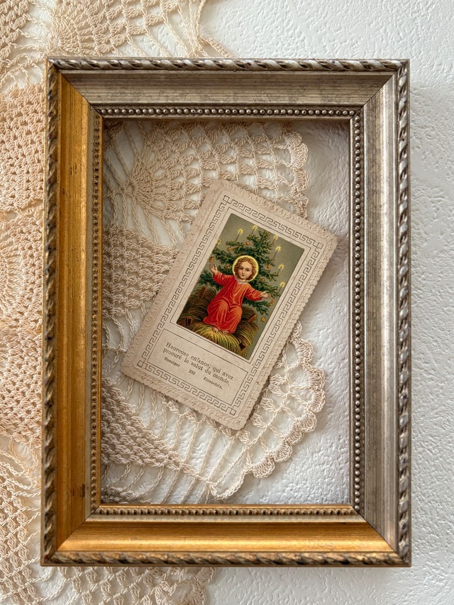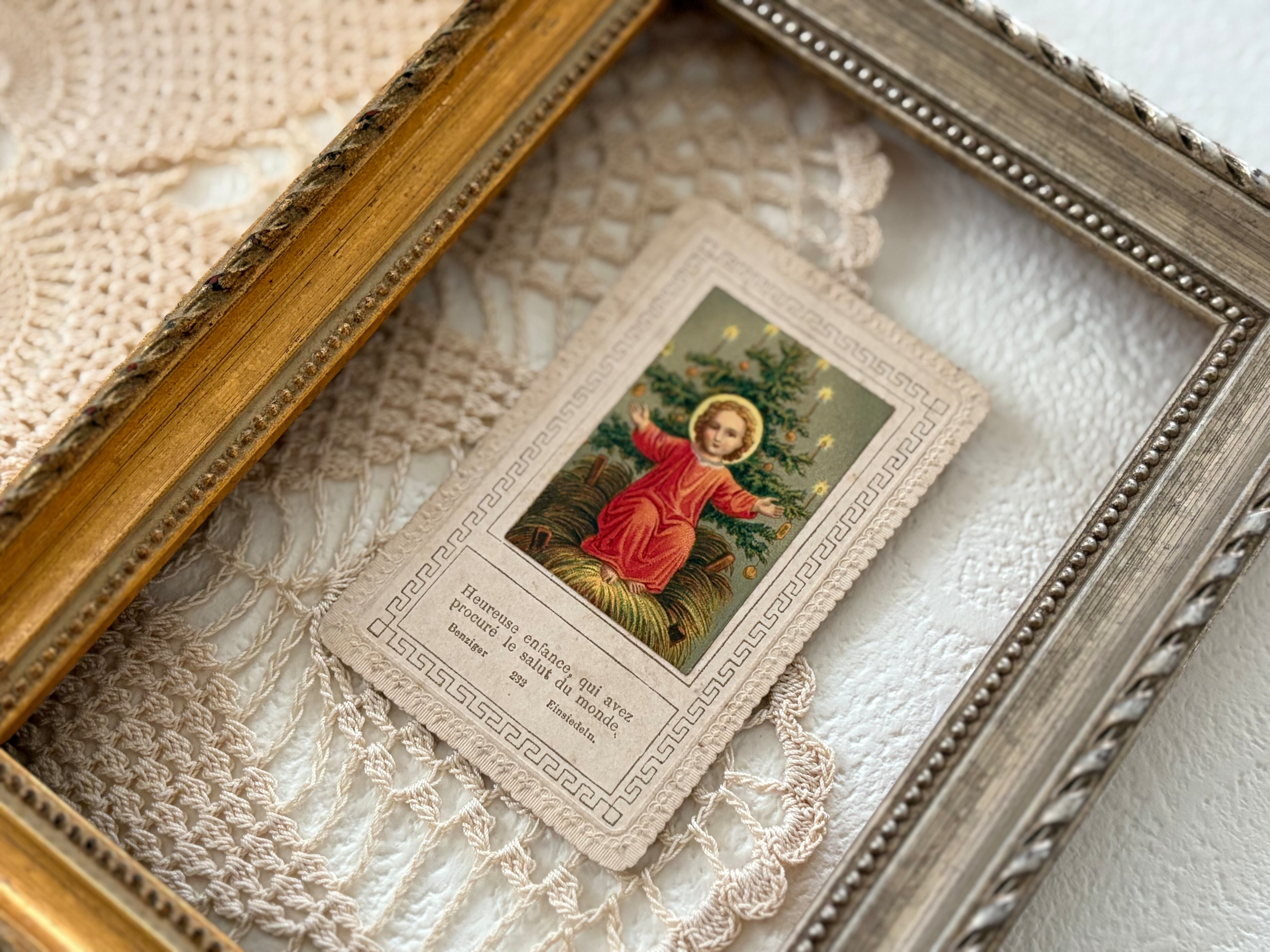 フランスアンティーク クリスマスツリーとイエスキリスト Noel クリスマス ミニカード 額装 インテリア コレクション