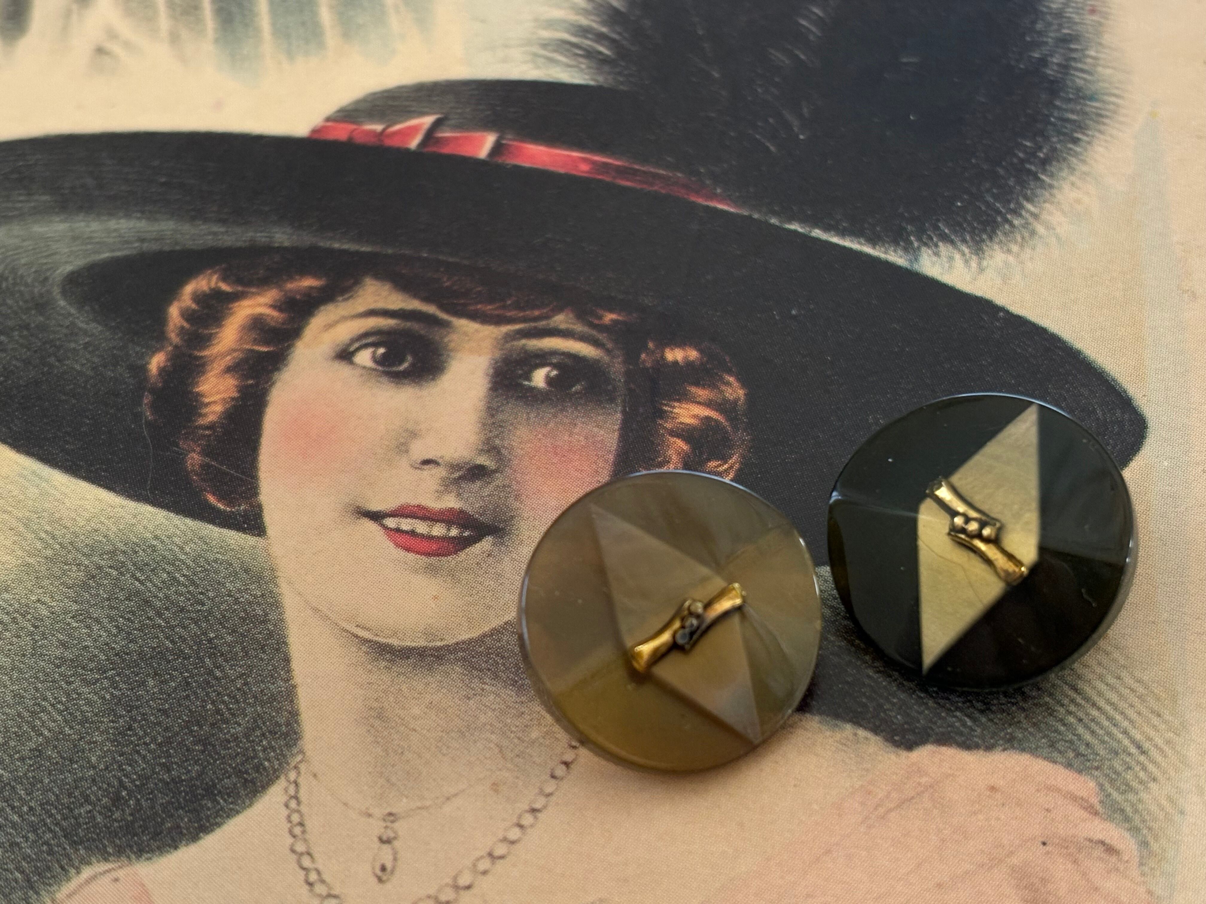 Japanese Vintage ボタン ライトブラウン/ブラウン×ゴールド 17mm 昭和レトロ アクセサリーパーツ 装飾材 カルトナージュ