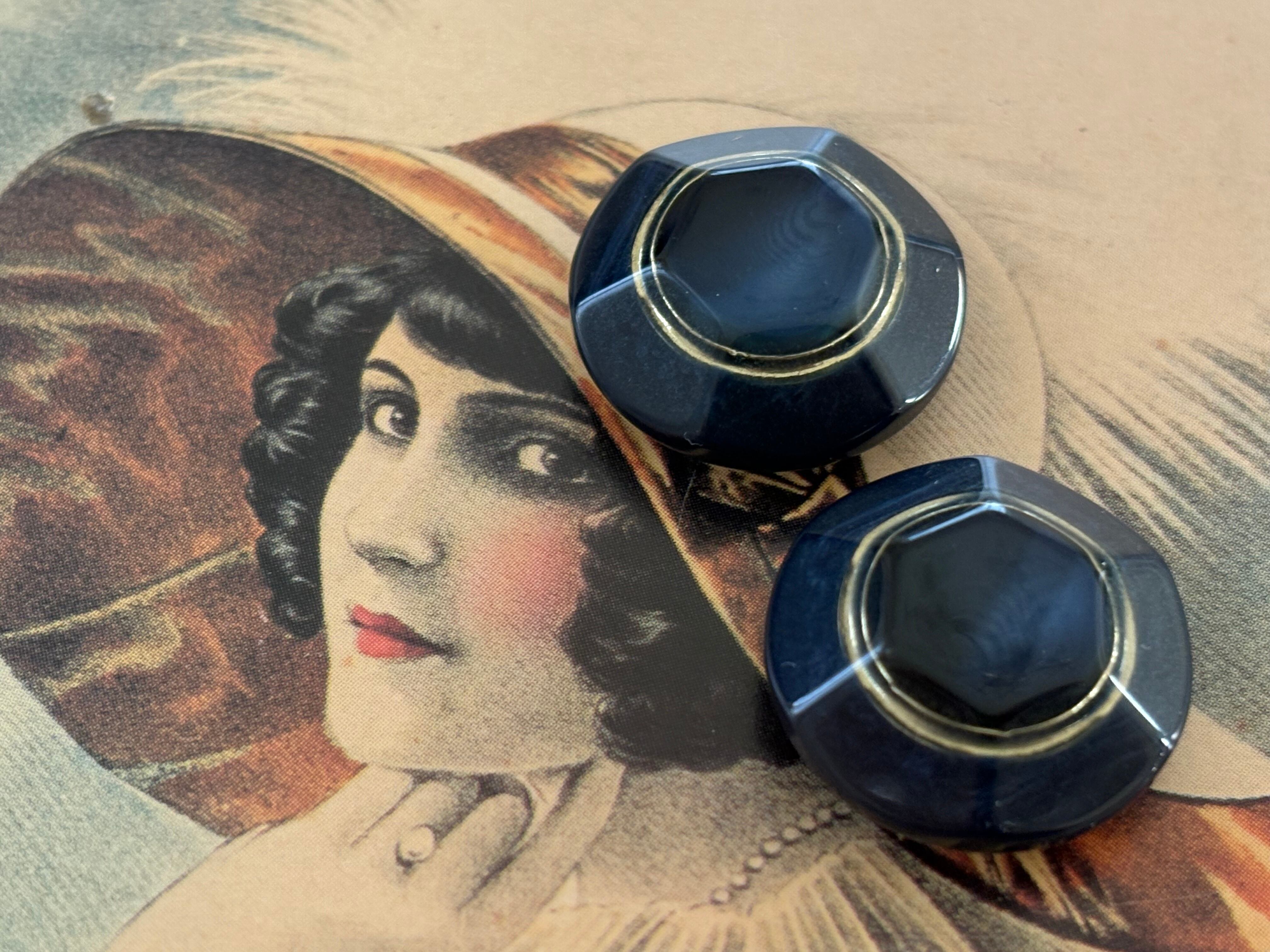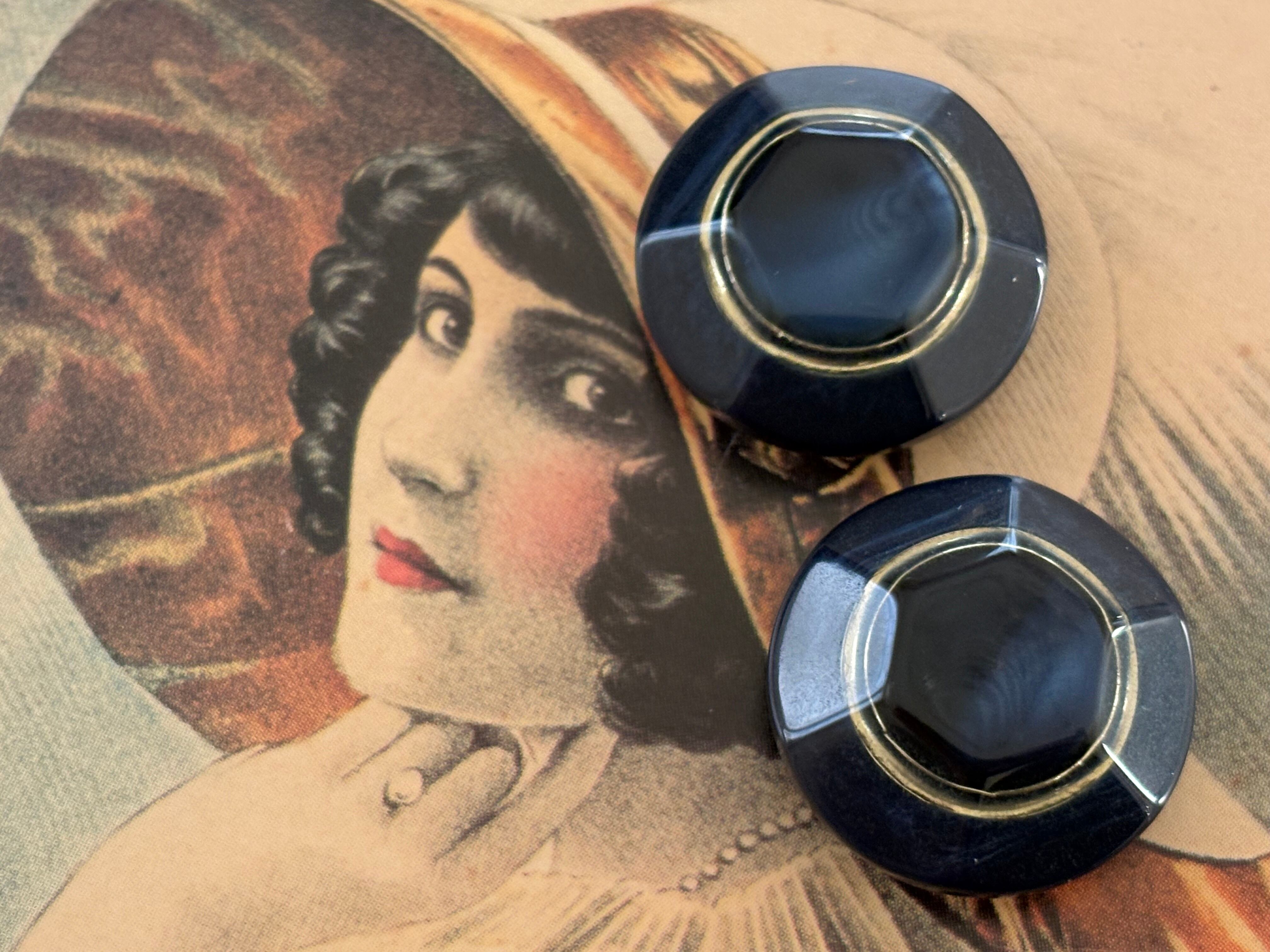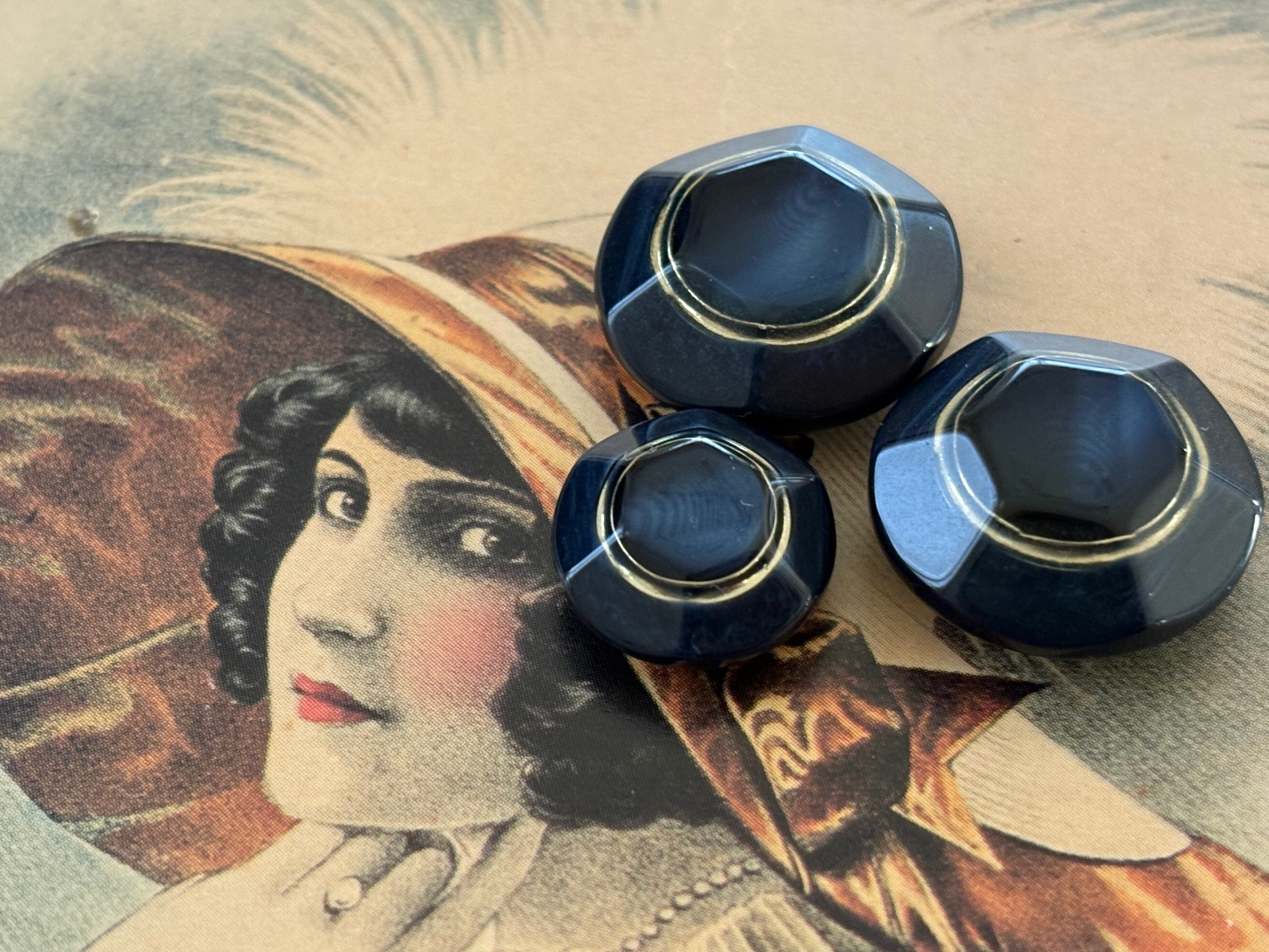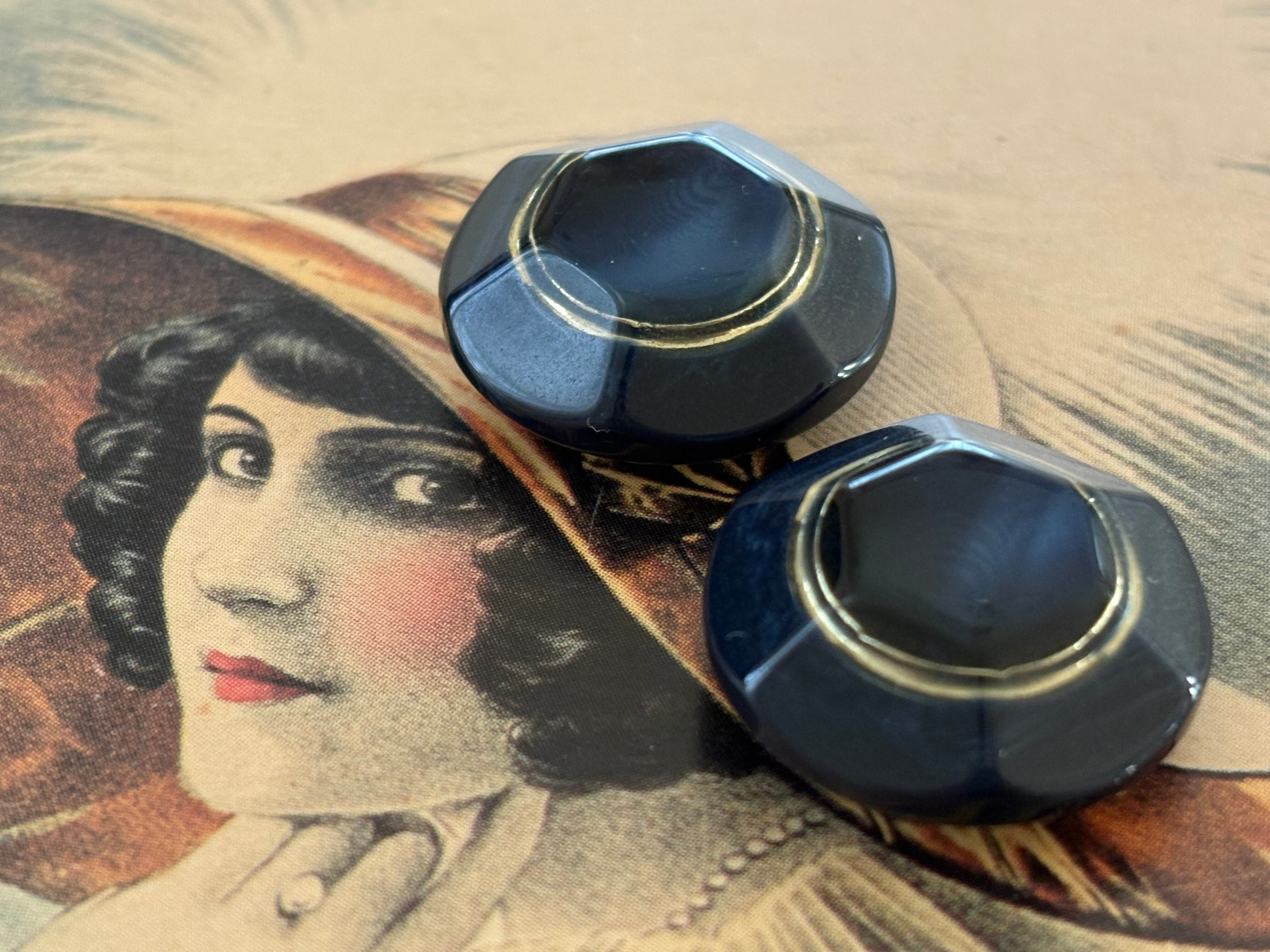 Japanese Vintageボタン レトロボタン 20mm ネイビー×ゴールド マーブル調 アクセサリーパーツ デコレーション材 レトロボタン
