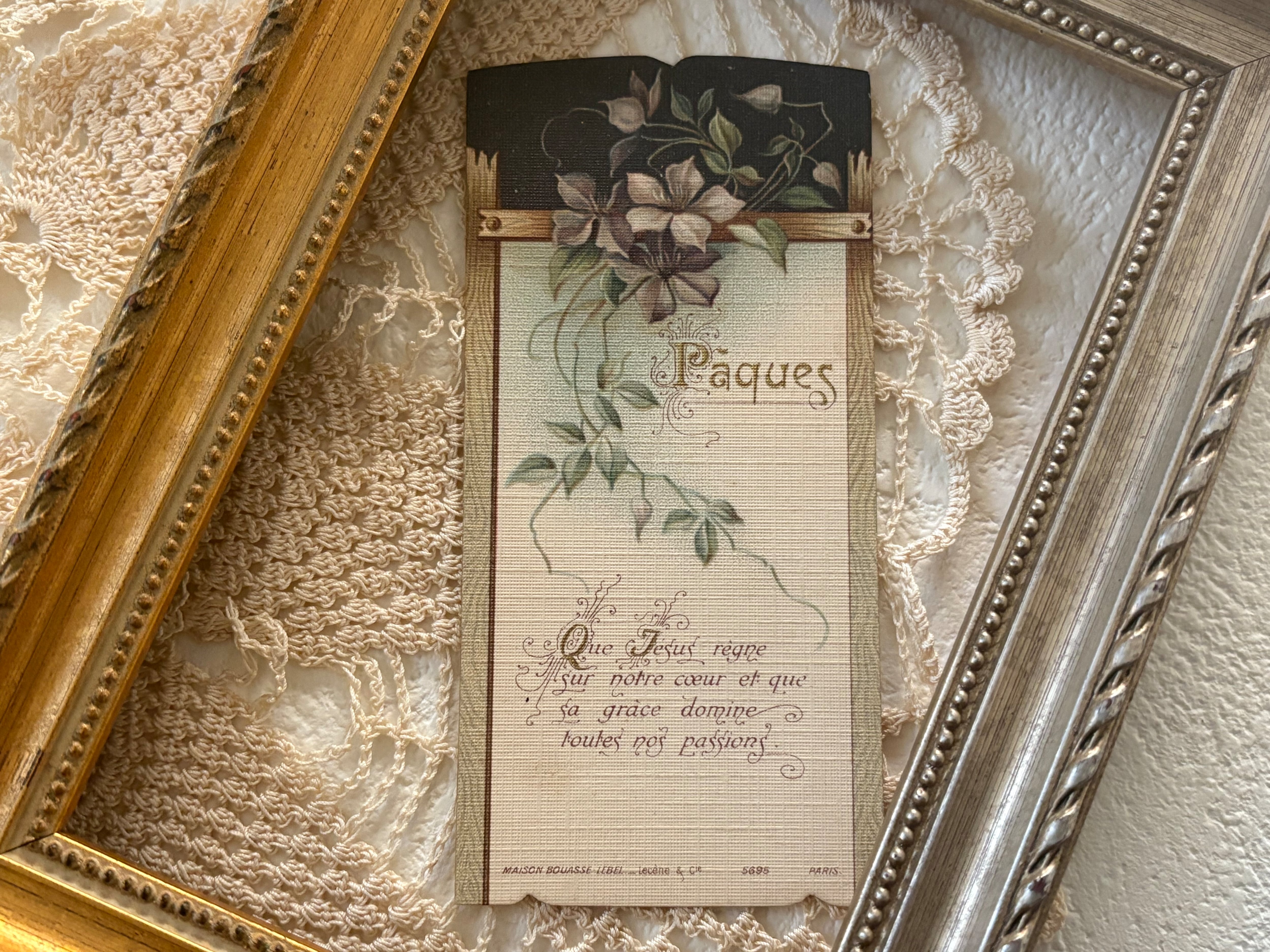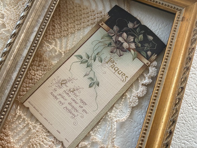 フランスアンティーク Holy Card ホーリーカード Paques イースター ミニカード 額装 インテリア コレクション